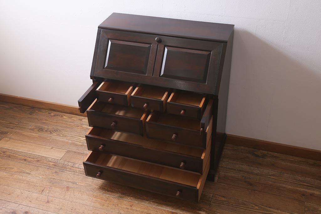 デスク> ワークデスク > 中古 松本民芸家具 T型 シックで上品な佇まいが魅力のライティングビューロー(簿記机、在宅ワーク、在宅用ワークデスク)(R-040261)