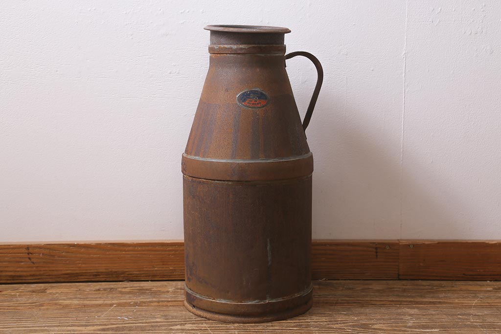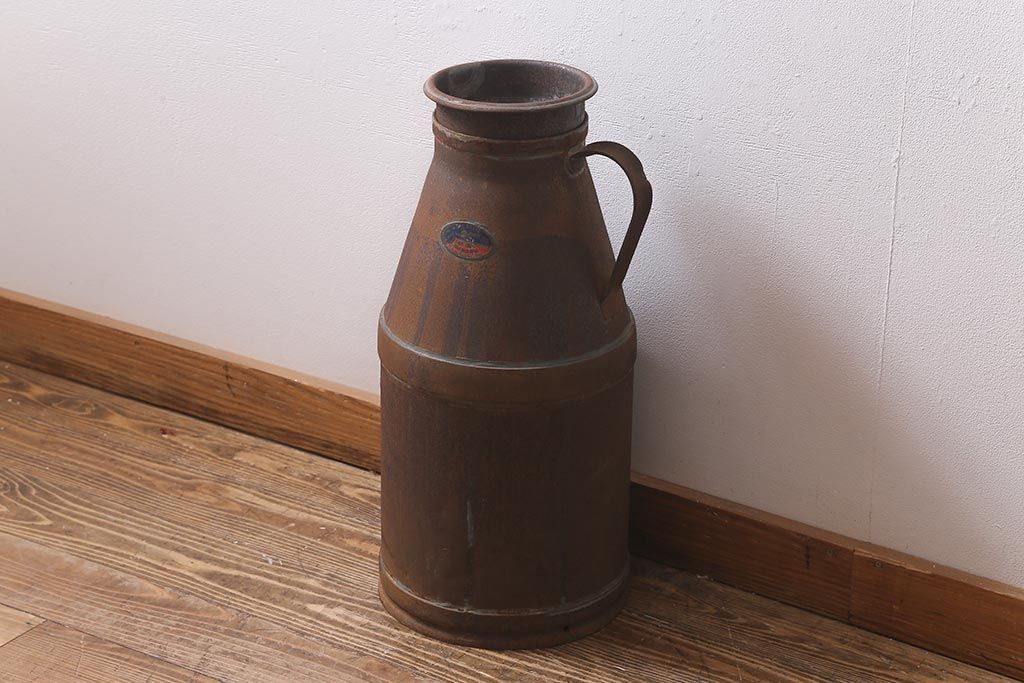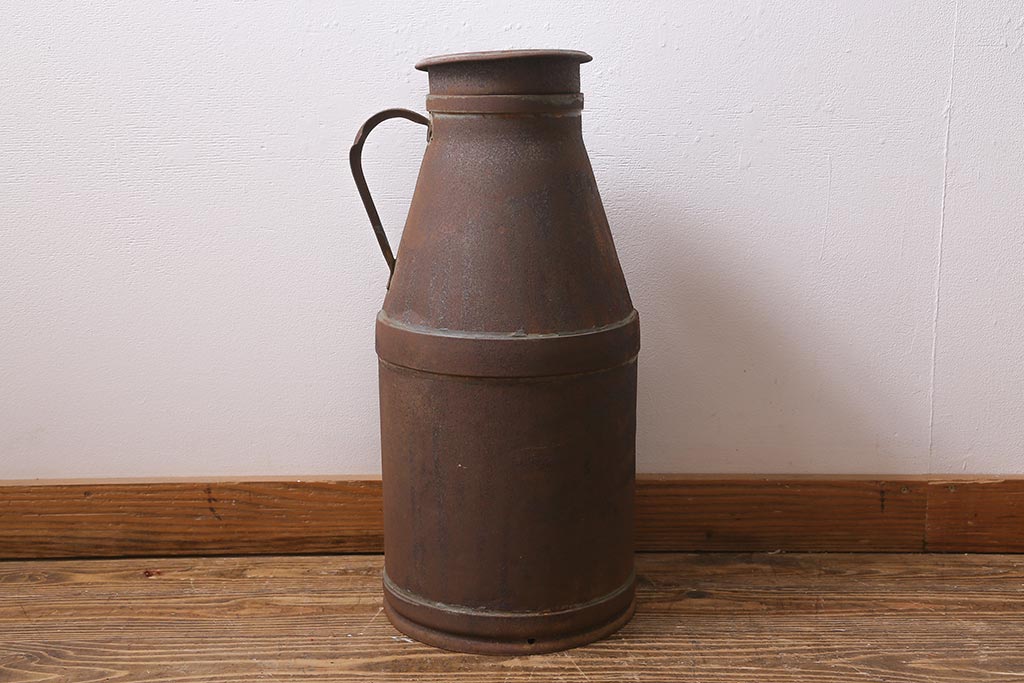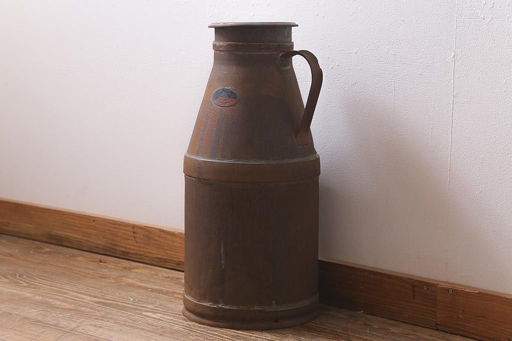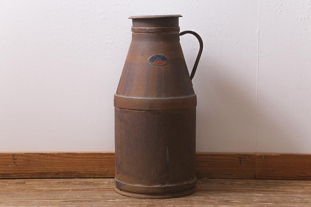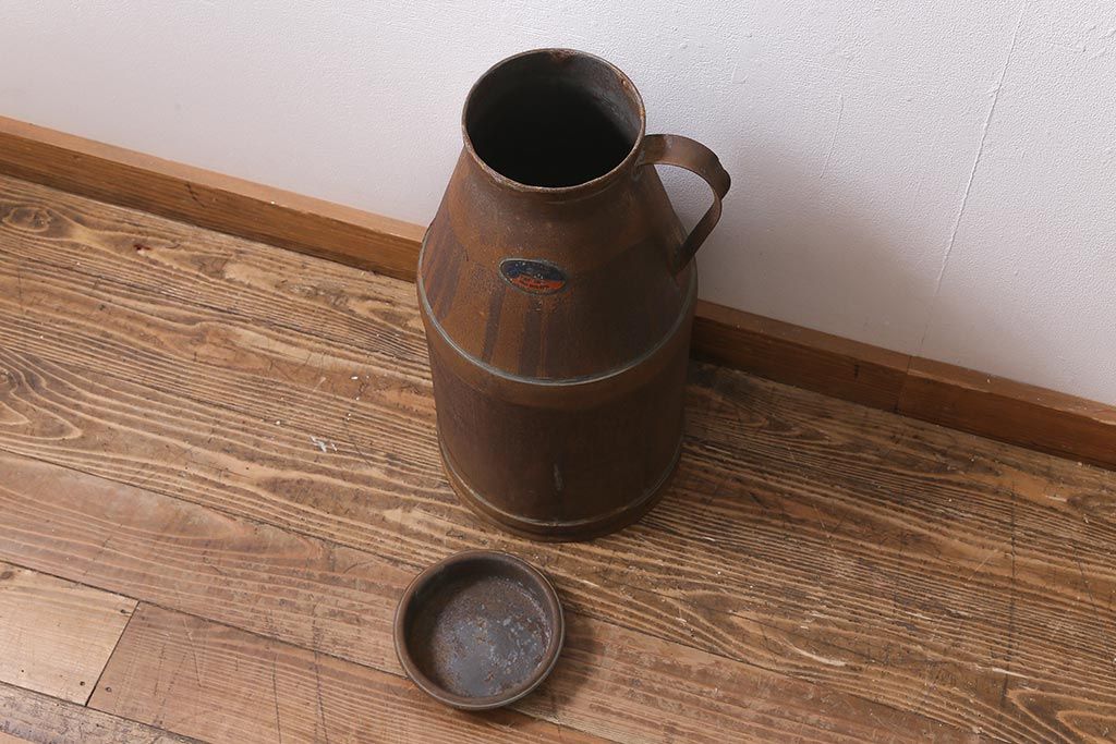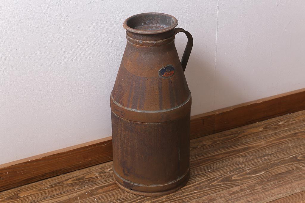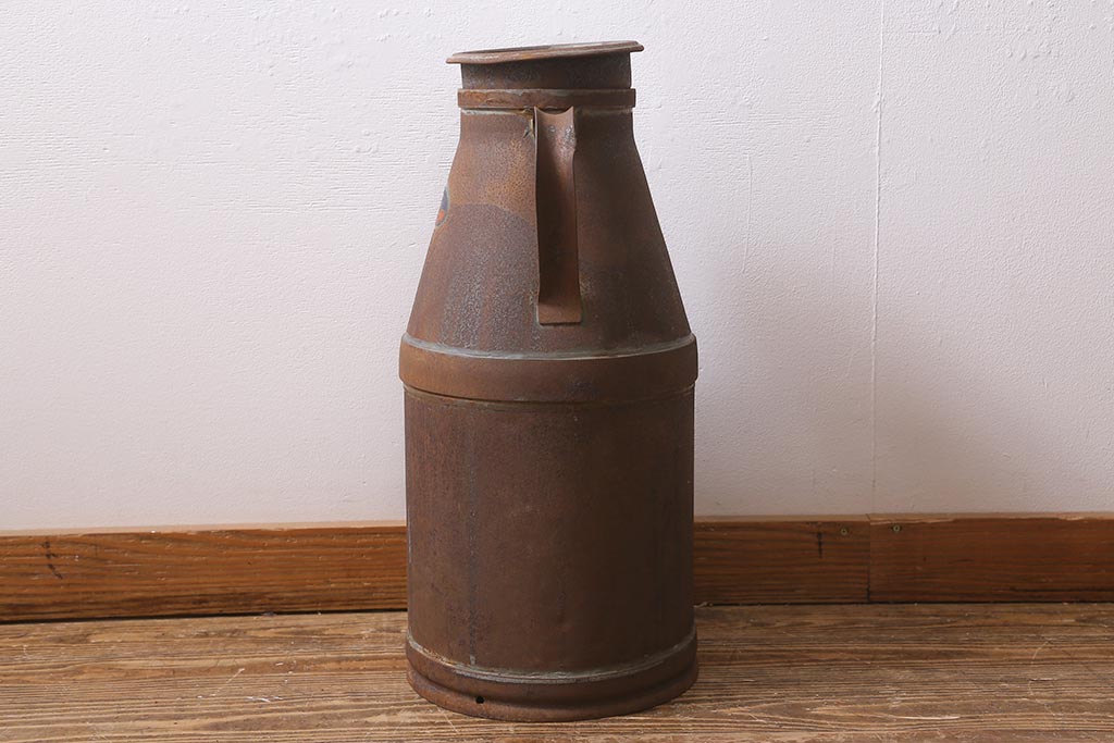 レトロ雑貨 昭和レトロ 錆びた風合いがおしゃれな古いミルク缶(牛乳缶、ディスプレイ)(R-040199)