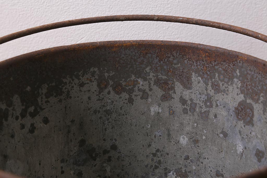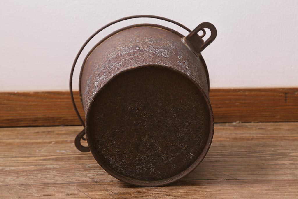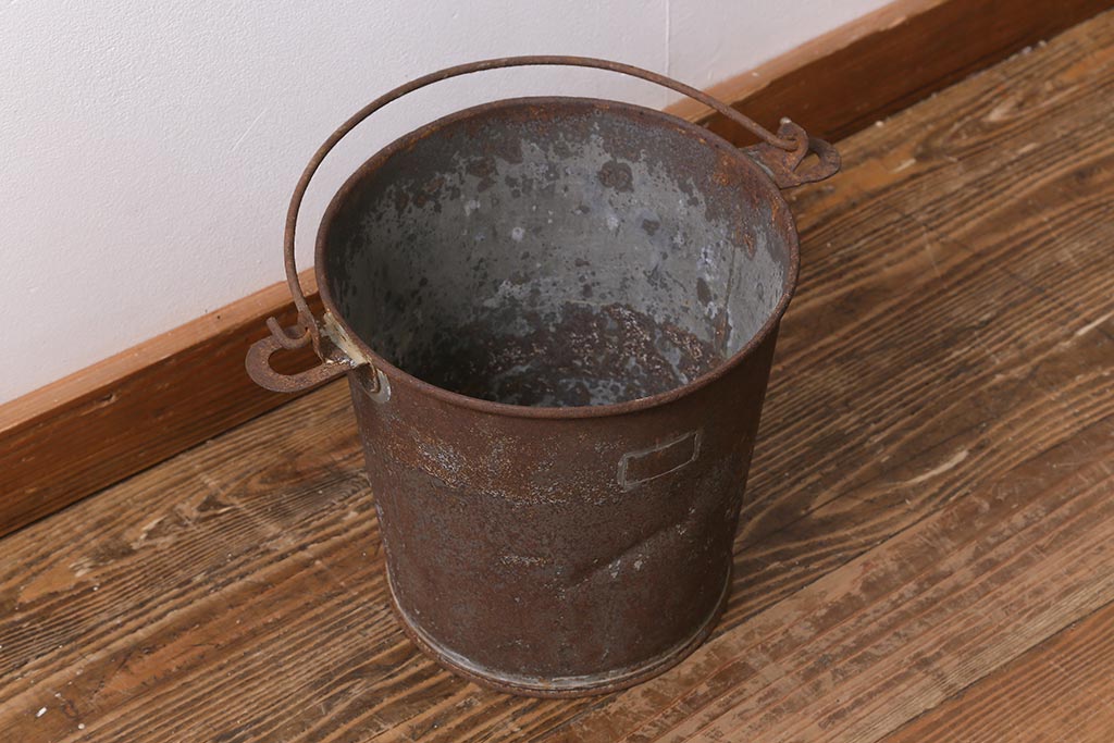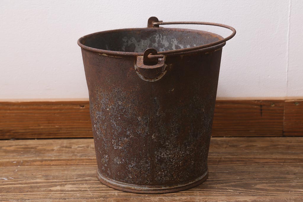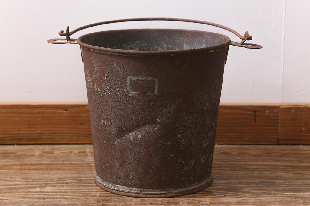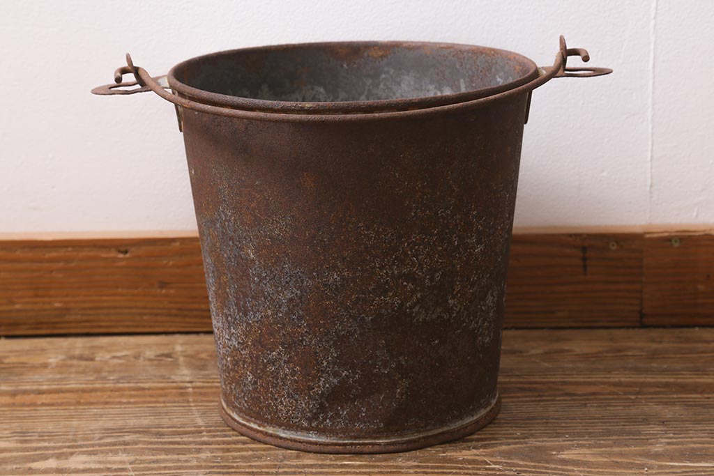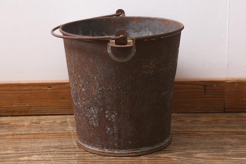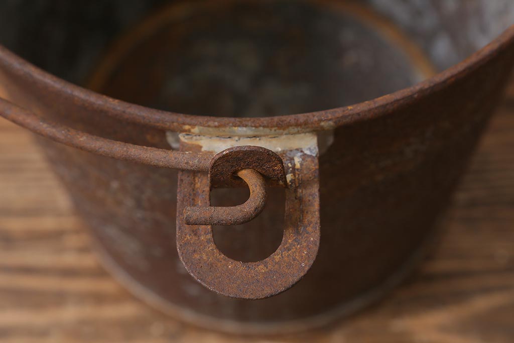 レトロ雑貨 ブリキ 錆びた風合いが味わいのある日本製の古いバケツ(R-040193)