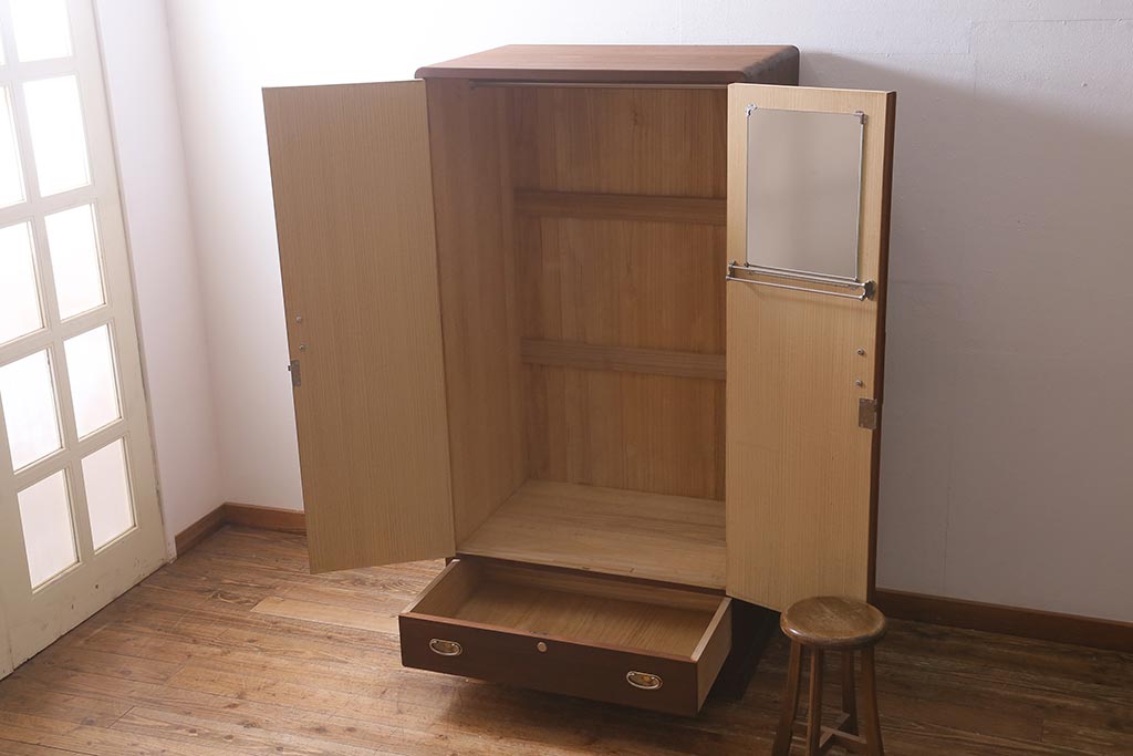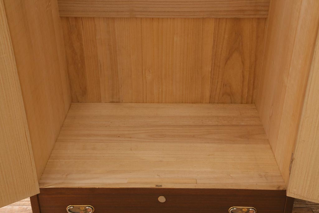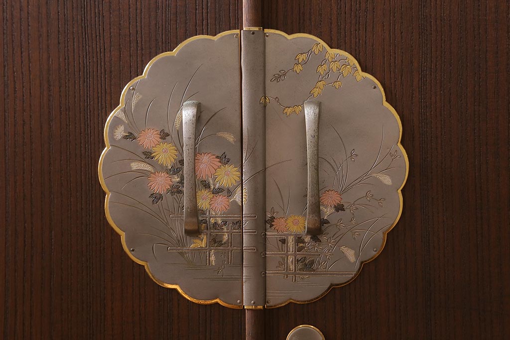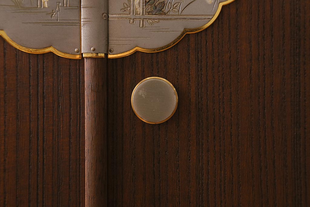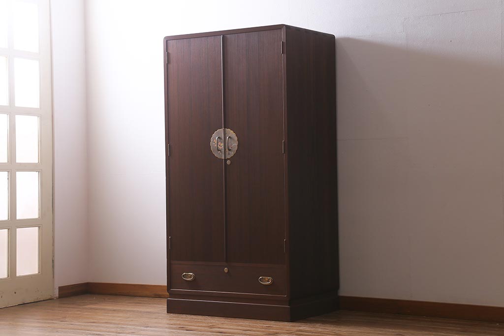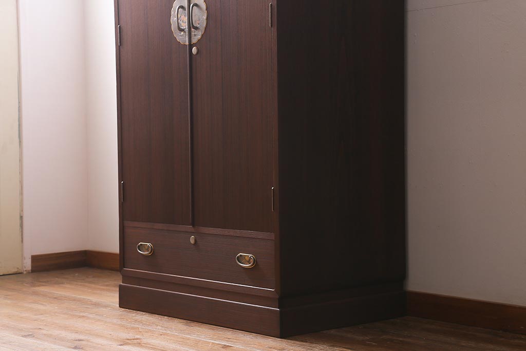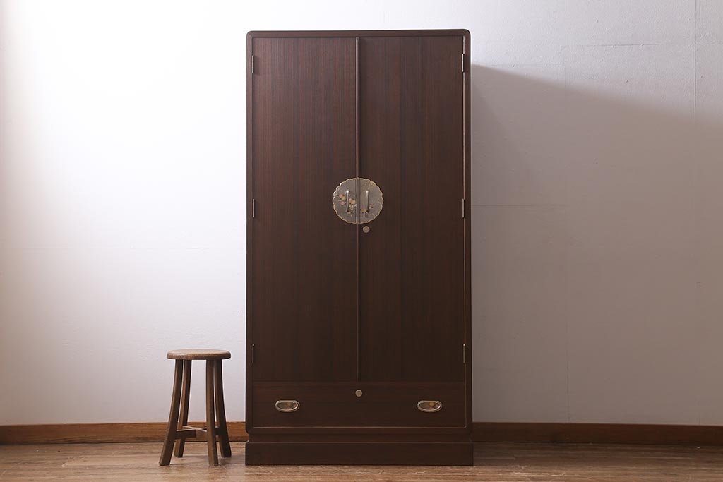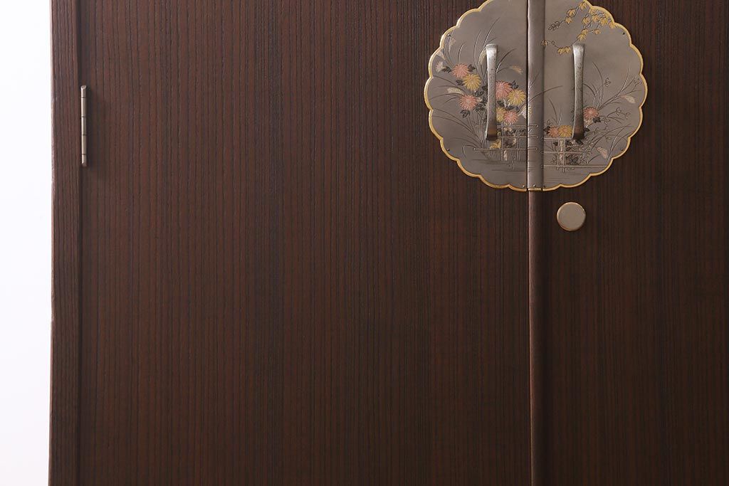 ワードローブ・ロッカー> ワードローブ > 中古 伝統工芸品 桂月 菊の意匠金具がアクセントになった加茂総桐箪笥のワードローブ(総桐たんす、洋服タンス、衣装タンス)(定価約120万円)(R-040297)
