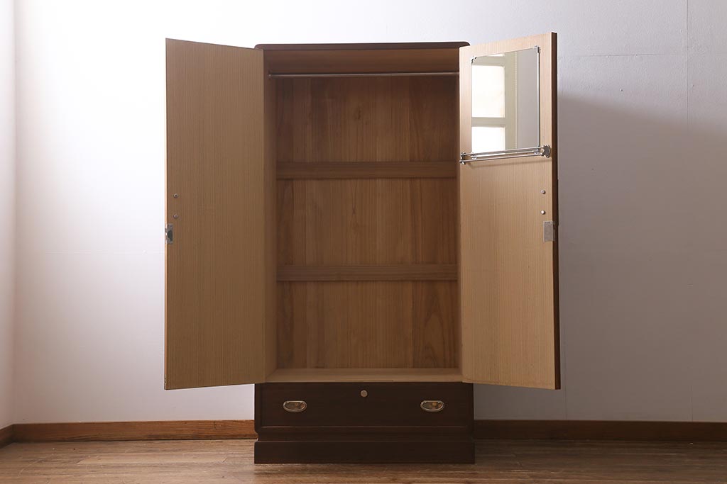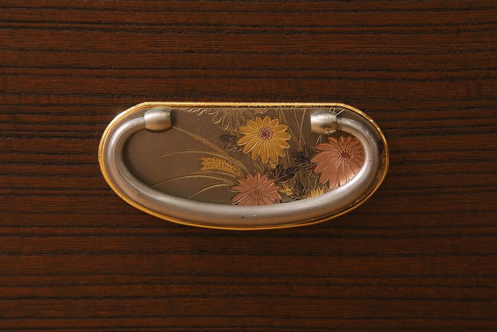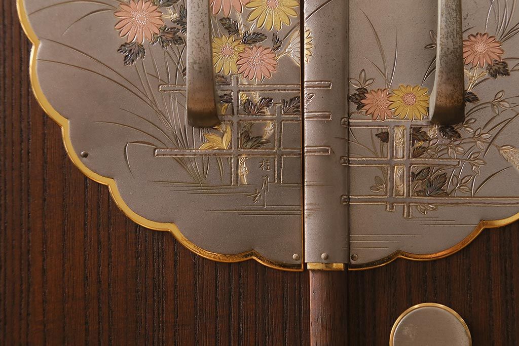 和箪笥 > 中古 伝統工芸品 桂月 菊の意匠金具がアクセントになった加茂総桐箪笥のワードローブ(総桐たんす、洋服タンス、衣装タンス)(定価約120万円)(R-040297)
