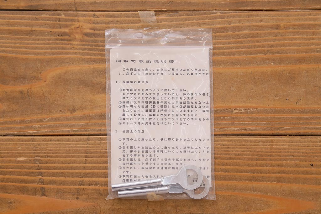 鍵は付属します。画像にありますように、袋に入れお付けします。スムーズに動くように調整していますが、あくまでも古いものや中古品ですので、長期の使用保証は出来かねます。ご購入後不具合が発生した場合は、当店でサポートさせていただきますので、お気軽にご相談くださいませ。