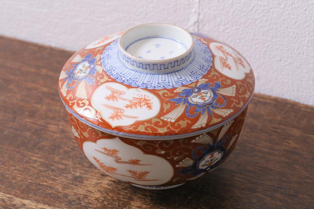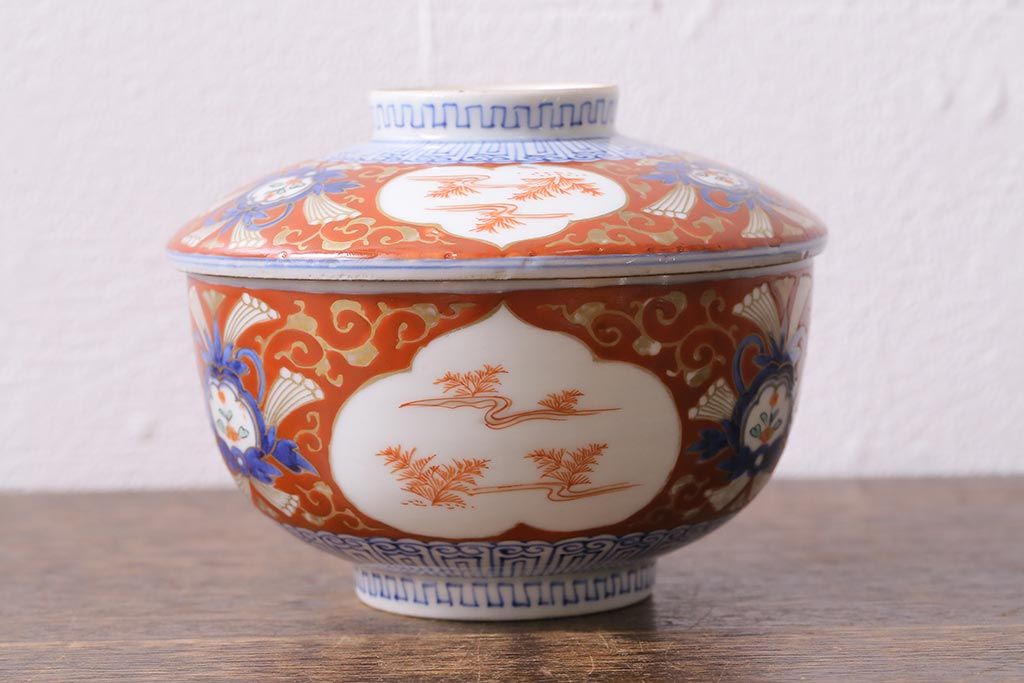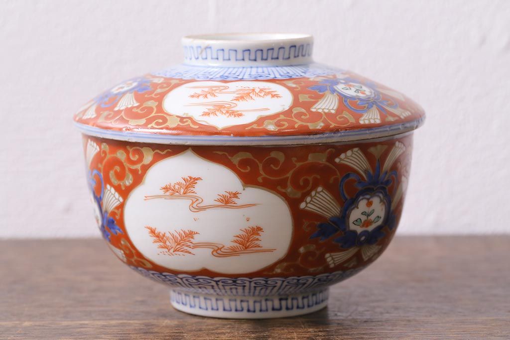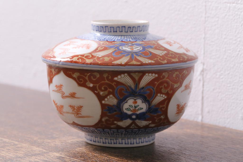 ラフジュ工房> 和食器・茶道具 > アンティーク雑貨 江戸期 大明成化年製 古伊万里 赤絵南蛮図染付 蓋茶碗(和食器)(R-040205)