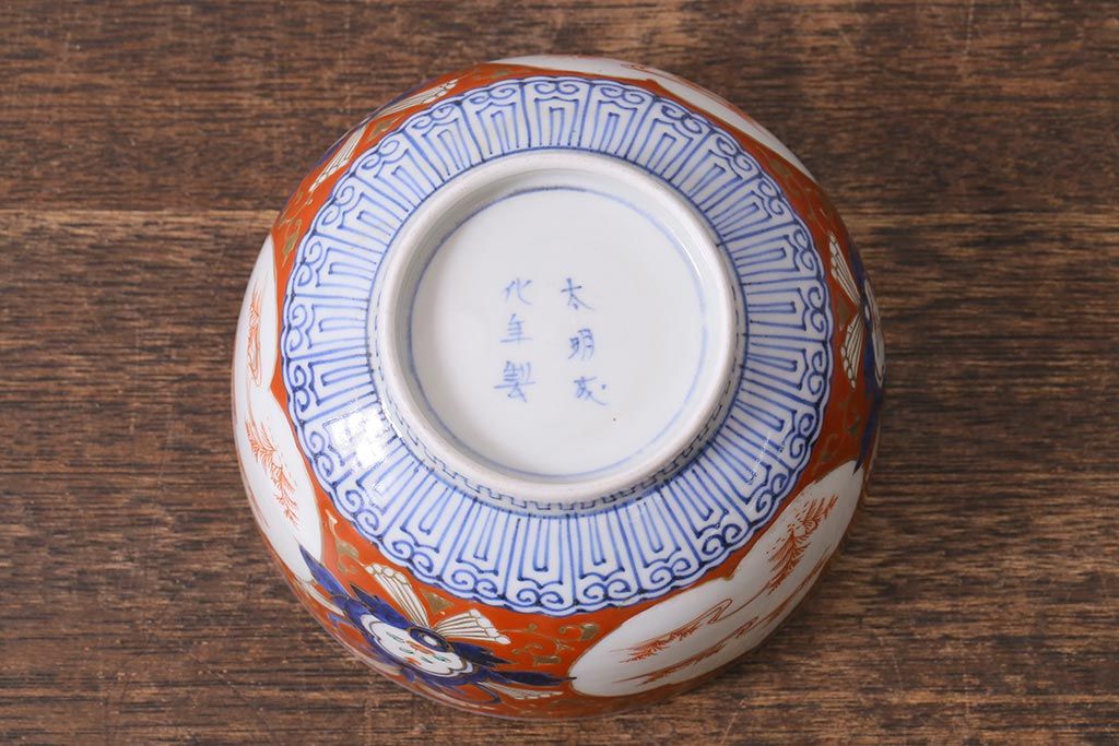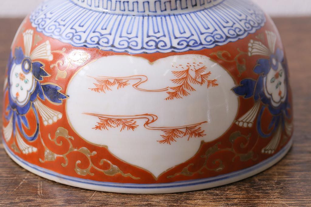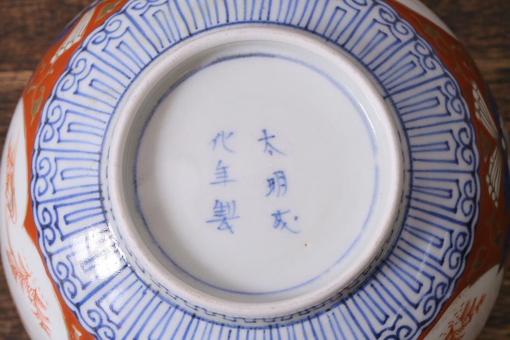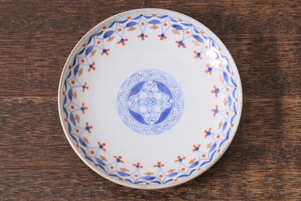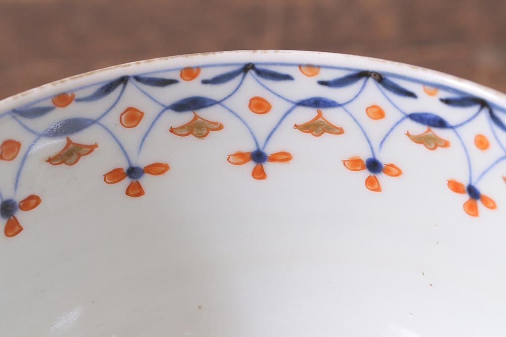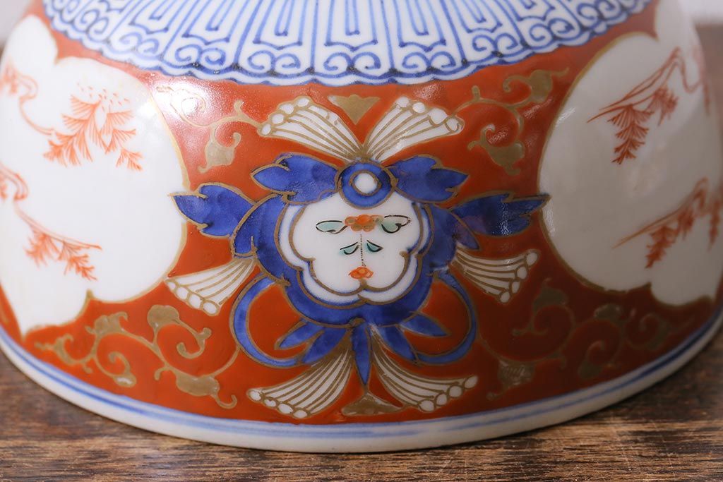 ラフジュ工房> 骨董・美術品> 骨董-陶磁器 > アンティーク雑貨 江戸期 大明成化年製 古伊万里 赤絵南蛮図染付 蓋茶碗(和食器)(R-040205)