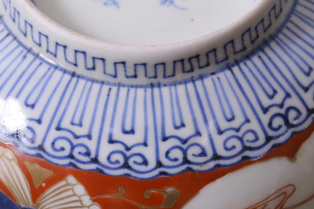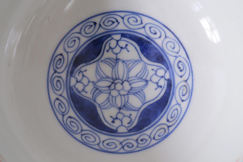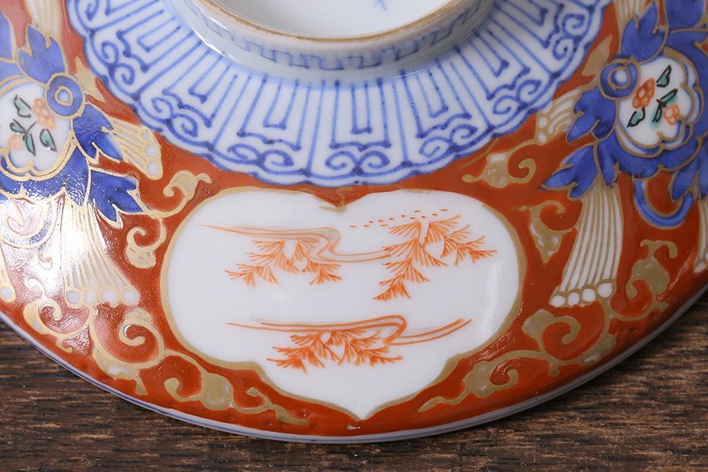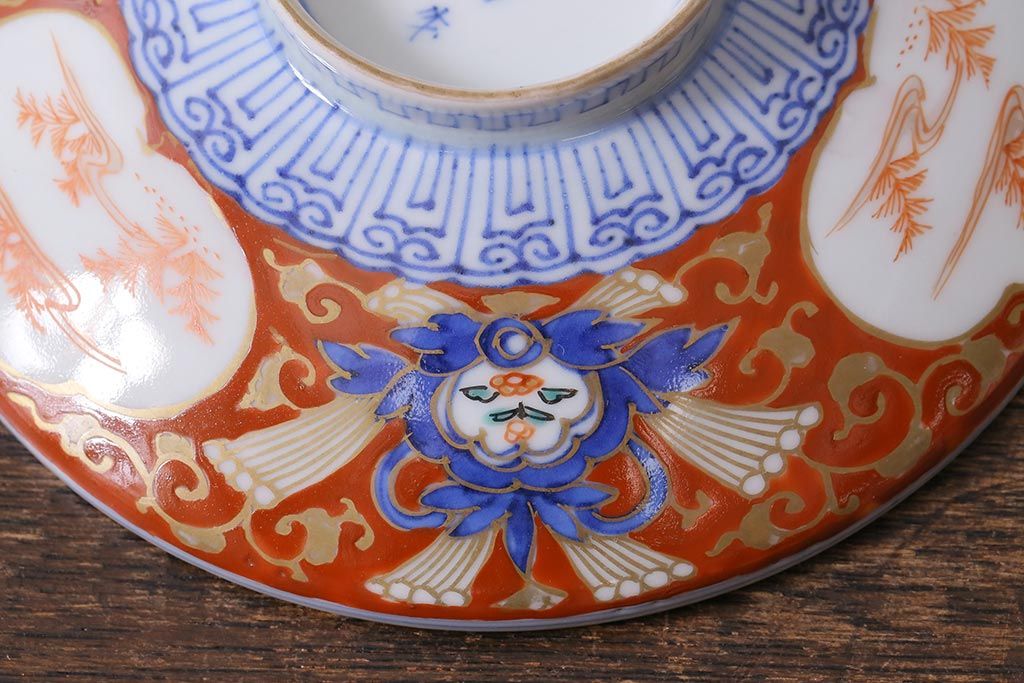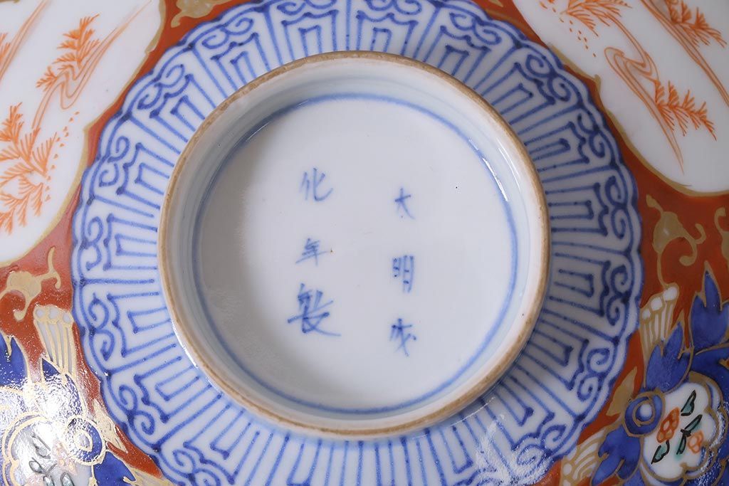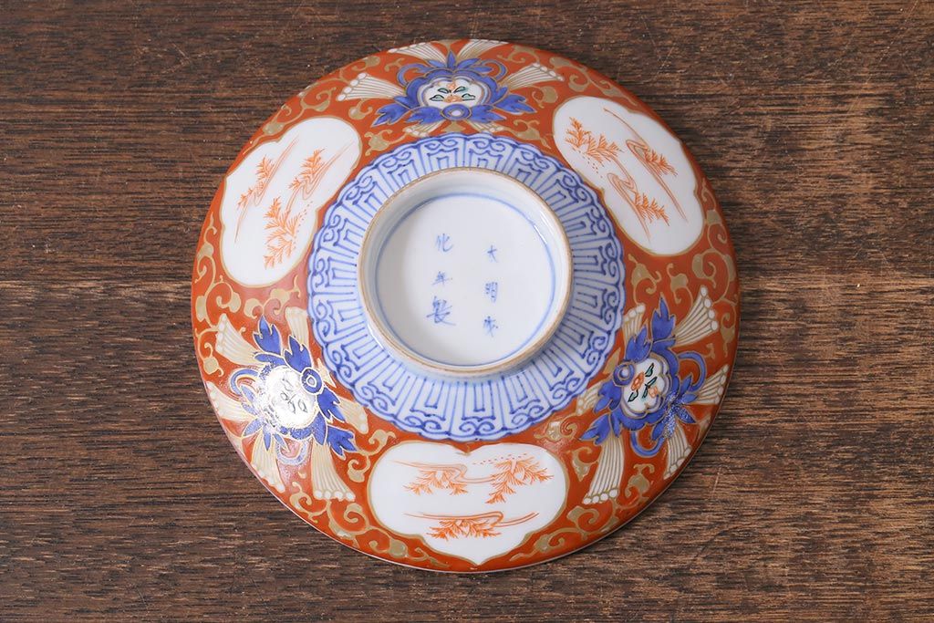 ラフジュ工房> 骨董・美術品> 骨董-陶磁器 > アンティーク雑貨 江戸期 大明成化年製 古伊万里 赤絵南蛮図染付 蓋茶碗(和食器)(R-040205)