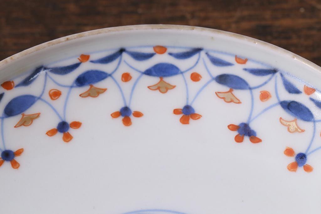 アンティーク雑貨 江戸期 大明成化年製 古伊万里 赤絵南蛮図染付 蓋茶碗(和食器)(R-040205)