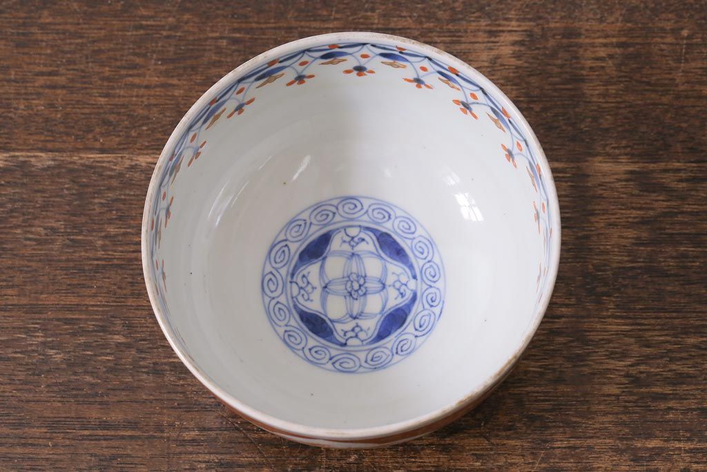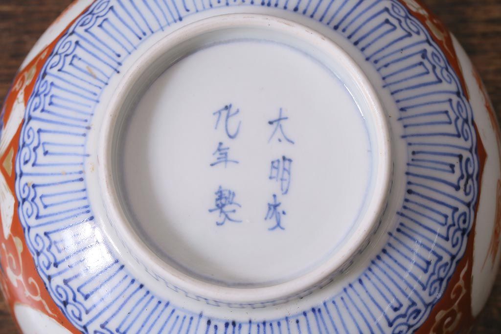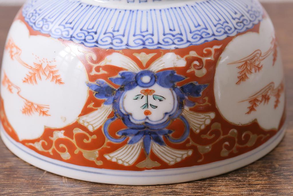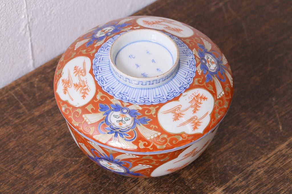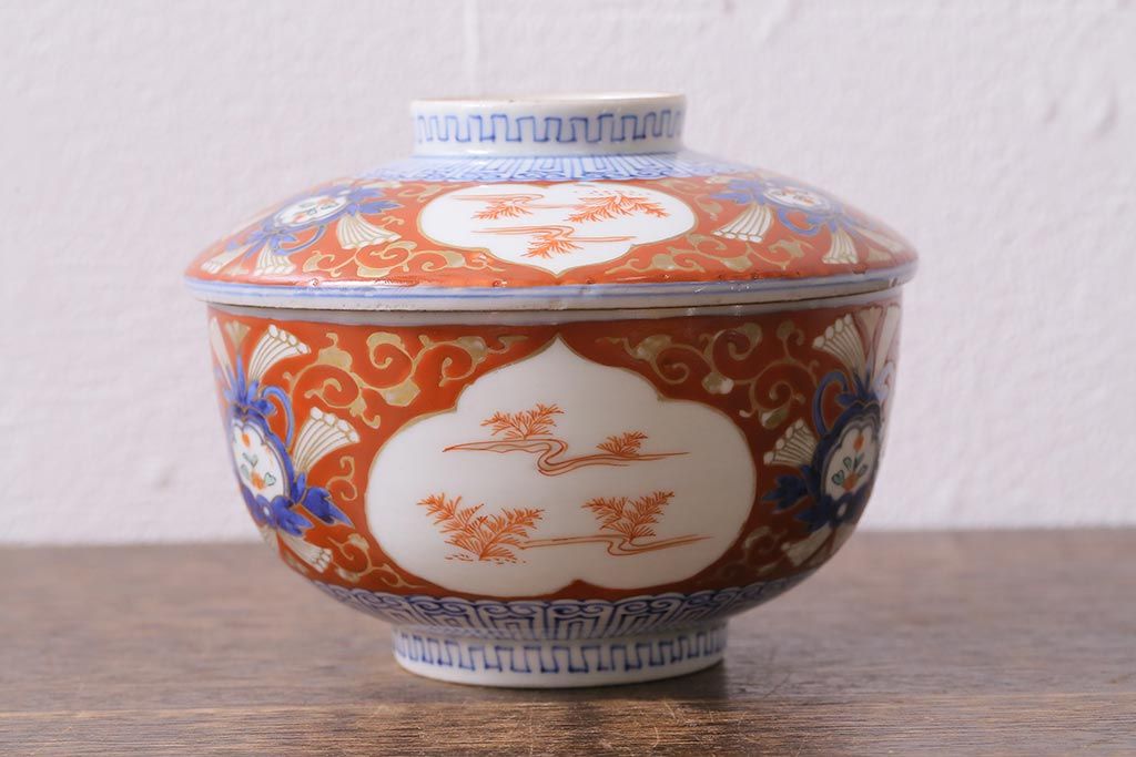 ラフジュ工房> 骨董・美術品> 骨董-陶磁器 > アンティーク雑貨 江戸期 大明成化年製 古伊万里 赤絵南蛮図染付 蓋茶碗(和食器)(R-040206)