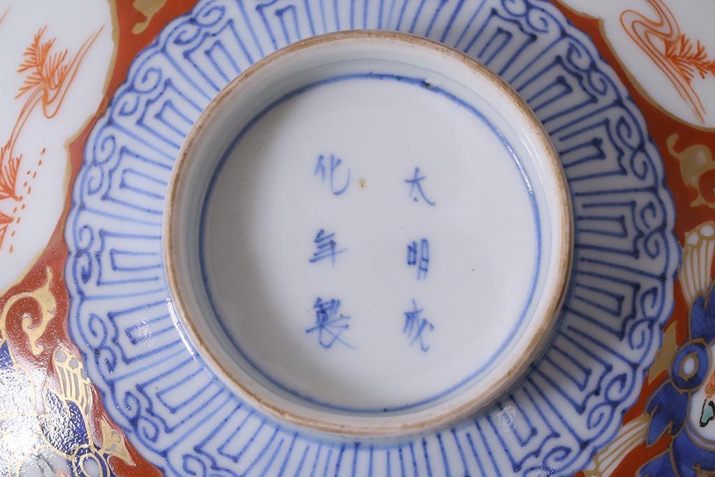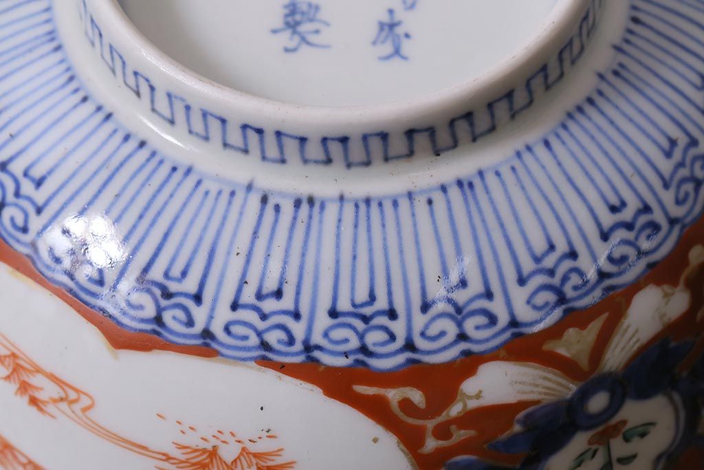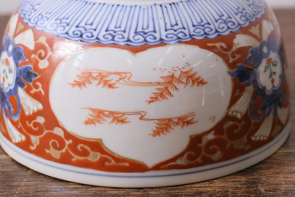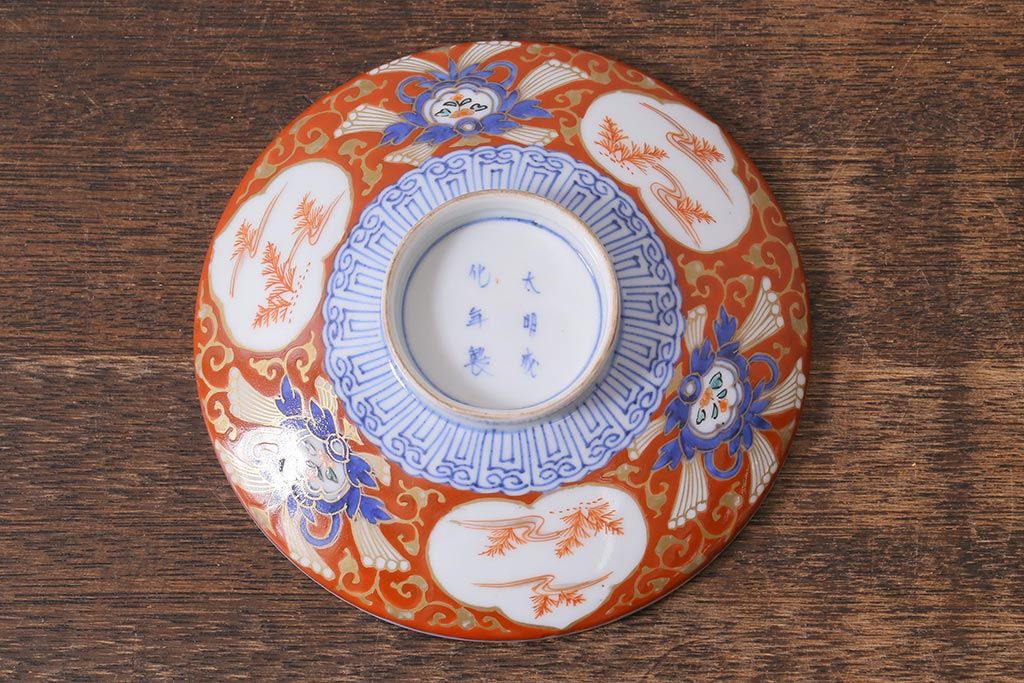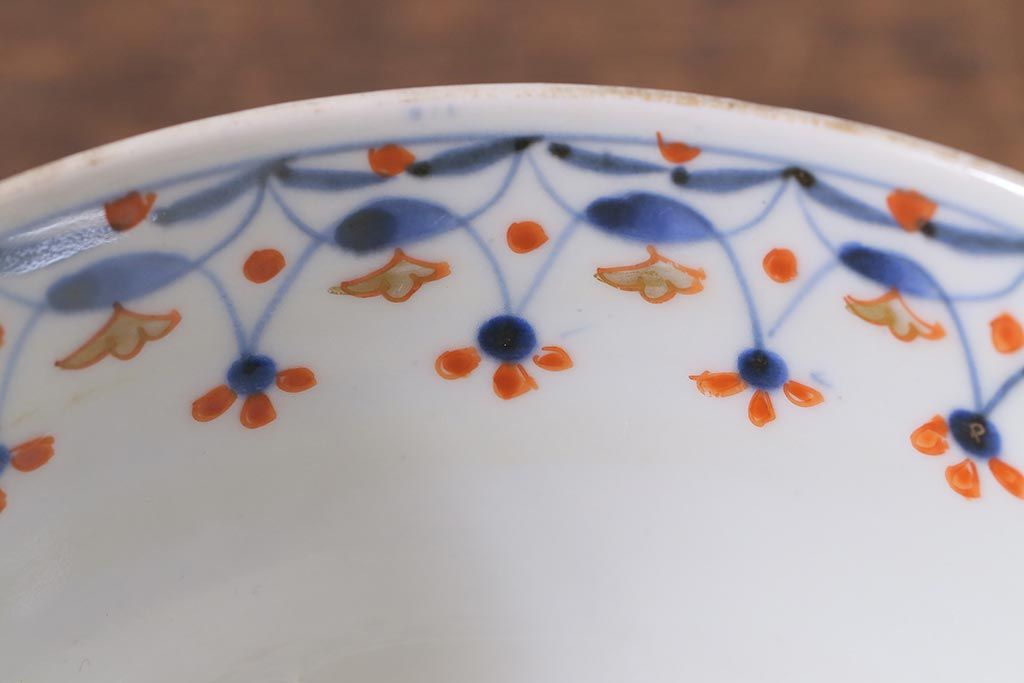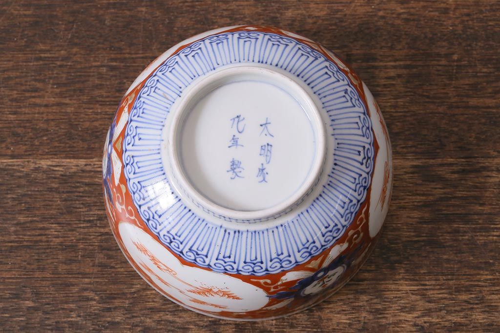 ラフジュ工房> 骨董・美術品> 骨董-陶磁器 > アンティーク雑貨 江戸期 大明成化年製 古伊万里 赤絵南蛮図染付 蓋茶碗(和食器)(R-040206)