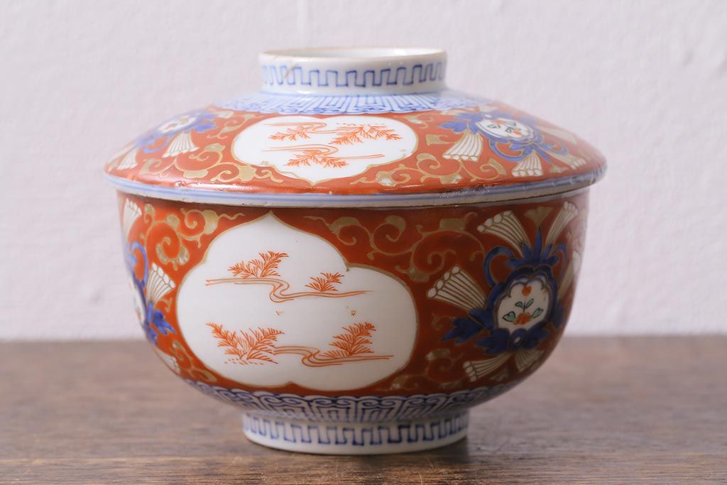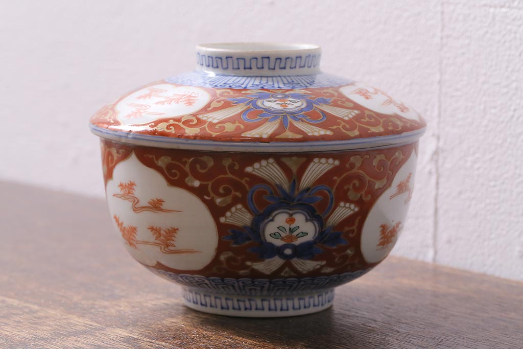 ラフジュ工房> 和食器・茶道具 > アンティーク雑貨 江戸期 大明成化年製 古伊万里 赤絵南蛮図染付 蓋茶碗(和食器)(R-040206)