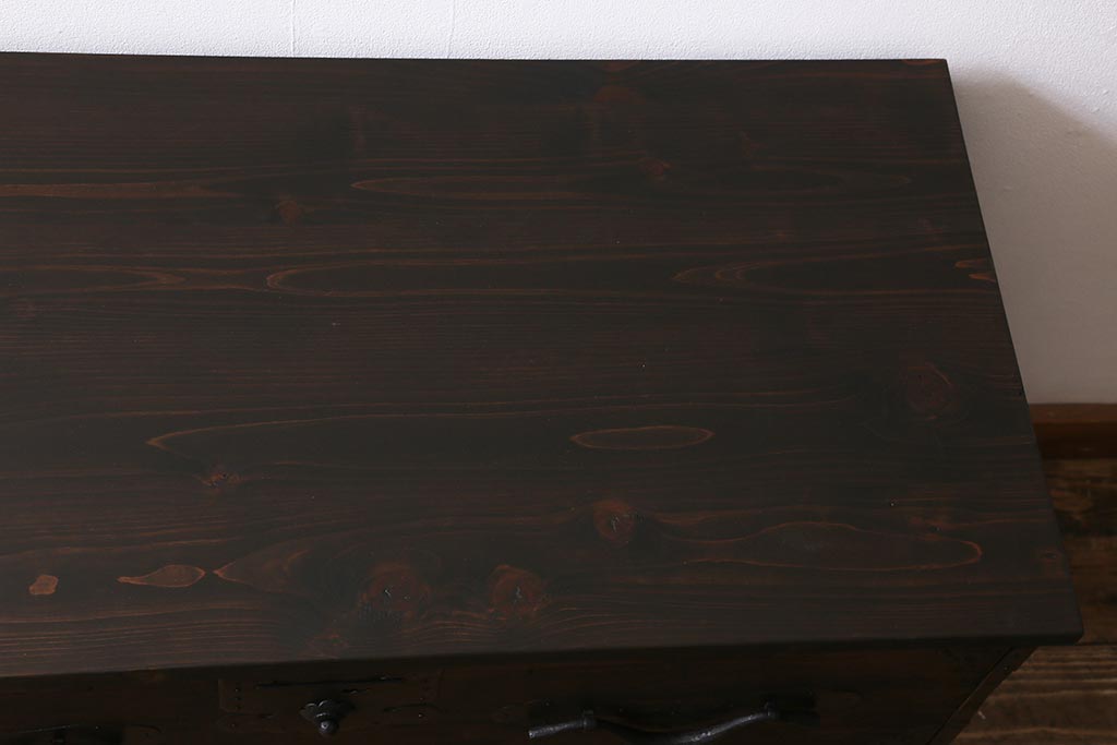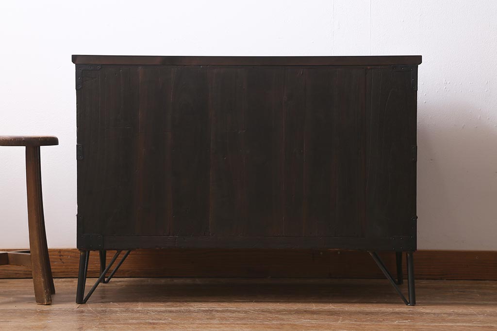 キャビネット・戸棚> テレビ台・ローボード > アンティーク家具 和製アンティーク 鉄脚リメイク 大きな蛭手が目を引く箪笥ローボード(衣装箪笥、チェスト、引き出し、リビングボード)(R-040393)