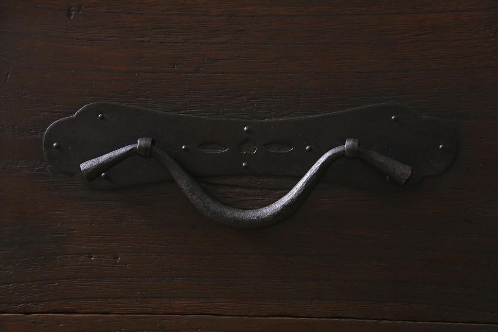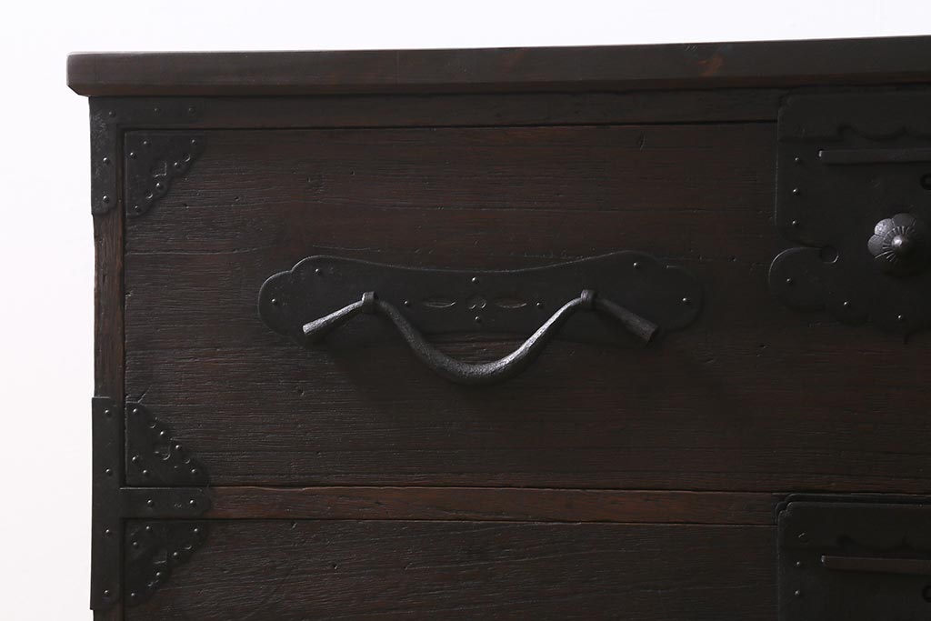 和箪笥 > アンティーク家具 和製アンティーク 鉄脚リメイク 大きな蛭手が目を引く箪笥ローボード(衣装箪笥、チェスト、引き出し、リビングボード)(R-040393)