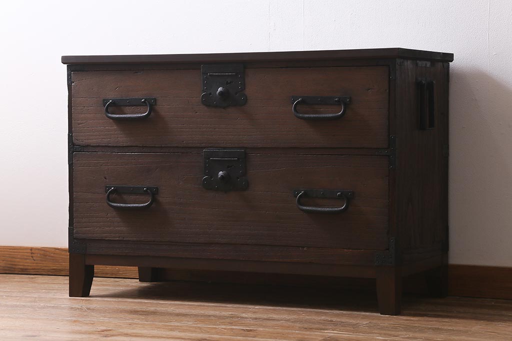 チェスト・引き出し> ローチェスト > アンティーク家具 和製アンティーク 脚付きリメイク 味わい深い佇まいの箪笥ローボード(衣装箪笥、チェスト、引き出し、リビングボード)(R-040392)