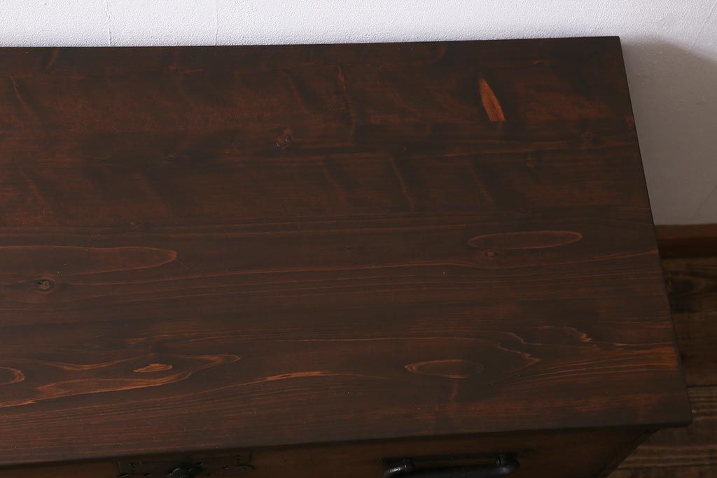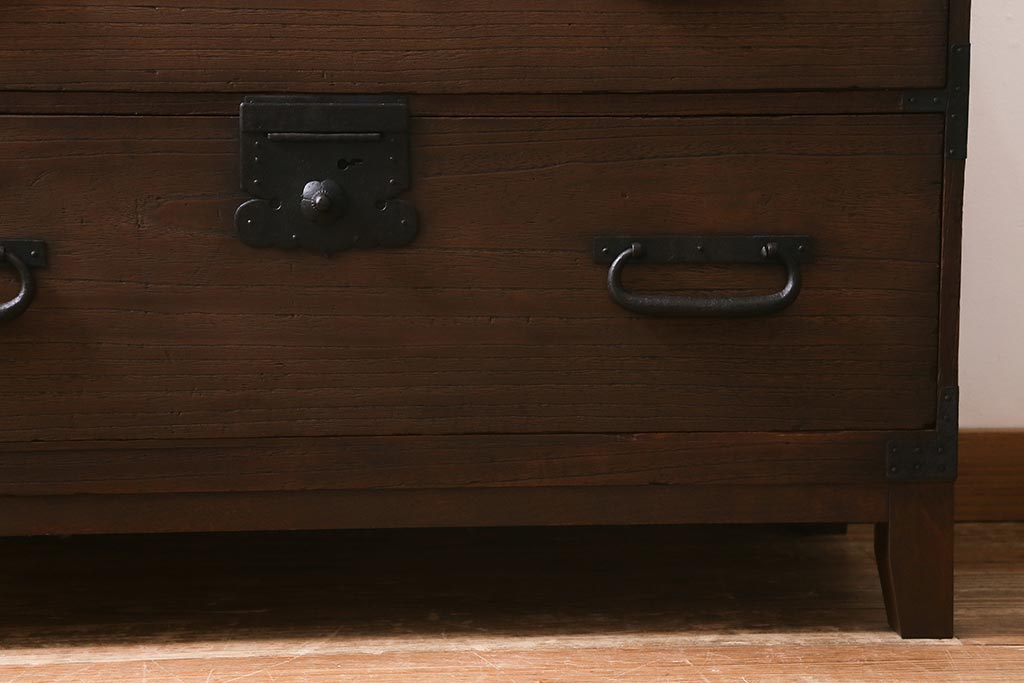 和箪笥> 衣装箪笥 > アンティーク家具 和製アンティーク 脚付きリメイク 味わい深い佇まいの箪笥ローボード(衣装箪笥、チェスト、引き出し、リビングボード)(R-040392)