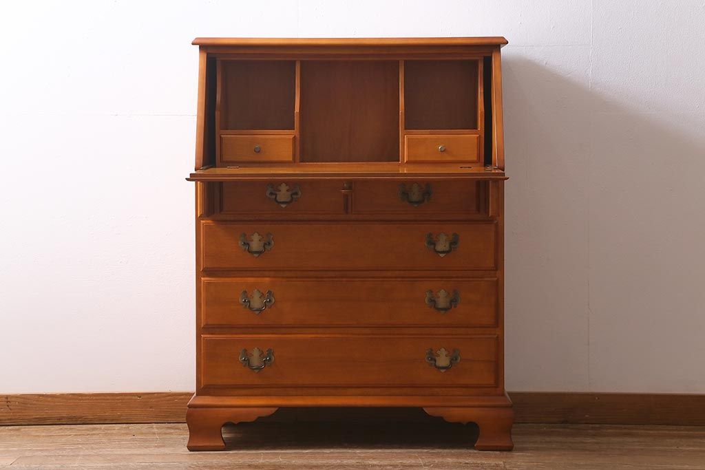 中古 横浜クラシック家具 ダニエル(Daniel) アーリーアメリカン 気品漂うライティングビューロー(ワークデスク、机、在宅ワーク、在宅用チェスト)(R-040333)