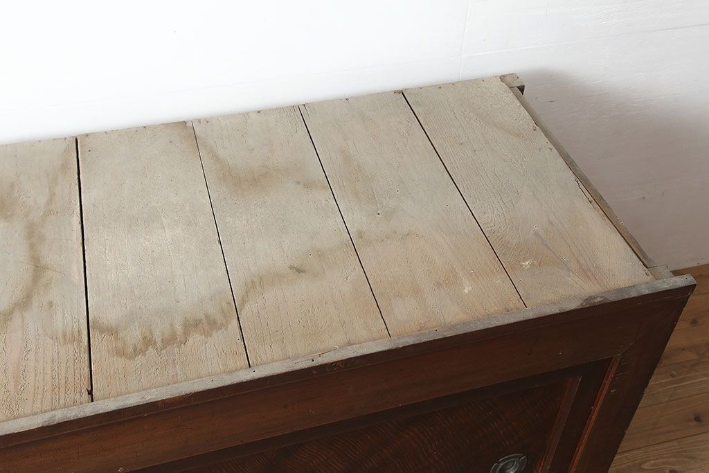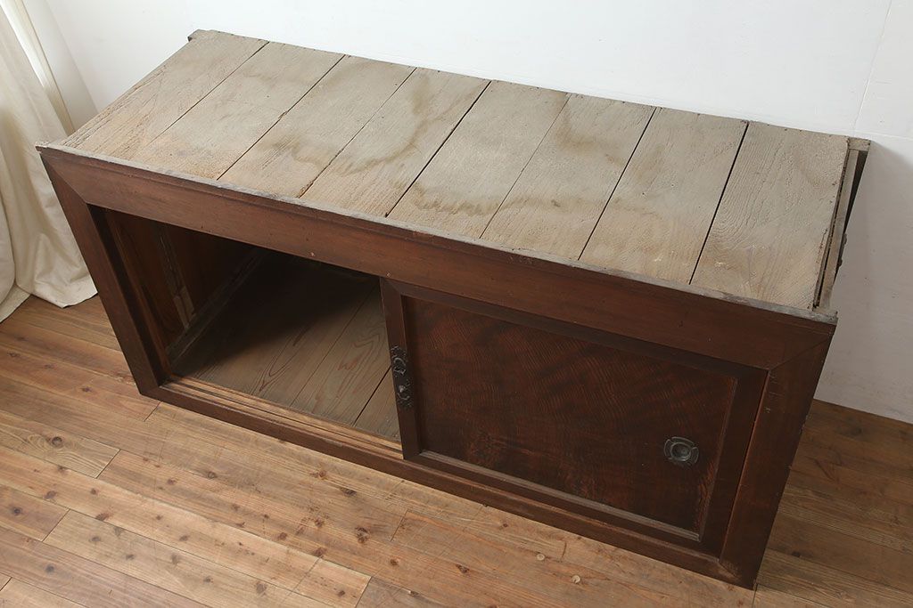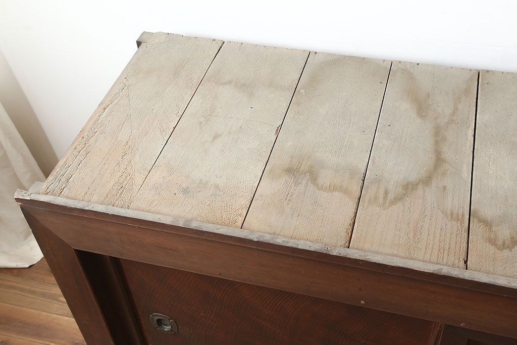 キャビネット・戸棚> サイドボード > アンティーク家具 明治大正期 ヒノキ材 落ち着いた雰囲気が魅力の水屋箪笥(サイドボード、収納棚、重ね箪笥)(R-040378)