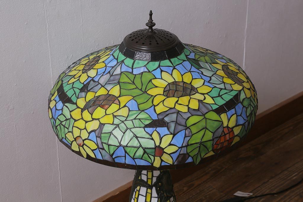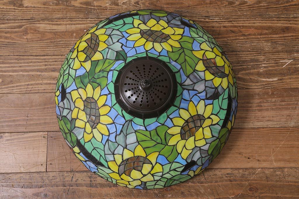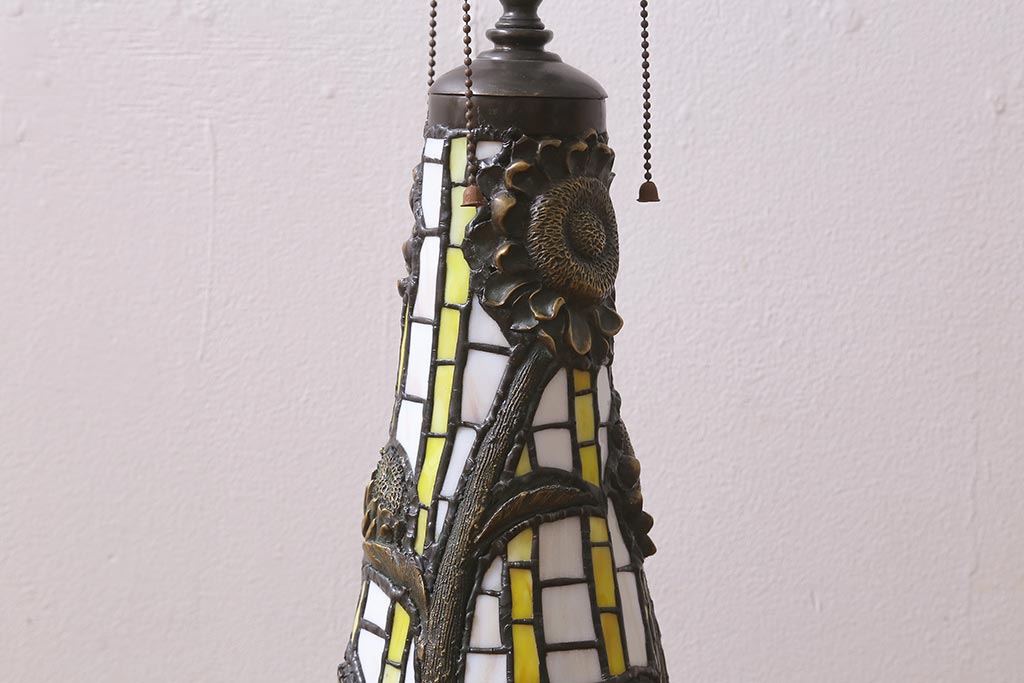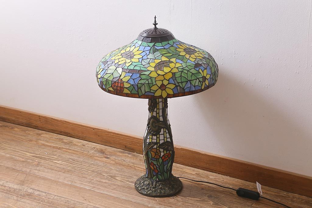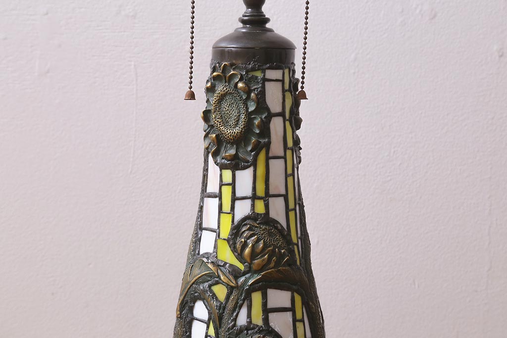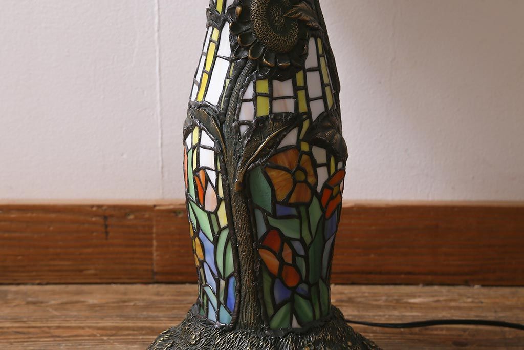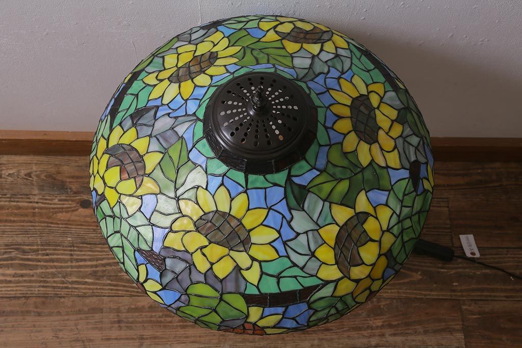 中古 アンティーク風 ティファニー風 銅製 ひまわり ステンドグラスのスタンドライト(フロアスタンド、照明)(R-040441)