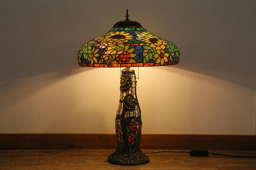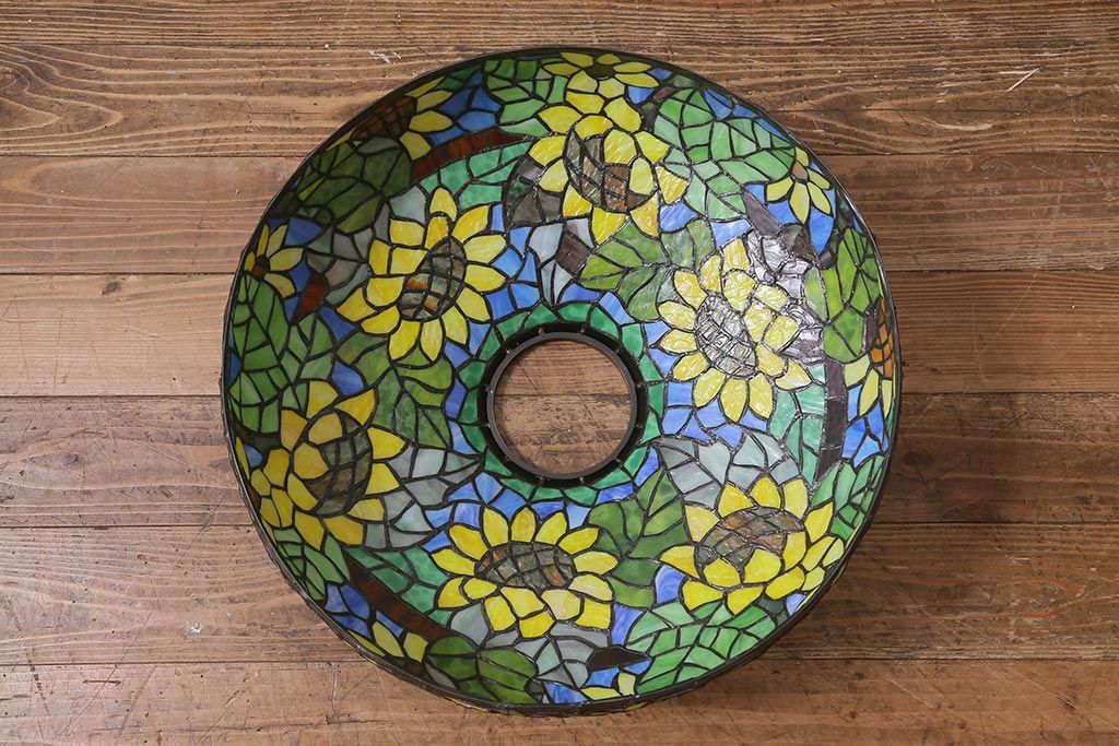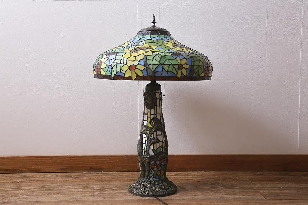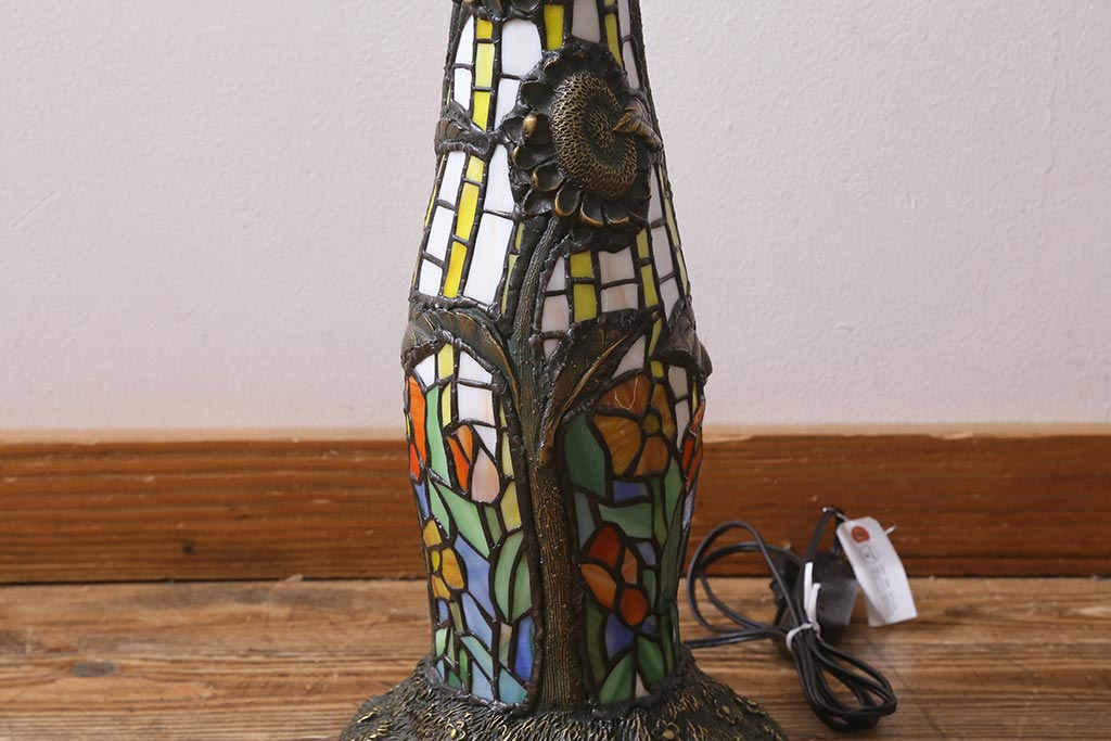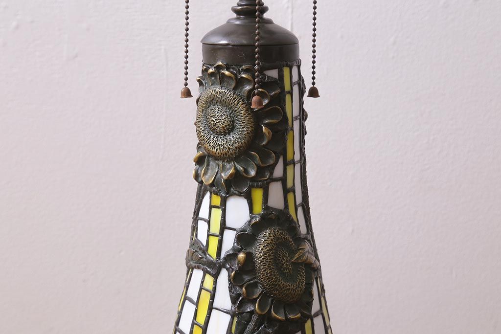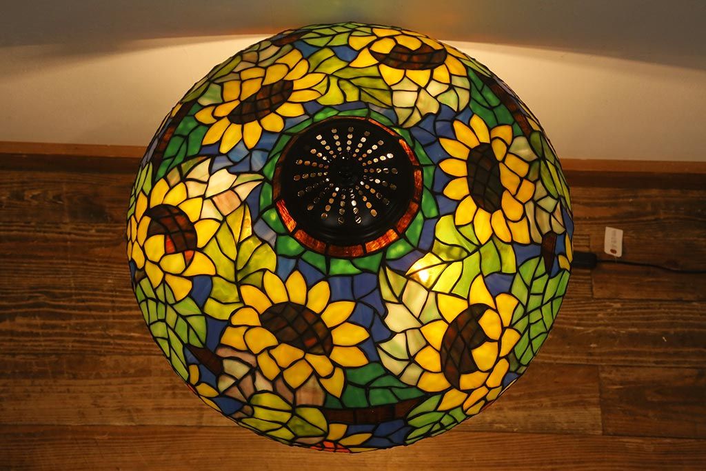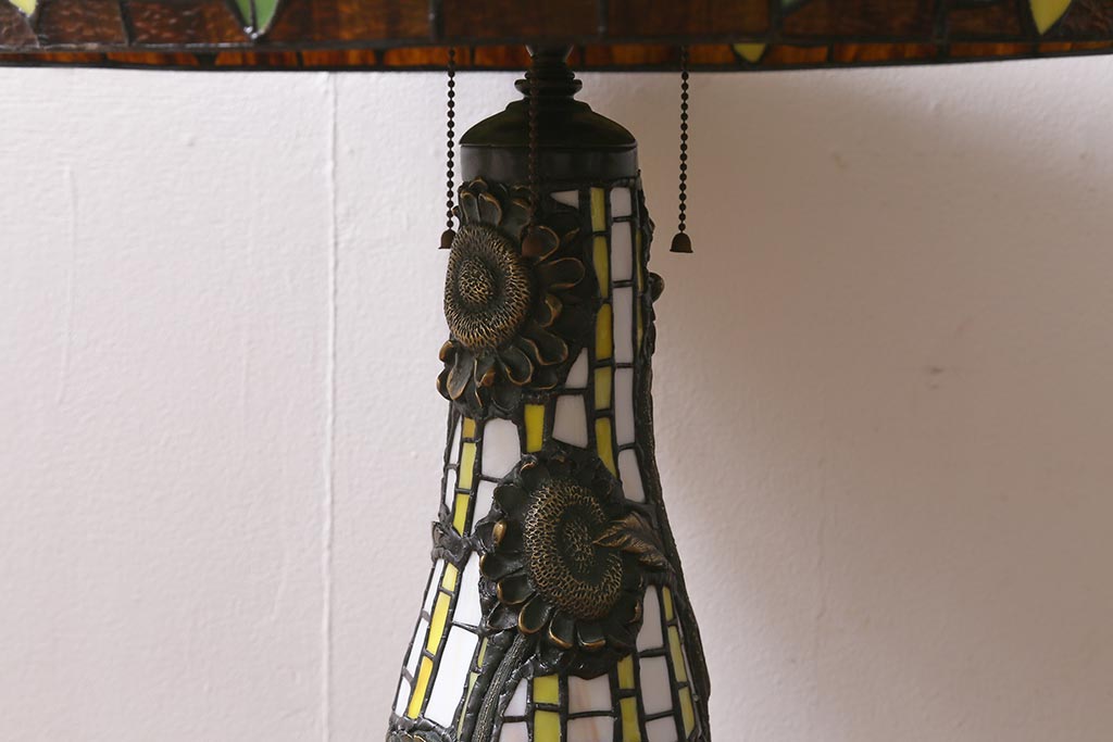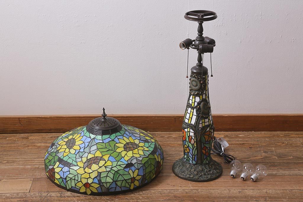 中古 アンティーク風 ティファニー風 銅製 ひまわり ステンドグラスのスタンドライト(フロアスタンド、照明)(R-040441)