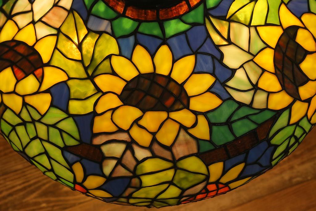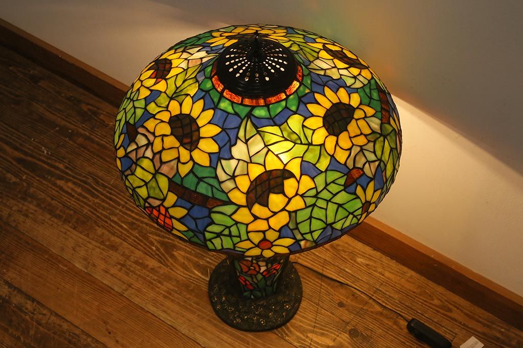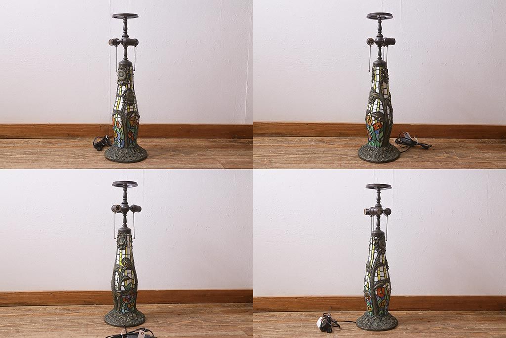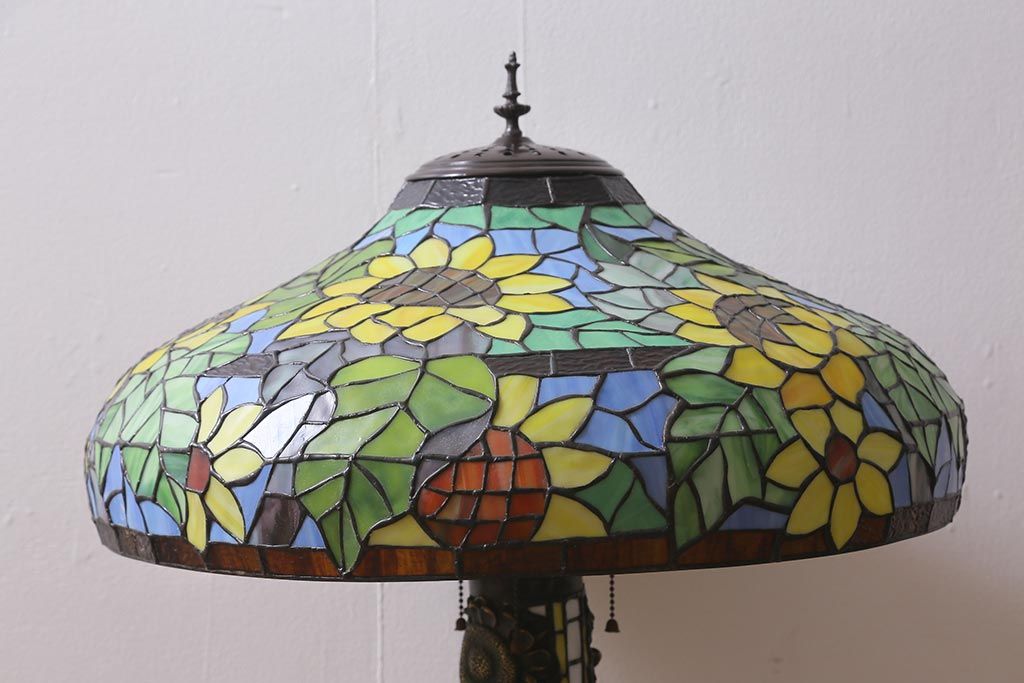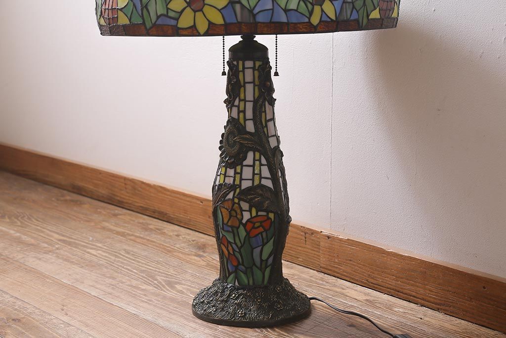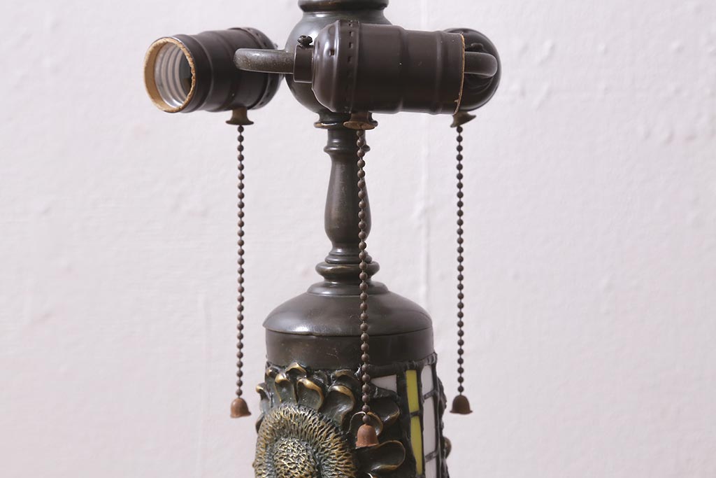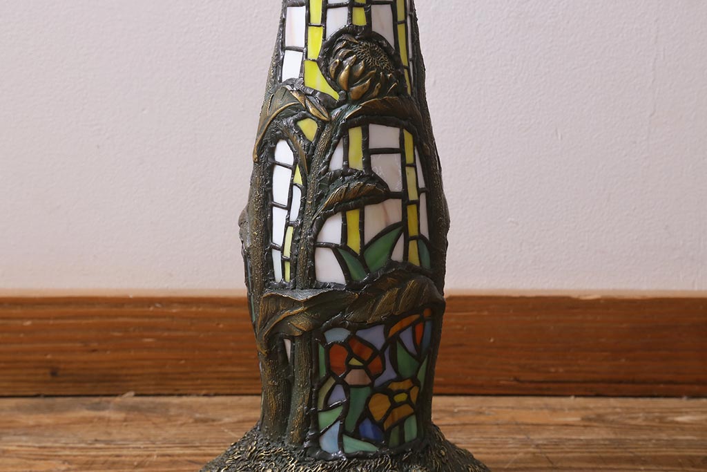 中古 アンティーク風 ティファニー風 銅製 ひまわり ステンドグラスのスタンドライト(フロアスタンド、照明)(R-040441)