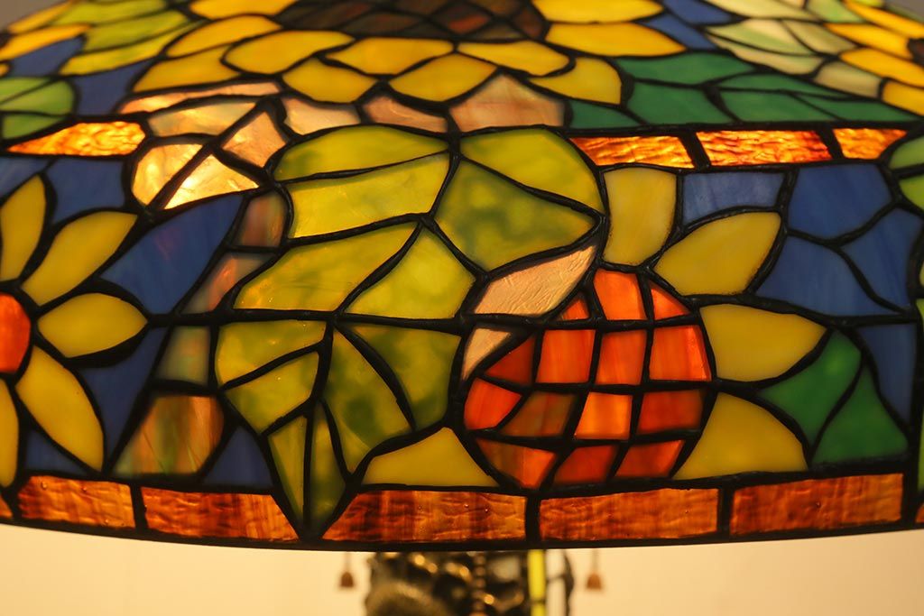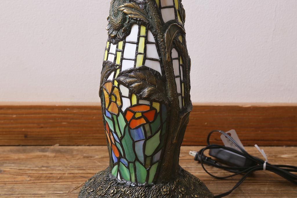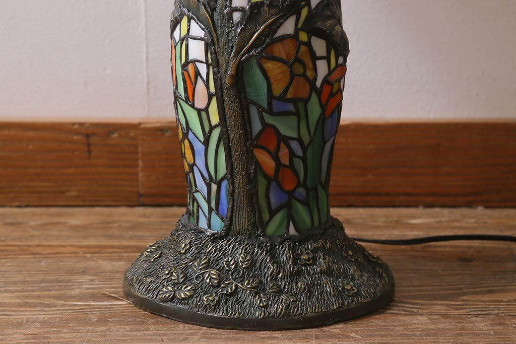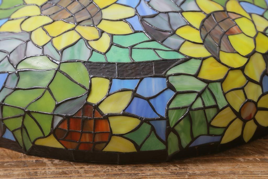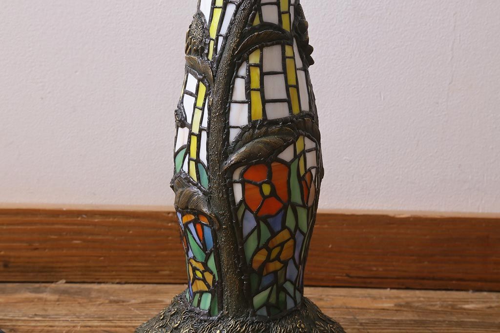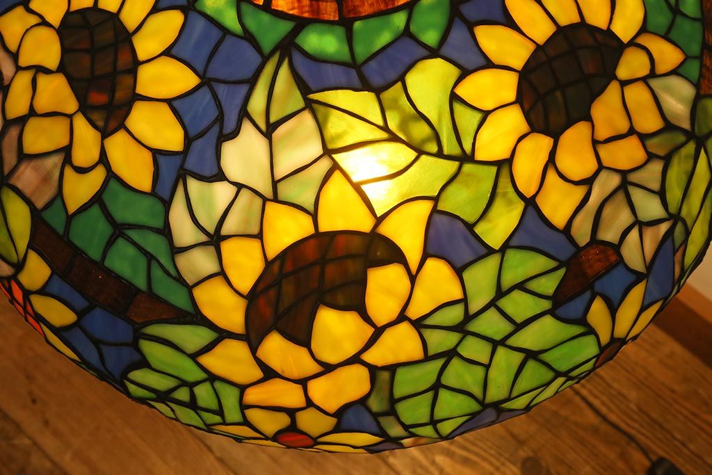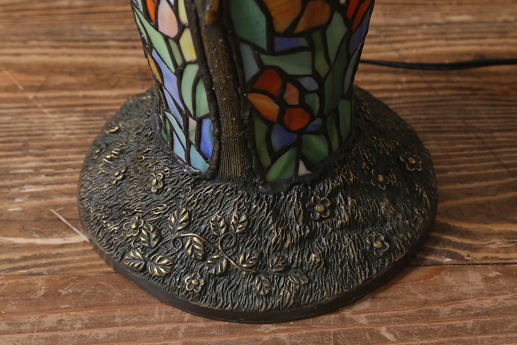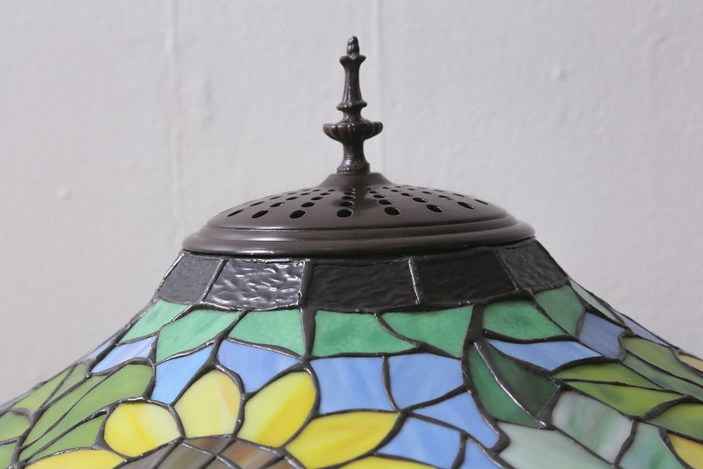 中古 アンティーク風 ティファニー風 銅製 ひまわり ステンドグラスのスタンドライト(フロアスタンド、照明)(R-040441)