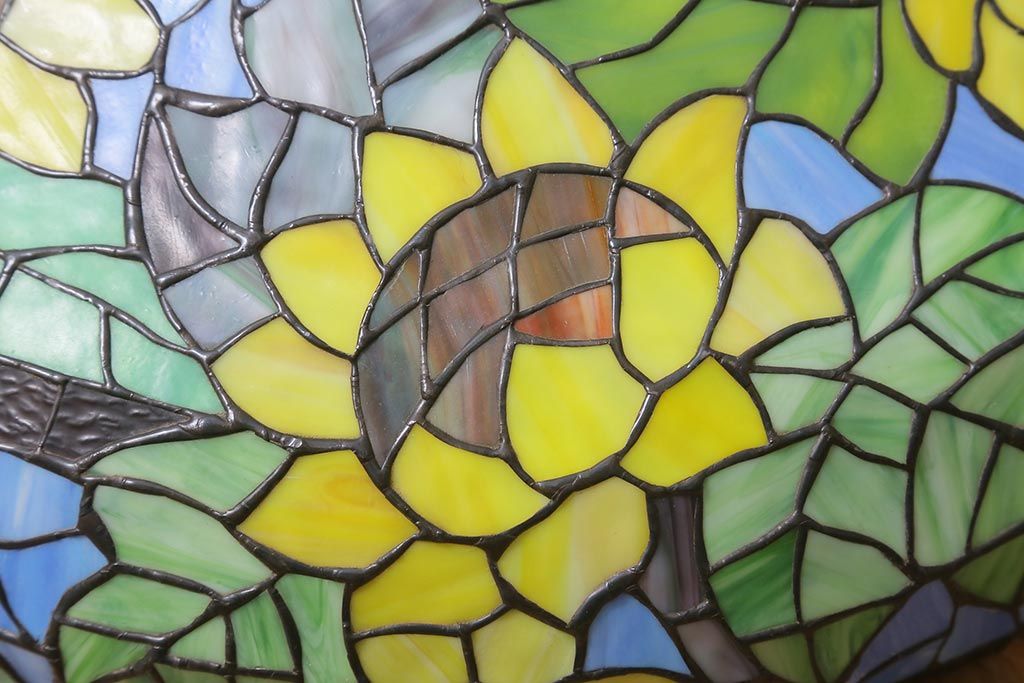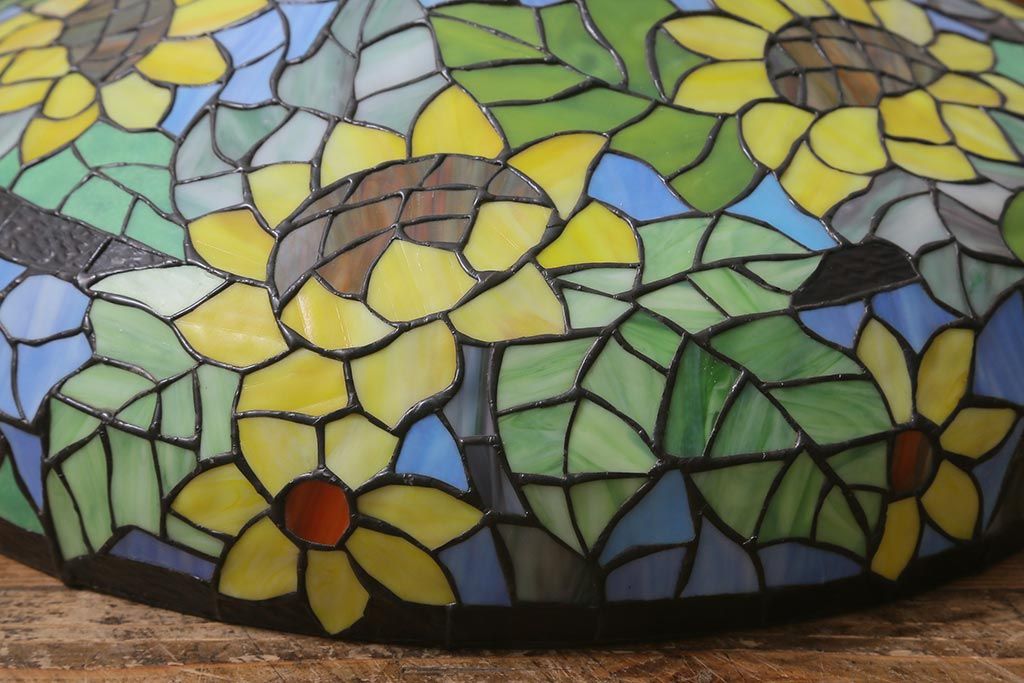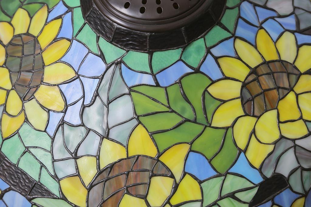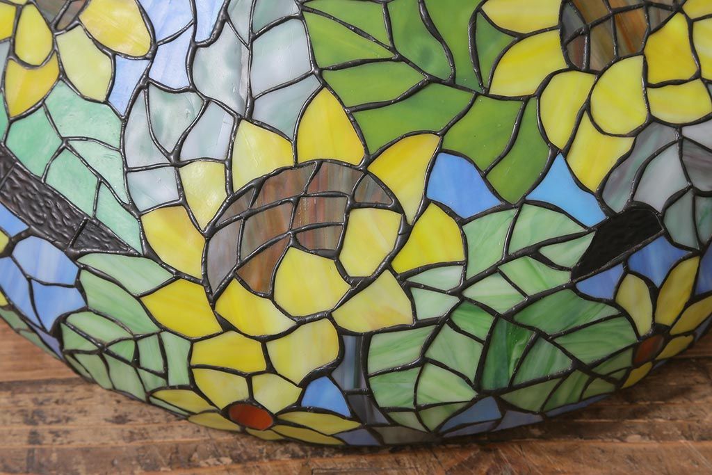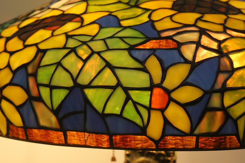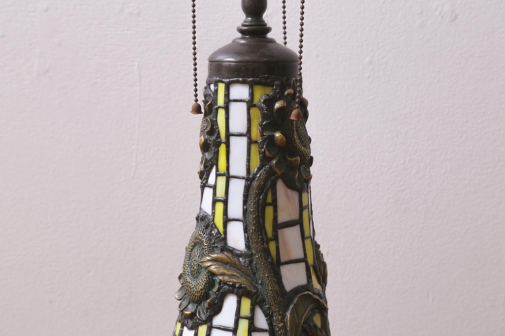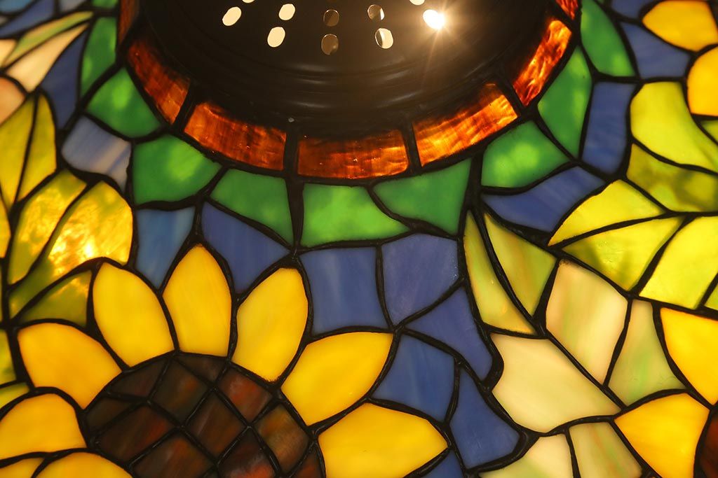 中古 アンティーク風 ティファニー風 銅製 ひまわり ステンドグラスのスタンドライト(フロアスタンド、照明)(R-040441)