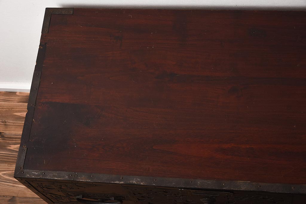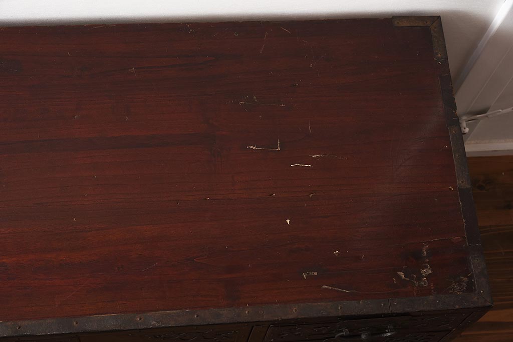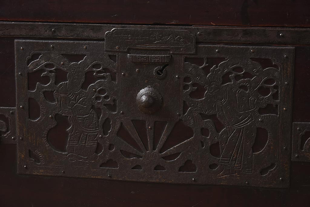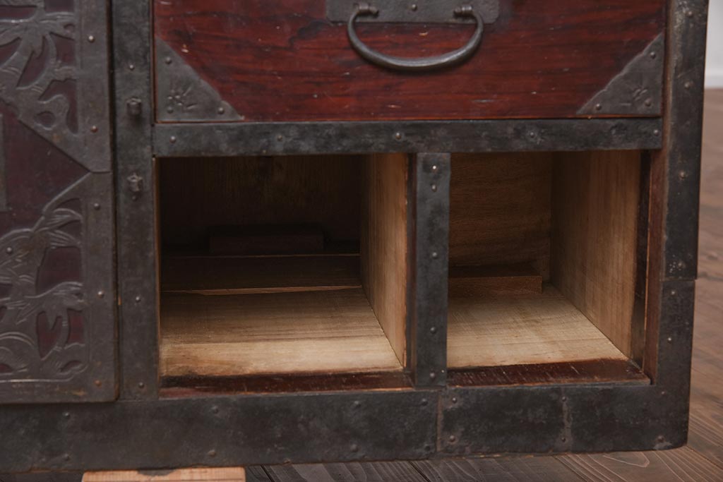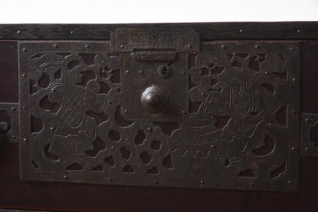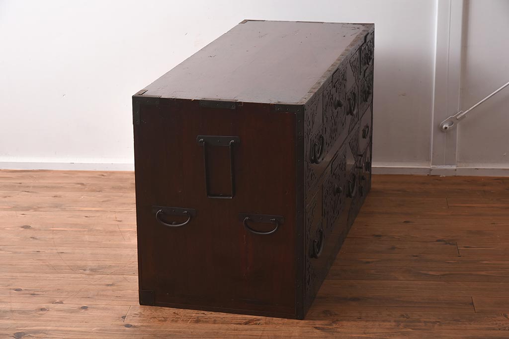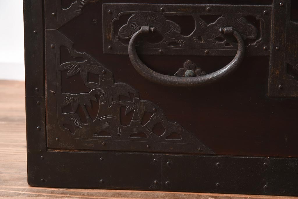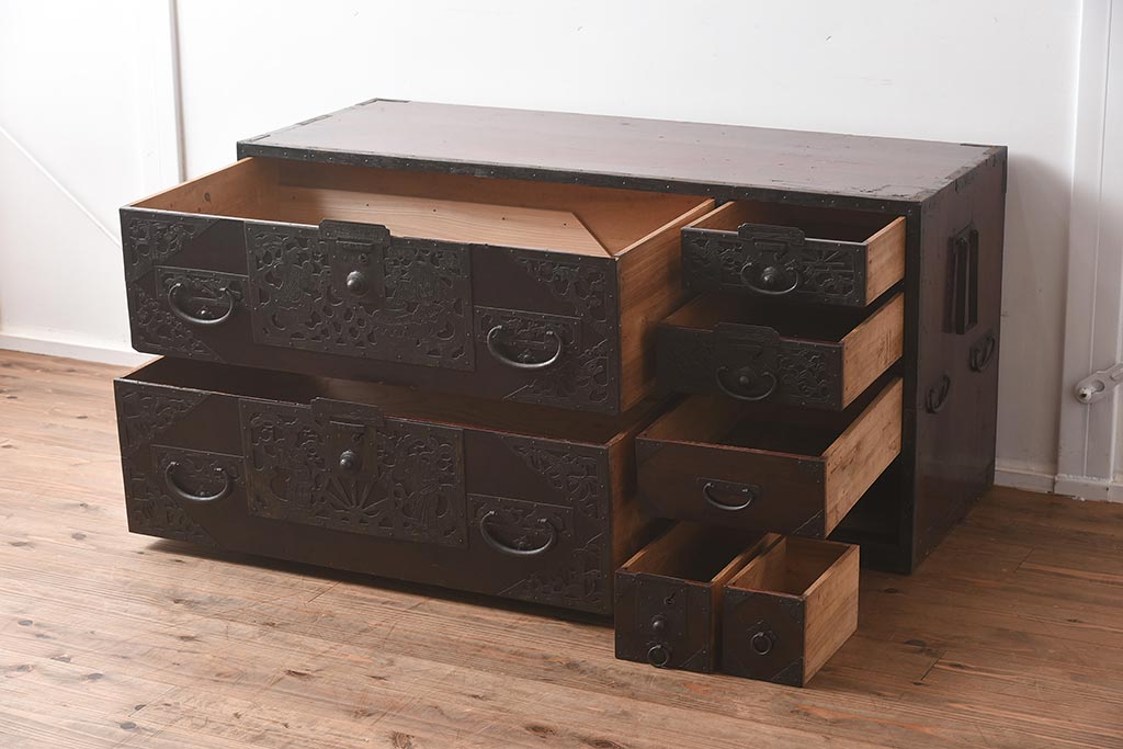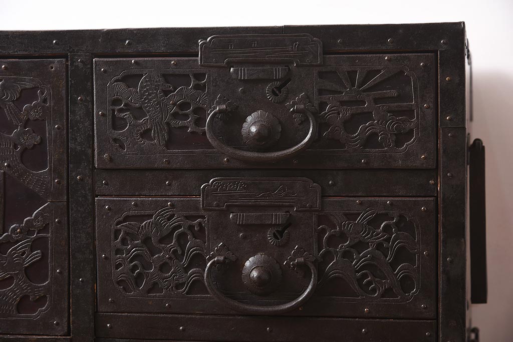 和箪笥> 衣装箪笥 > アンティーク家具 和製アンティーク 明治期 細かな透かし金具が目を引く佐渡箪笥(八幡箪笥、衣装箪笥、引き出し、チェスト)(R-040248)