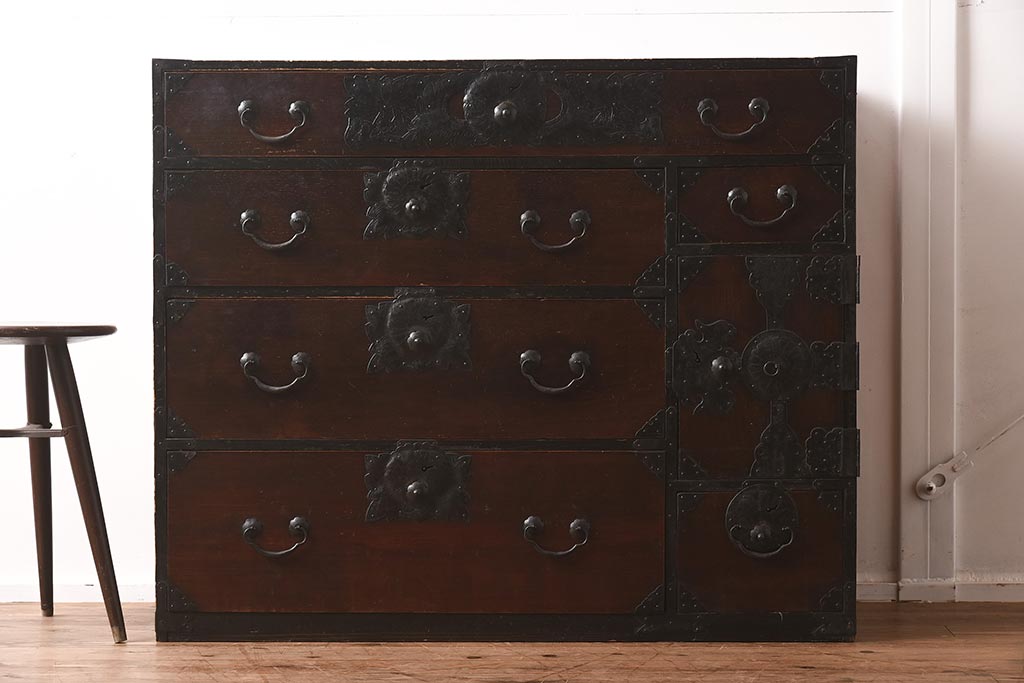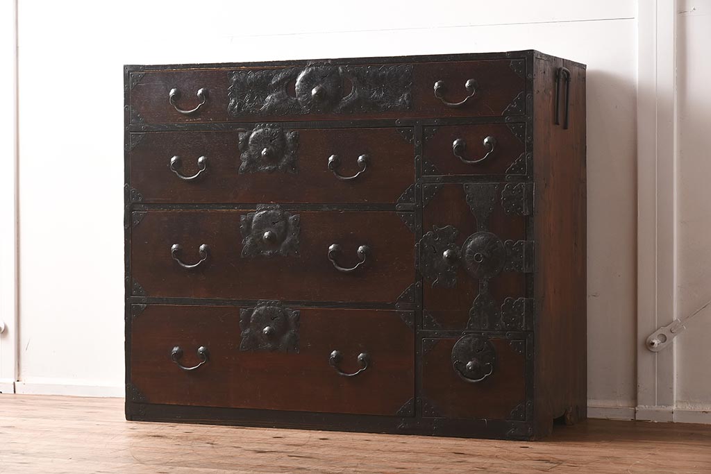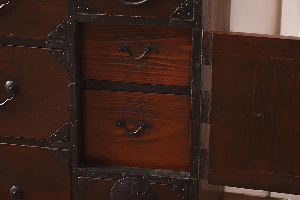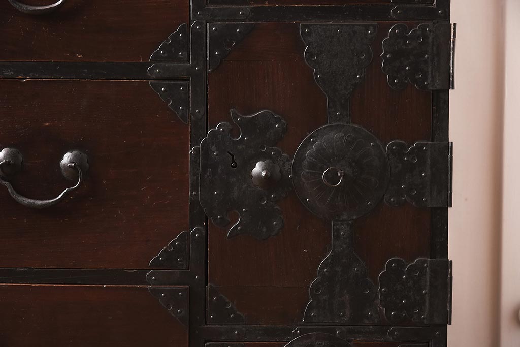 和箪笥> 衣装箪笥 > アンティーク家具 和製アンティーク 大正期 味わい深い和の趣が魅力的な仙台箪笥(時代箪笥、衣装箪笥、サイドボード)(R-040411)