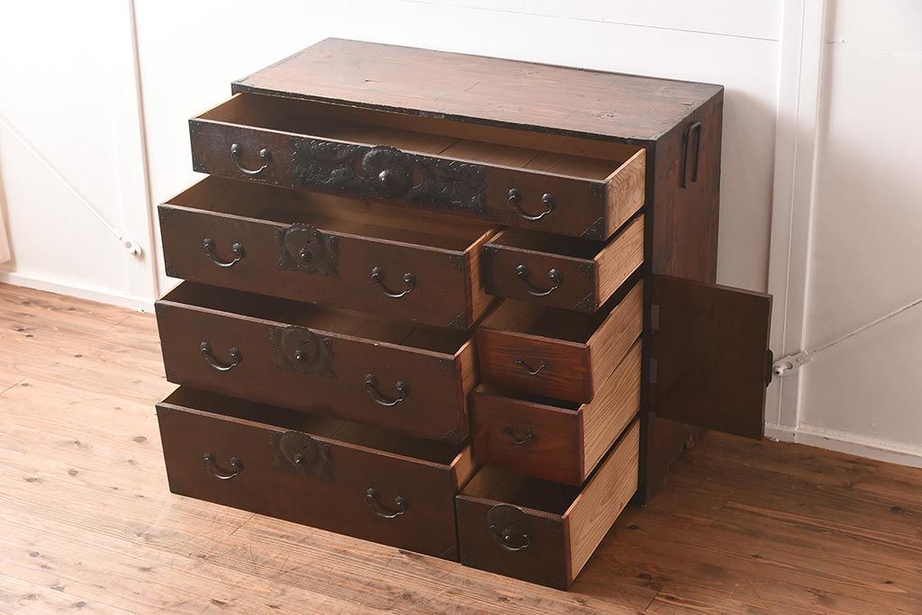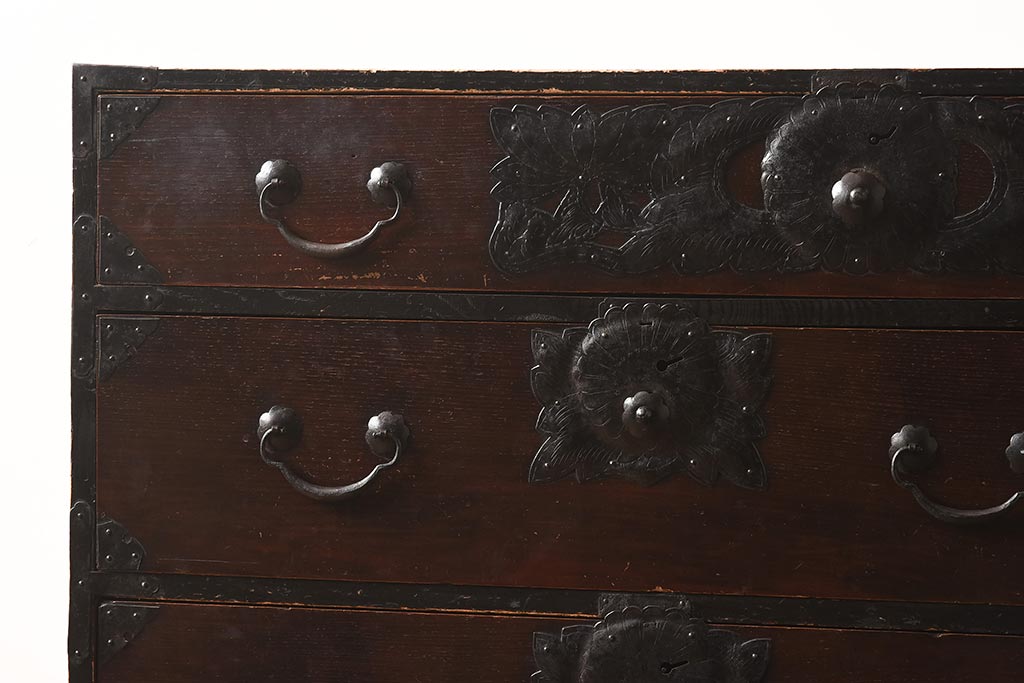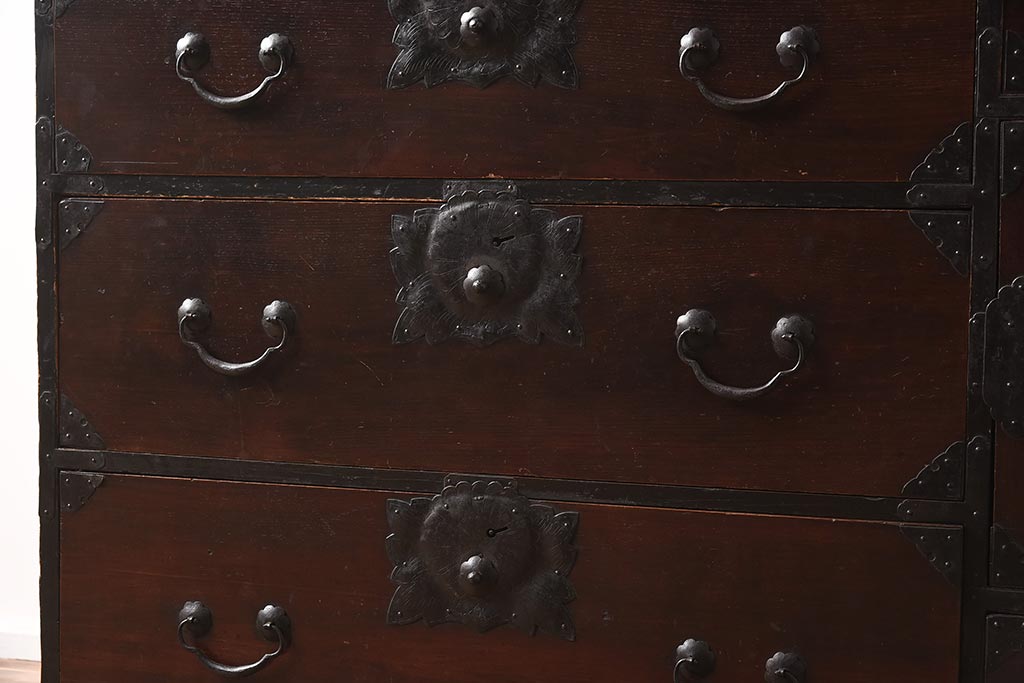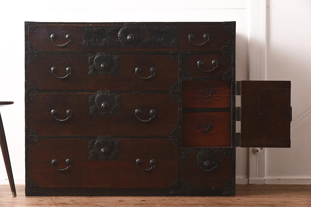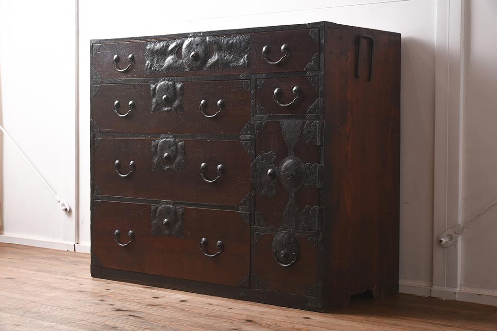 和箪笥> 衣装箪笥 > アンティーク家具 和製アンティーク 大正期 味わい深い和の趣が魅力的な仙台箪笥(時代箪笥、衣装箪笥、サイドボード)(R-040411)