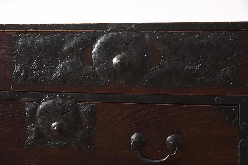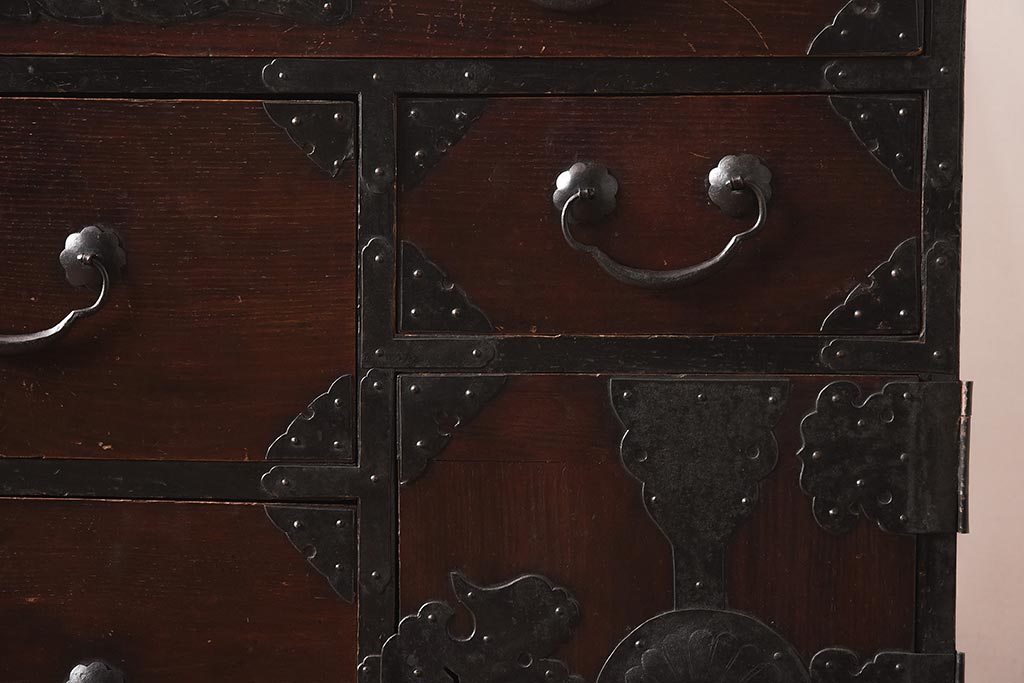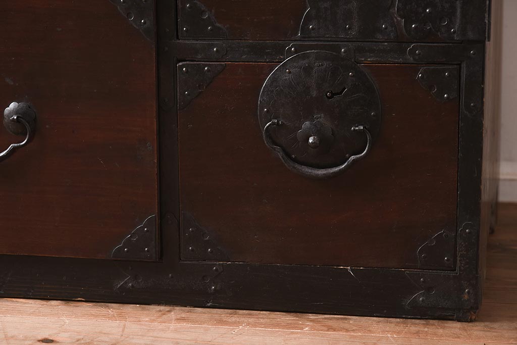 和箪笥 > アンティーク家具 和製アンティーク 大正期 味わい深い和の趣が魅力的な仙台箪笥(時代箪笥、衣装箪笥、サイドボード)(R-040411)
