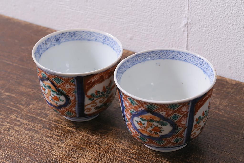 アンティーク雑貨 幕末〜明治 伊万里 色絵 蕎麦猪口2客セット(湯呑、向付、和食器)(R-040218)