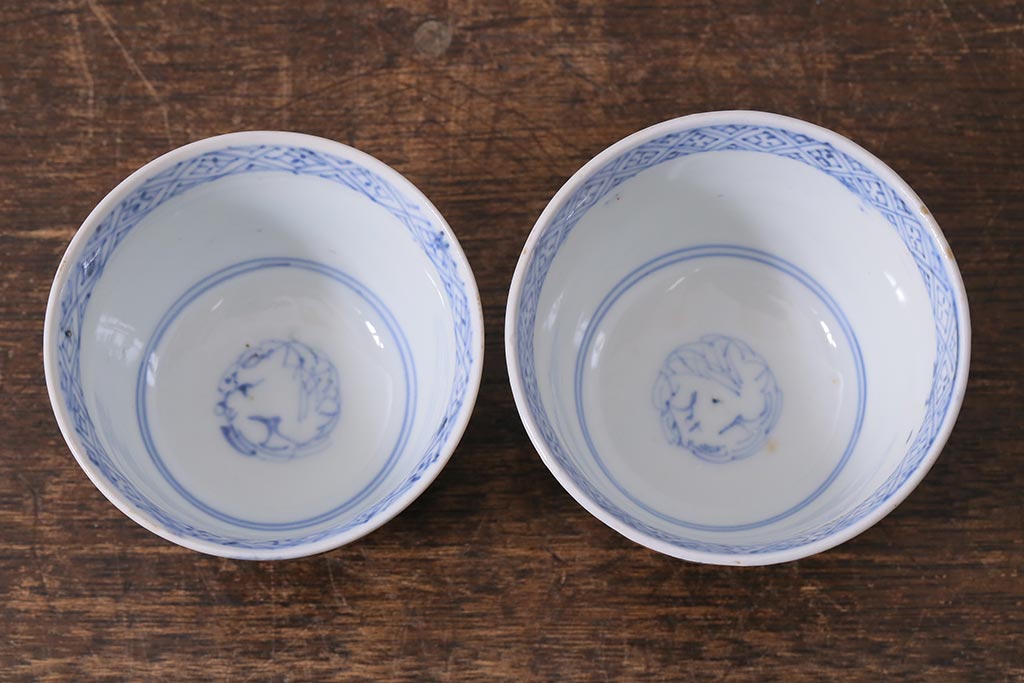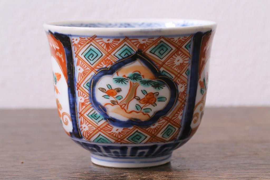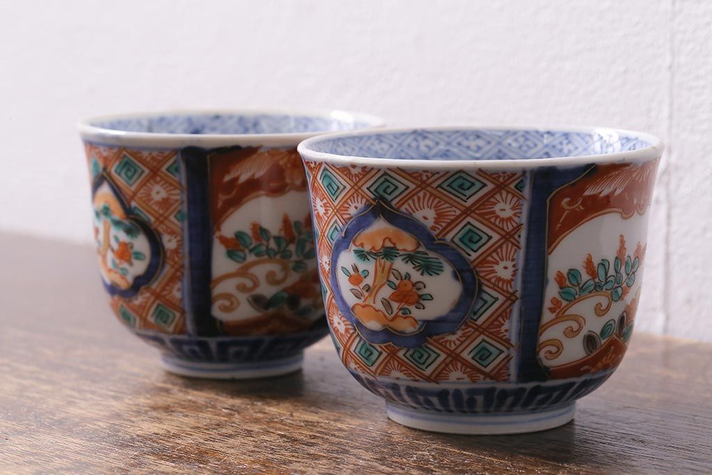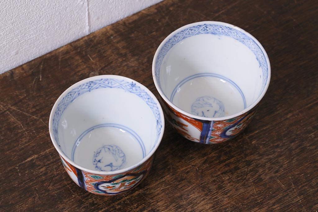 ラフジュ工房> 伝統工芸品> 伊万里焼 > アンティーク雑貨 幕末〜明治 伊万里 色絵 蕎麦猪口2客セット(湯呑、向付、和食器)(R-040218)