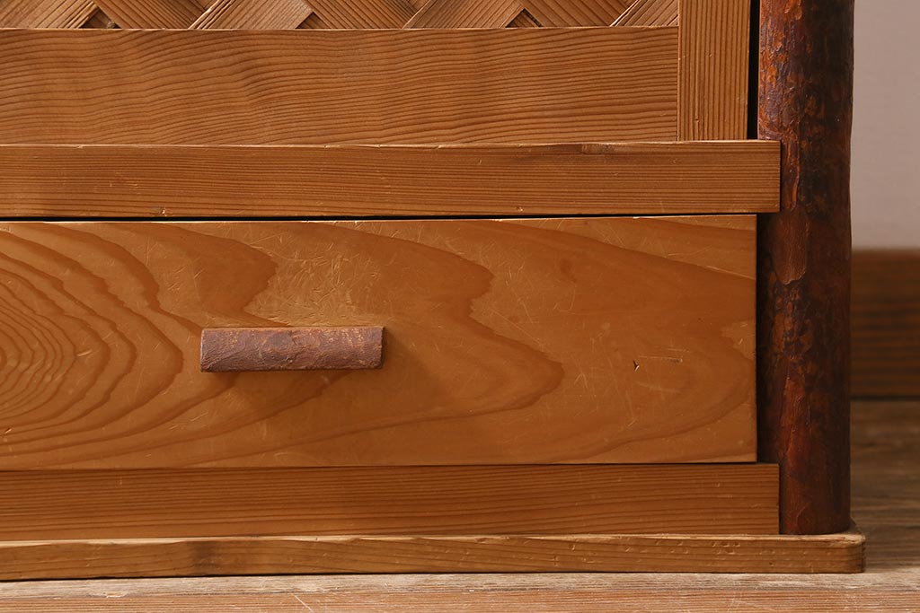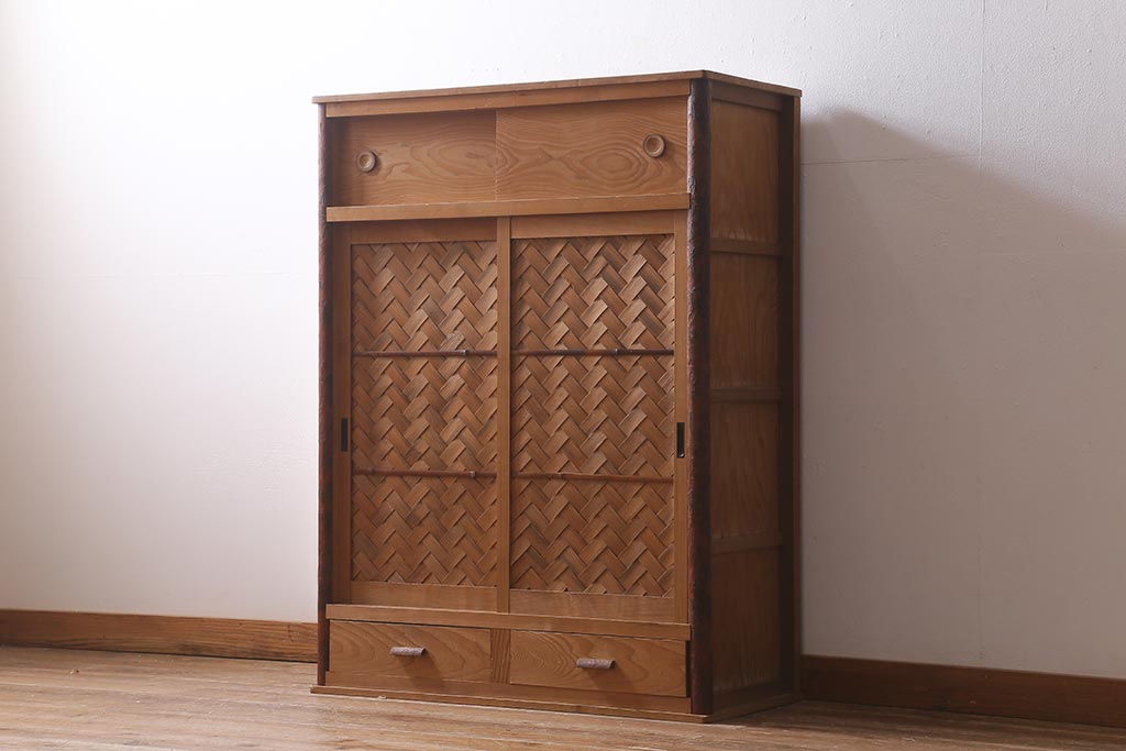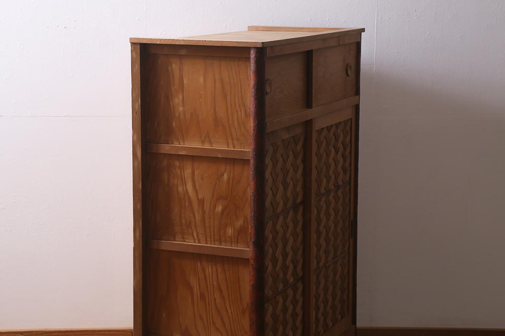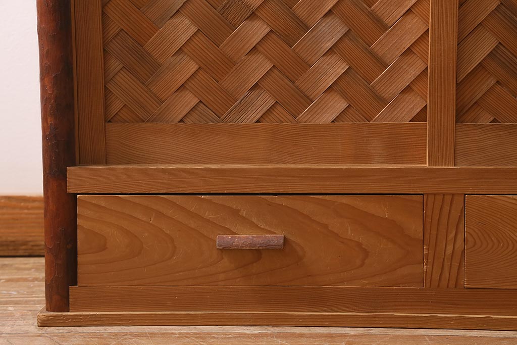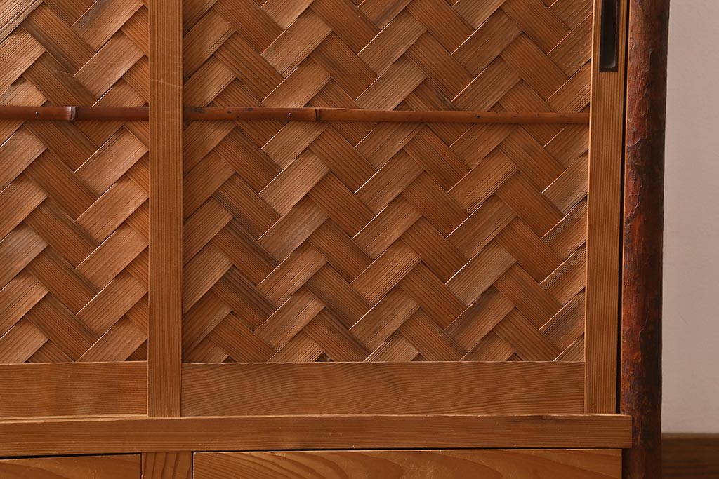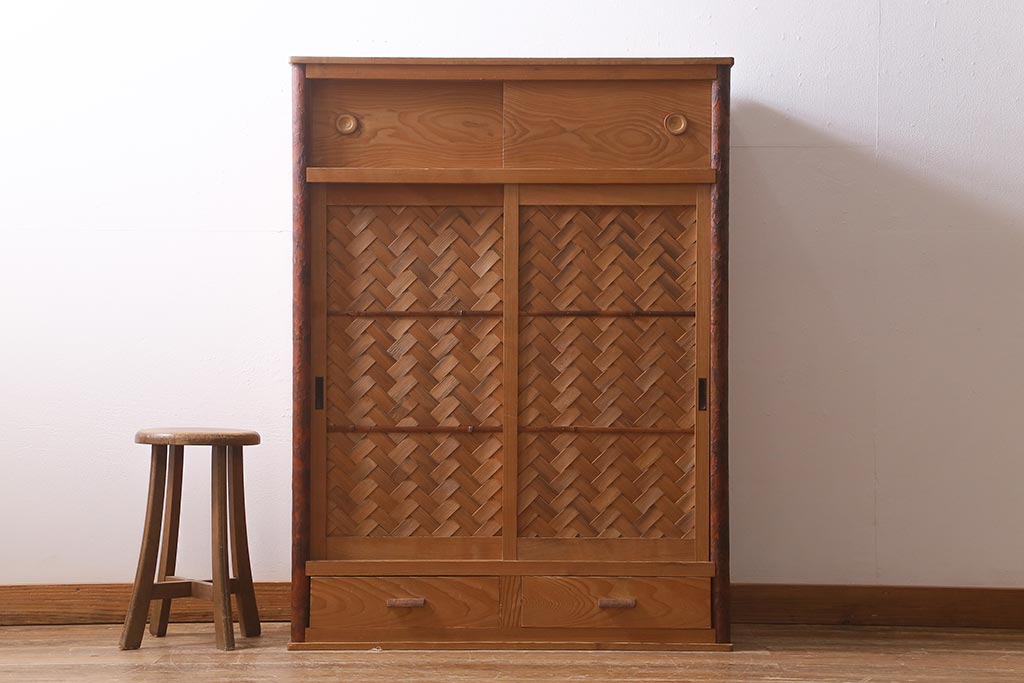 和箪笥 > 中古 民芸家具 網代引戸 杉材・桜皮 上品な雰囲気漂う置き水屋(置水屋、茶水屋、茶道具、戸棚)(R-040475)