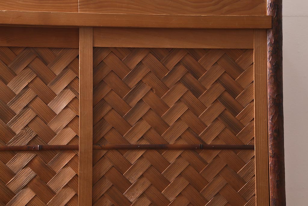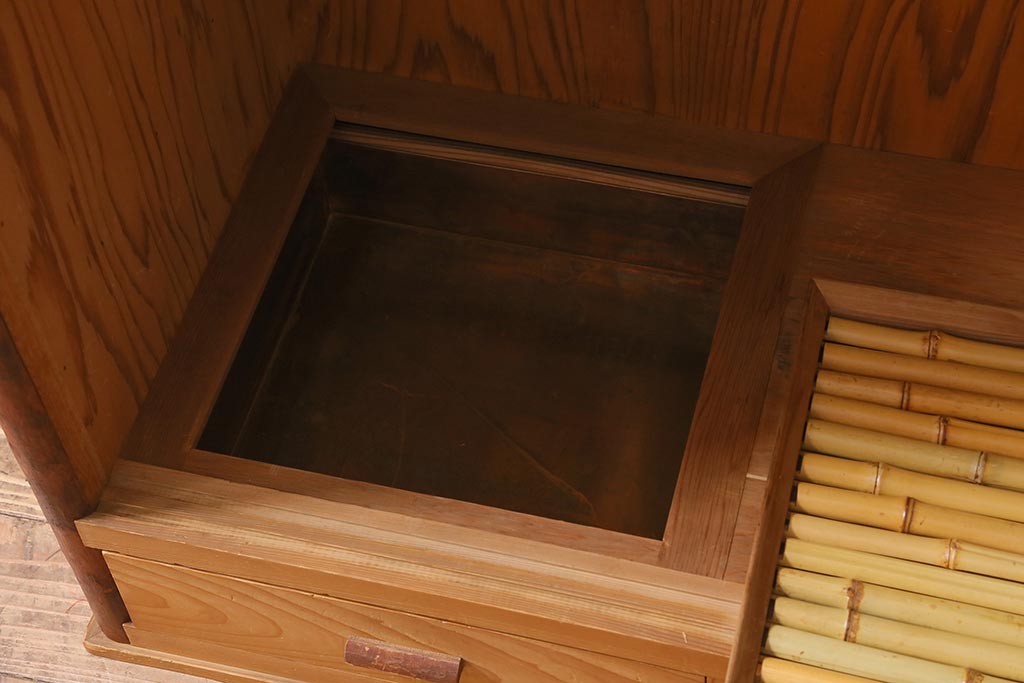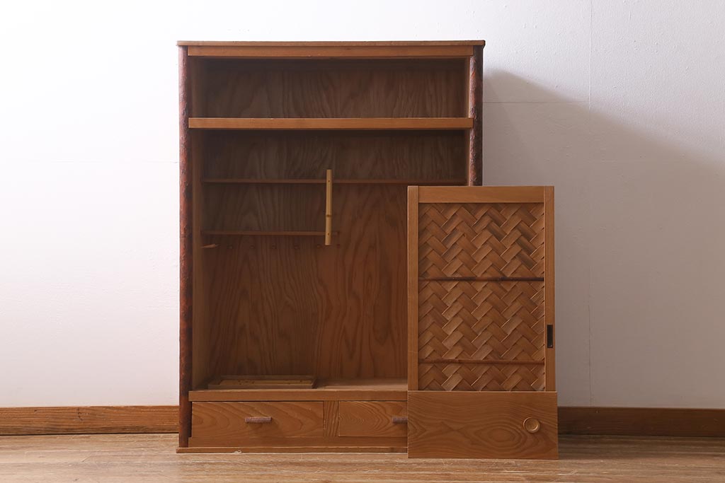 中古 民芸家具 網代引戸 杉材・桜皮 上品な雰囲気漂う置き水屋(置水屋、茶水屋、茶道具、戸棚)(R-040475)
