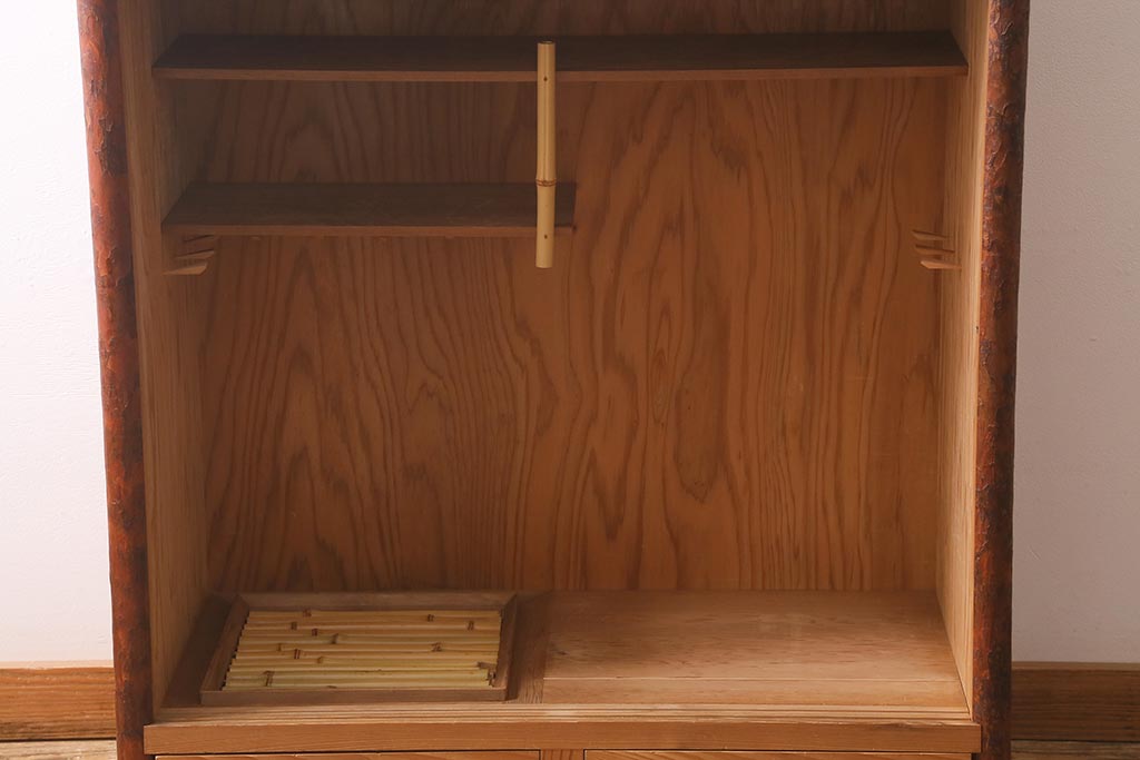 民芸家具 > 中古 民芸家具 網代引戸 杉材・桜皮 上品な雰囲気漂う置き水屋(置水屋、茶水屋、茶道具、戸棚)(R-040475)
