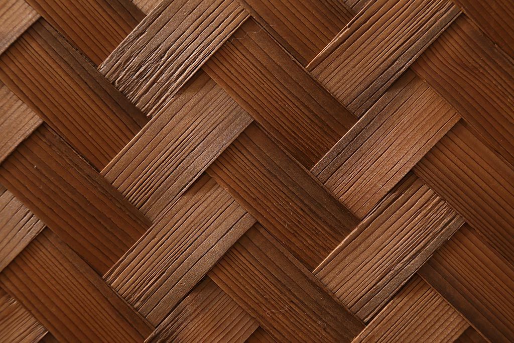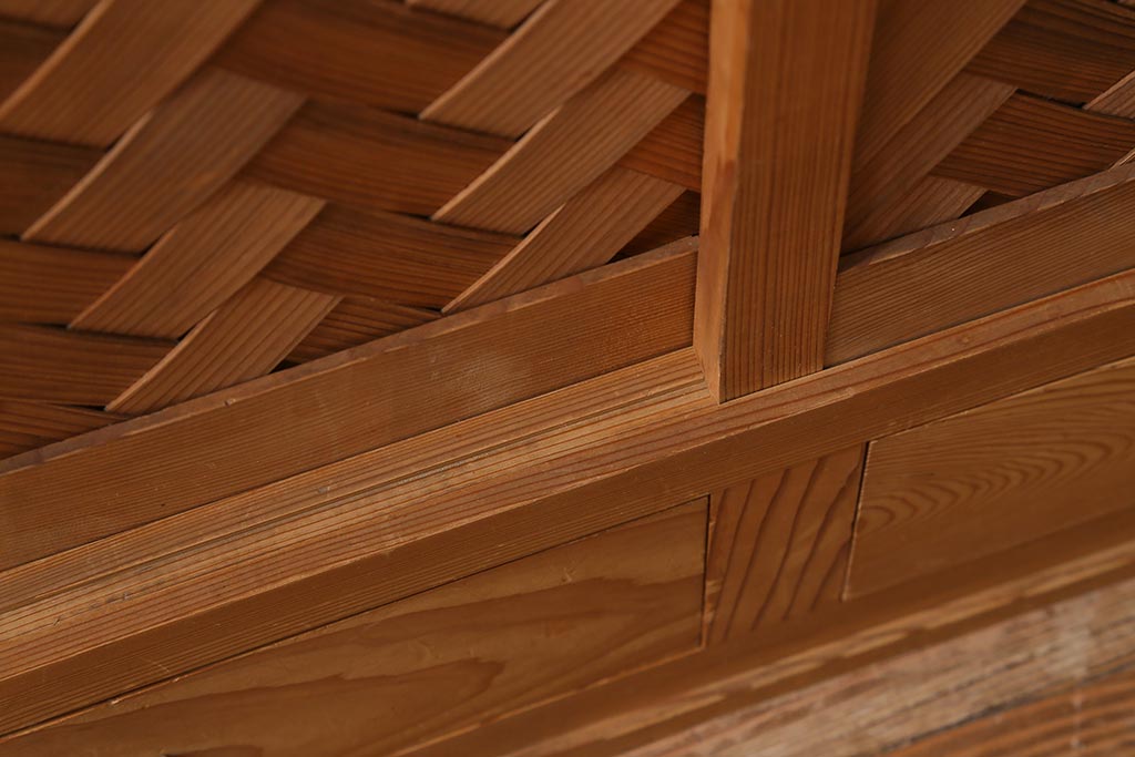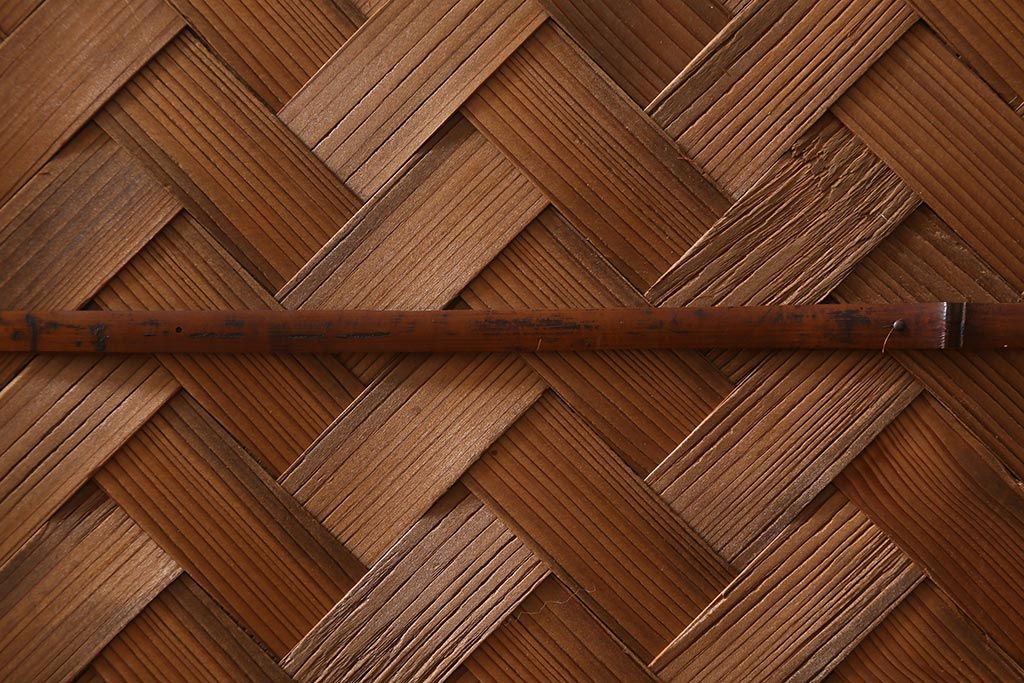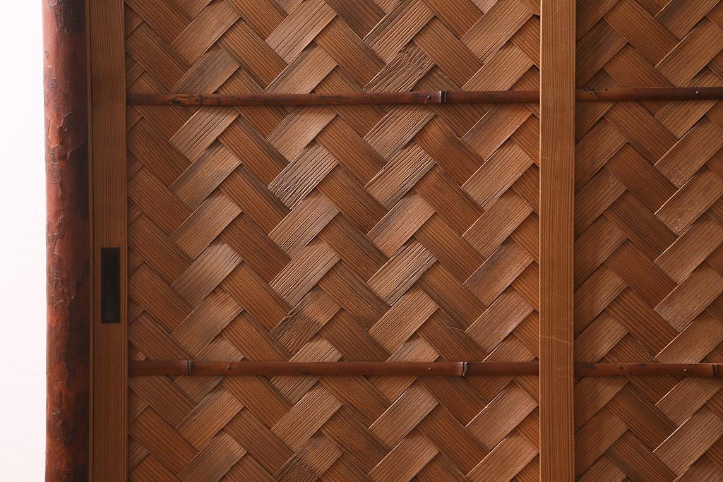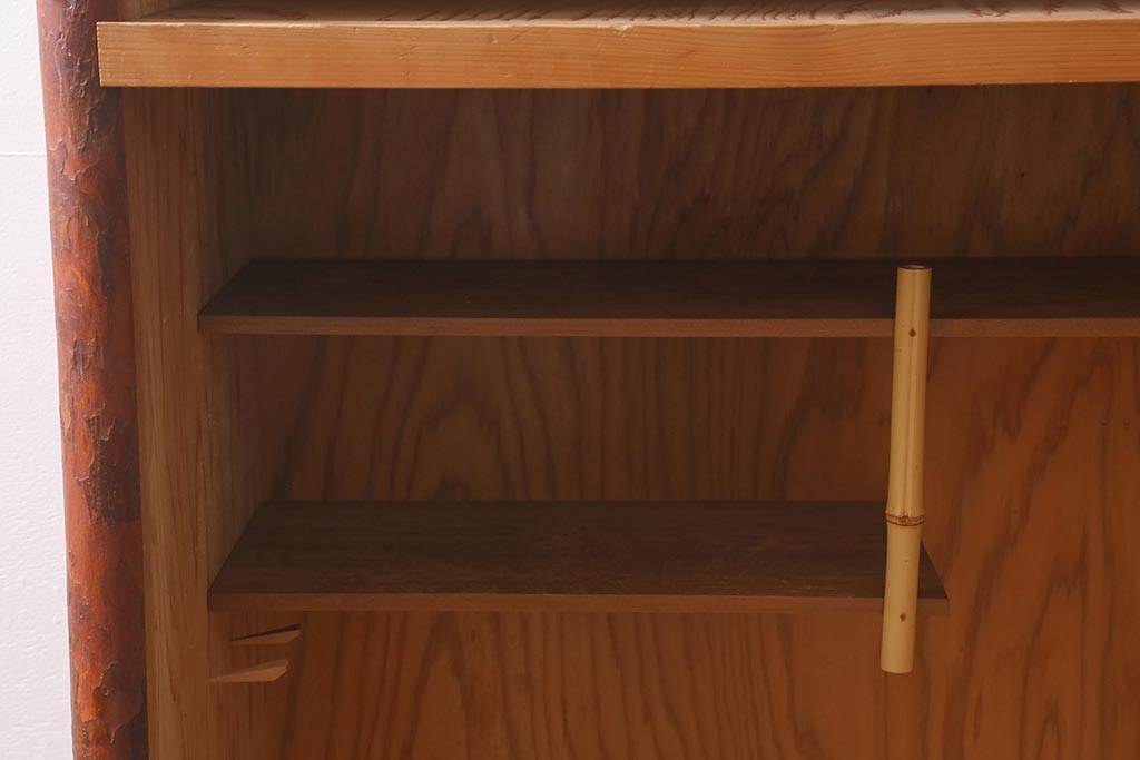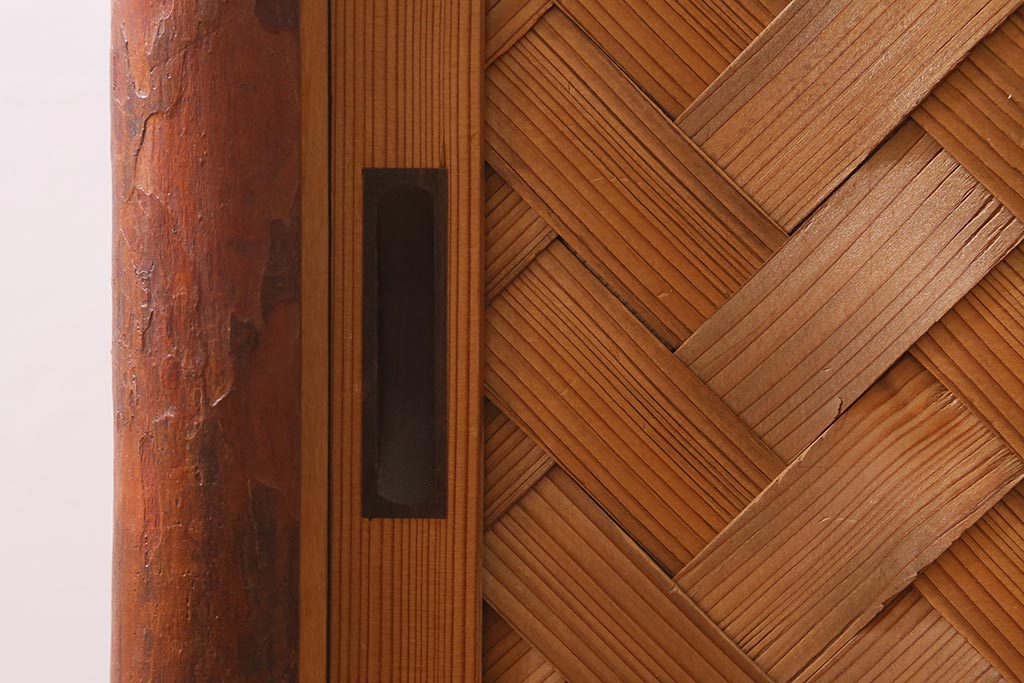 引き戸は網代編み、前面の支柱や取っ手は桜皮で装飾されており、