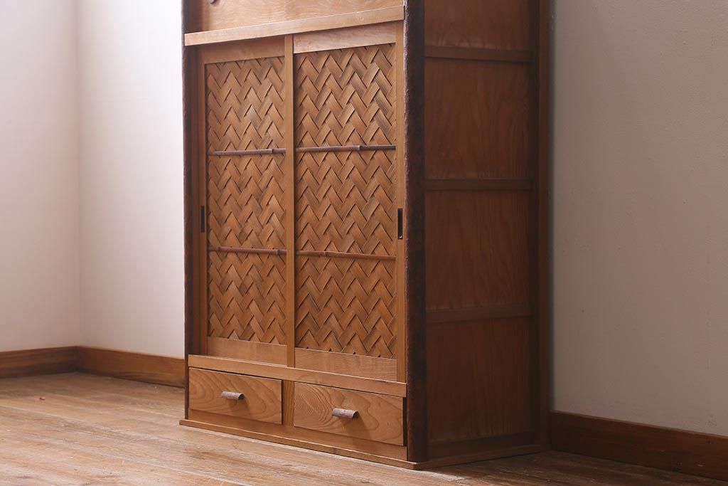 和箪笥> 水屋箪笥 > 中古 民芸家具 網代引戸 杉材・桜皮 上品な雰囲気漂う置き水屋(置水屋、茶水屋、茶道具、戸棚)(R-040475)