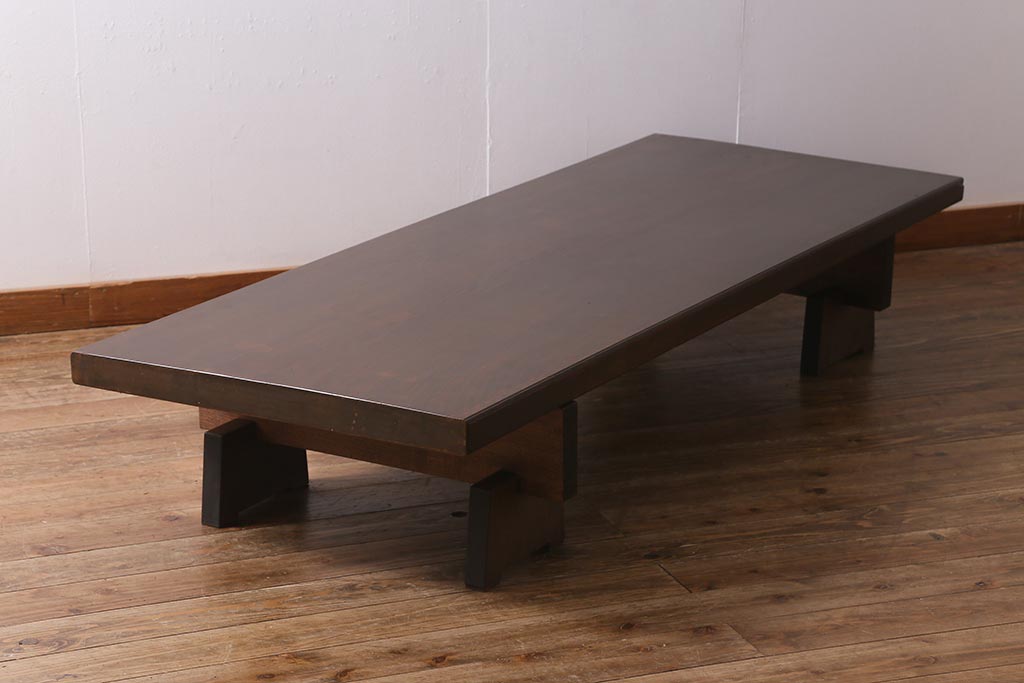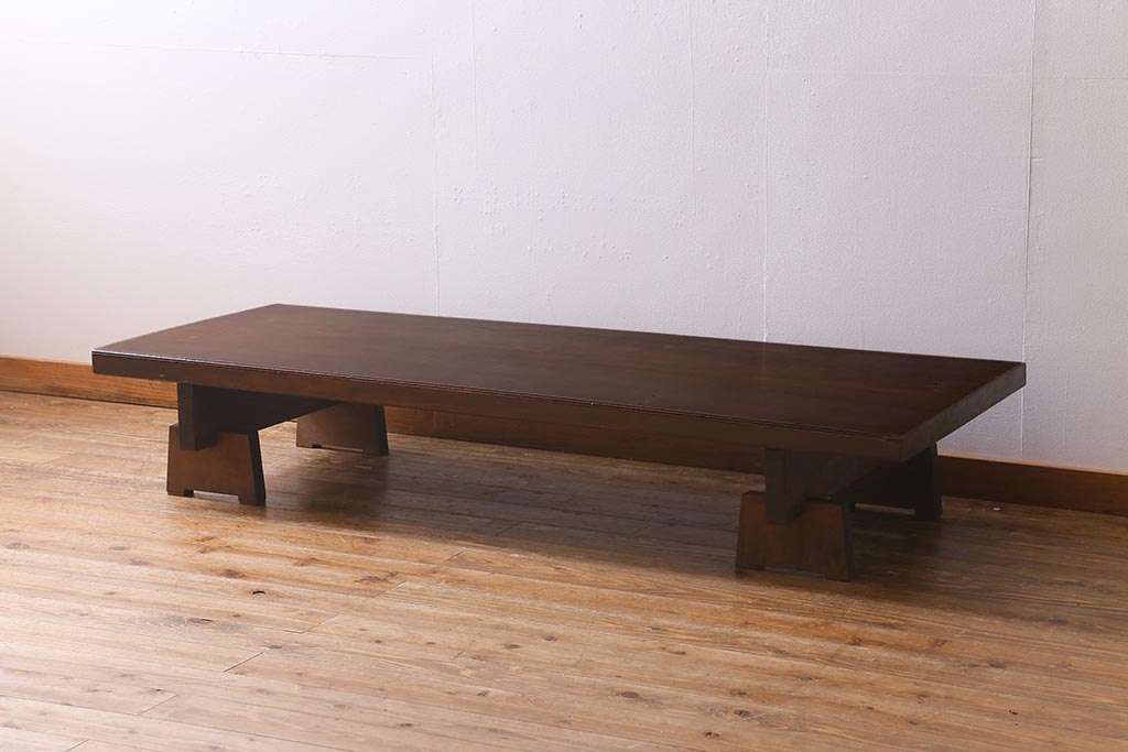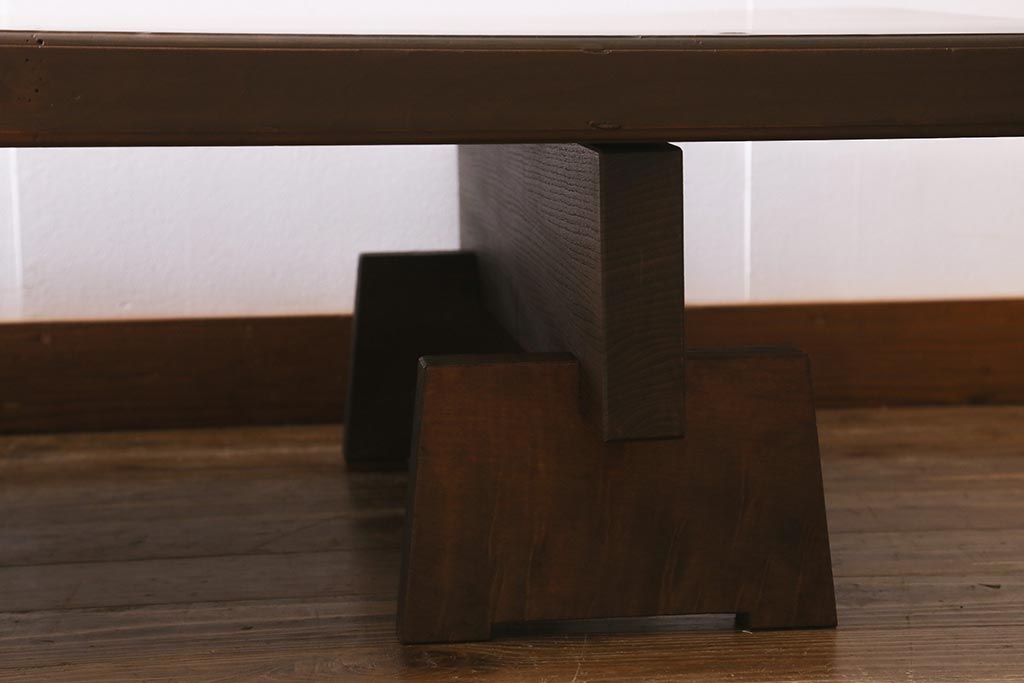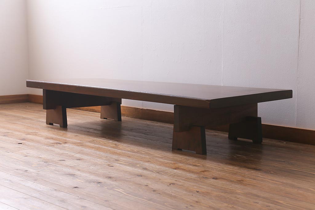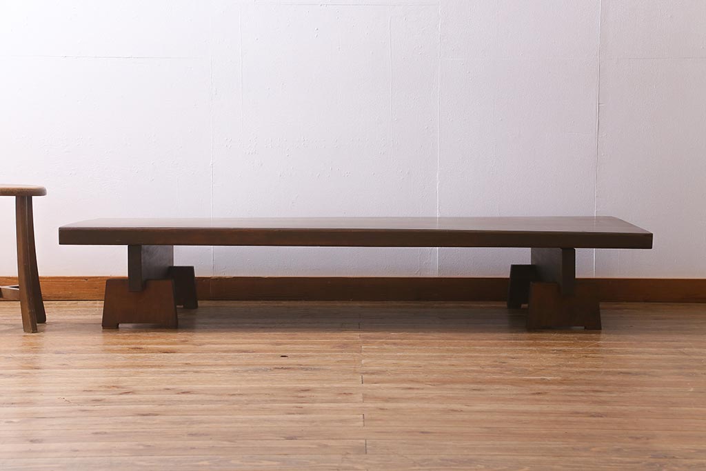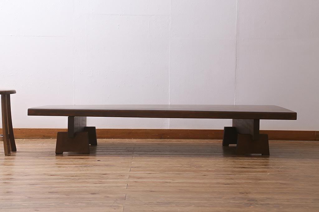 アンティーク家具 和製アンティーク 昭和初期 天板一枚板 味わい深い濃い木色が素敵な特大の裁ち板(作業台、飾り台、陳列台)(R-040414)です。