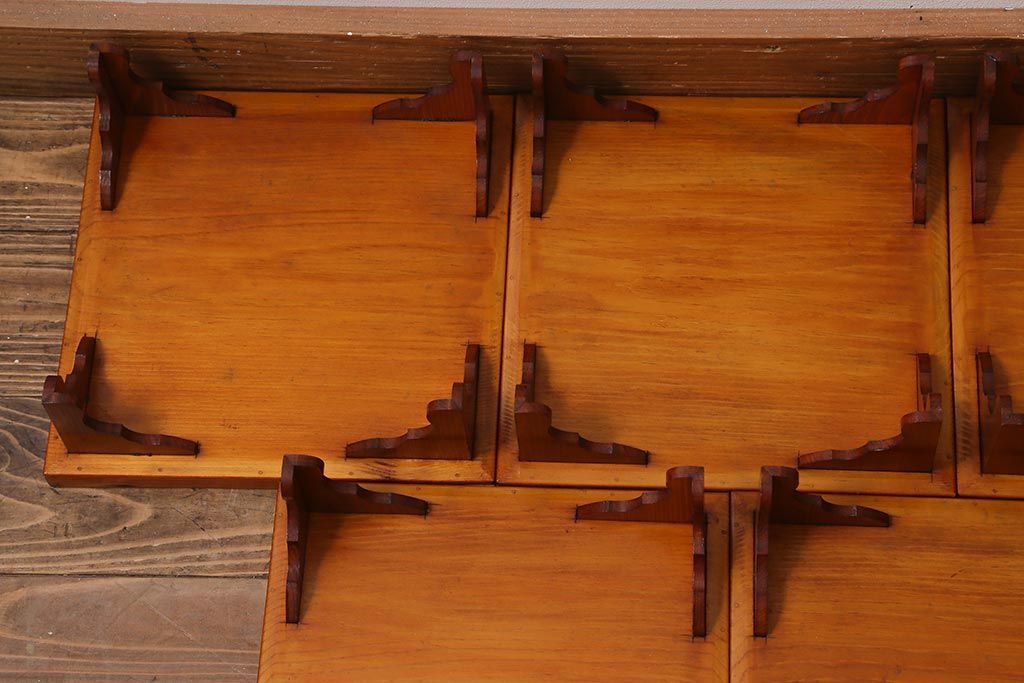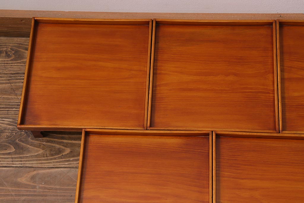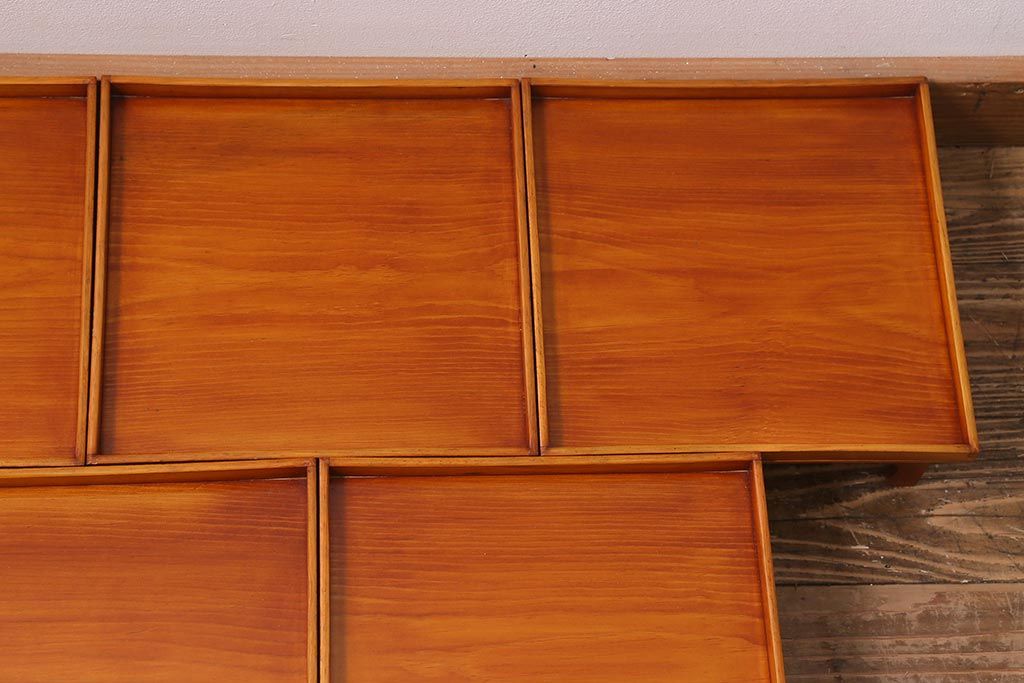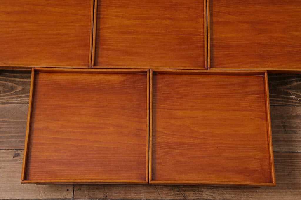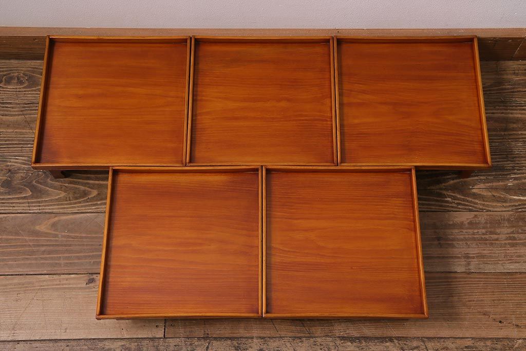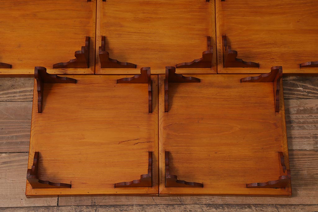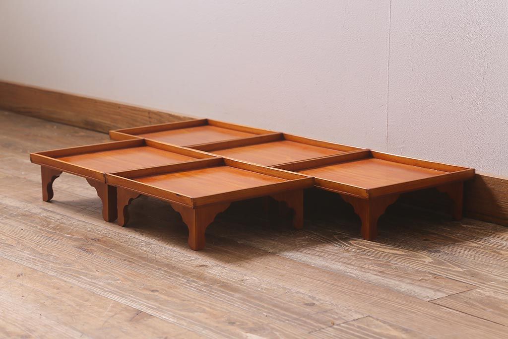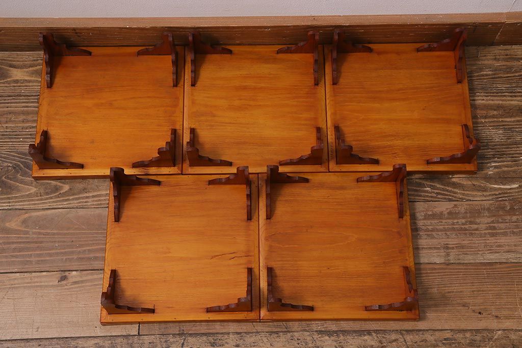 アンティーク雑貨 大正昭和初期 春慶塗 木製脚付膳5客セット・小(お膳、漆器)(R-040446)