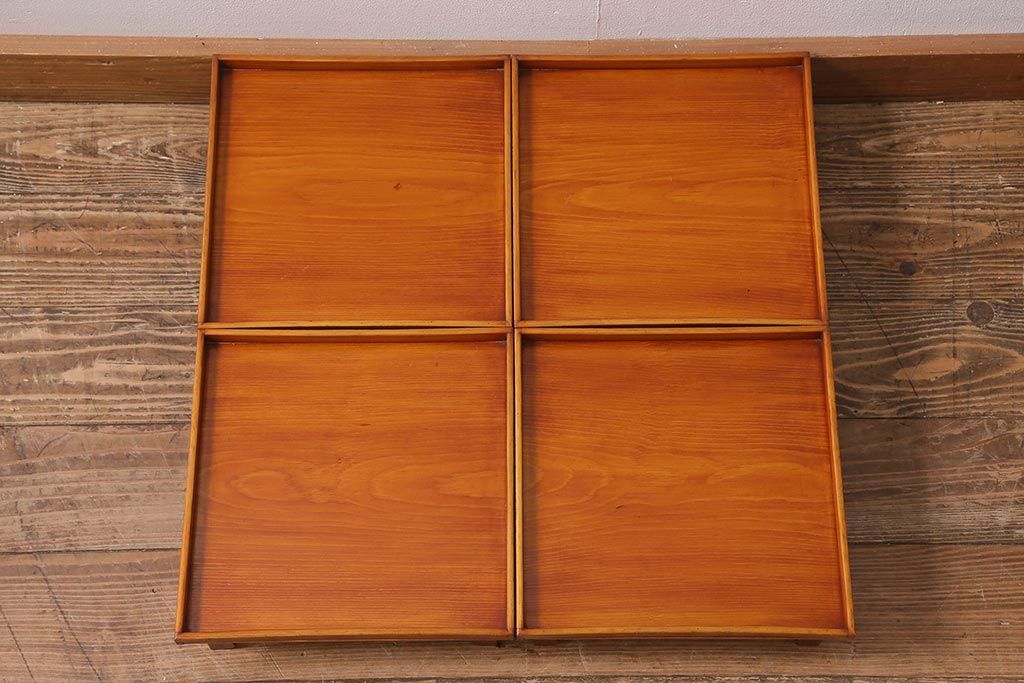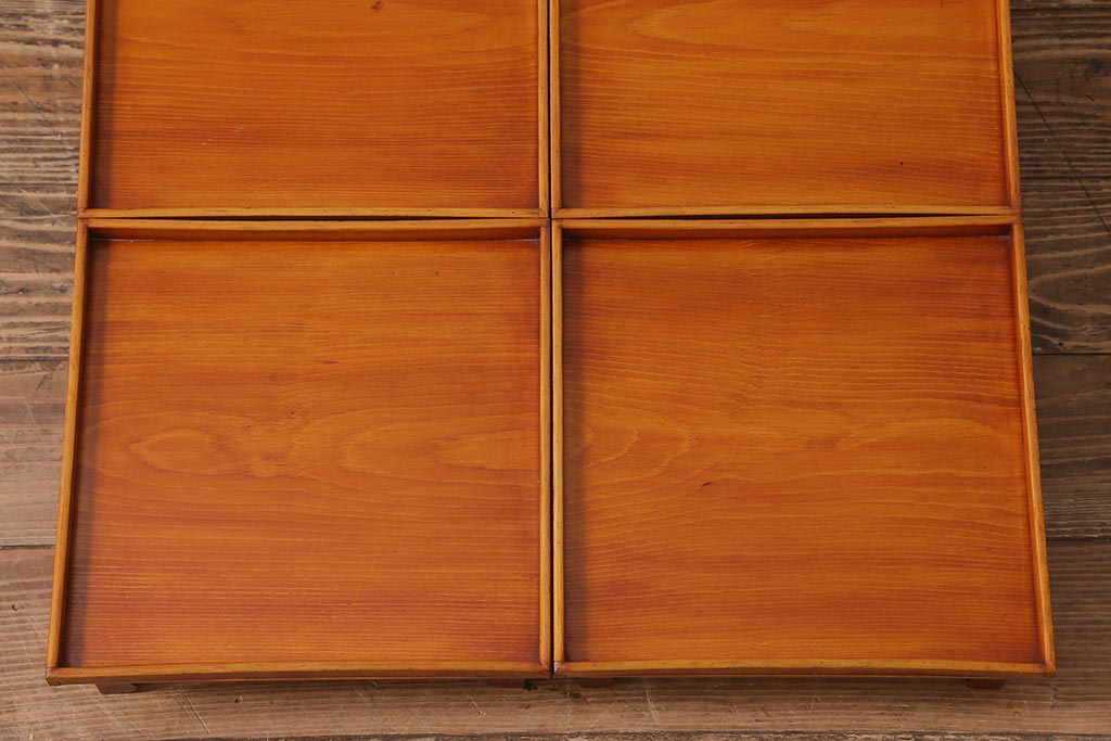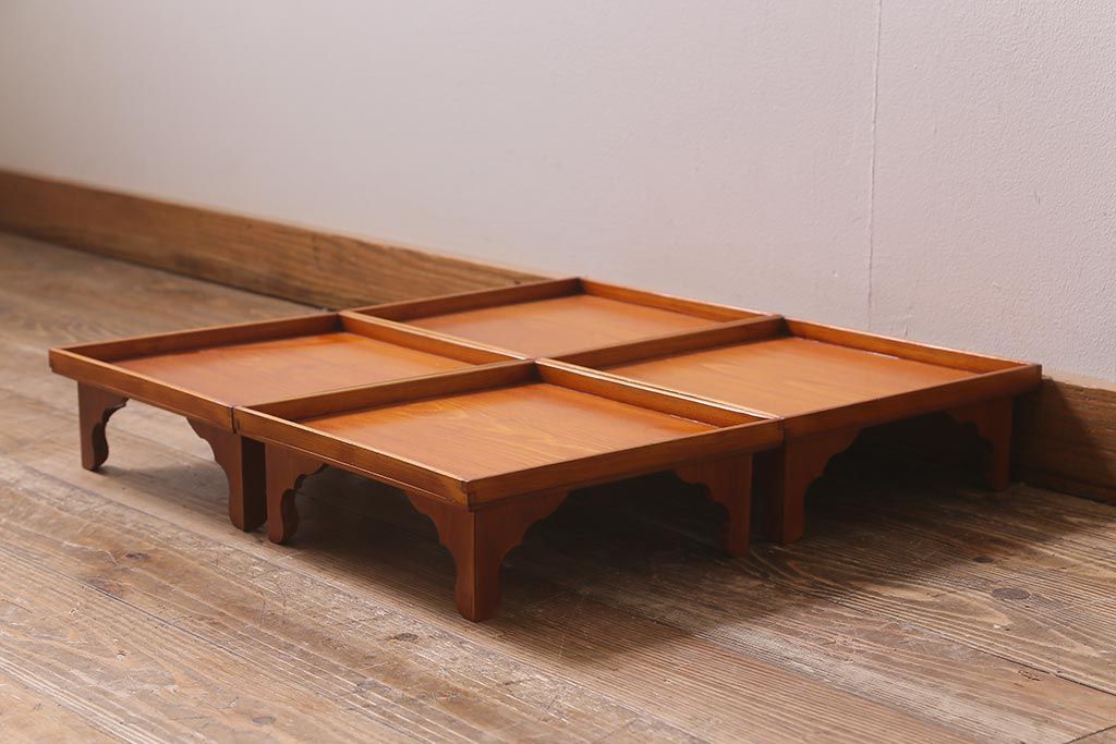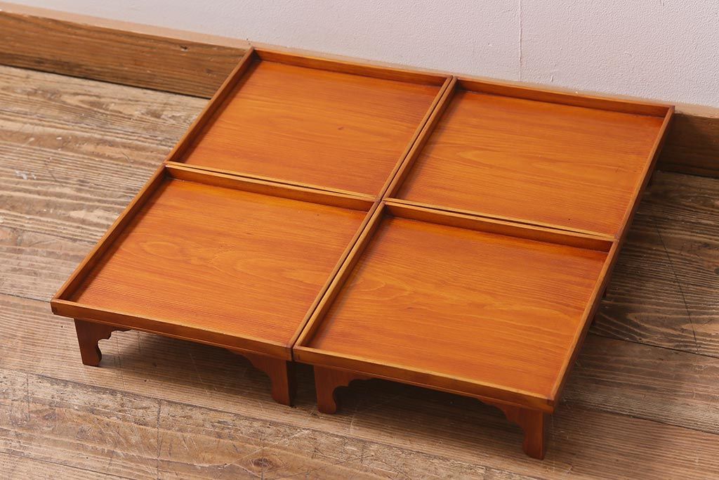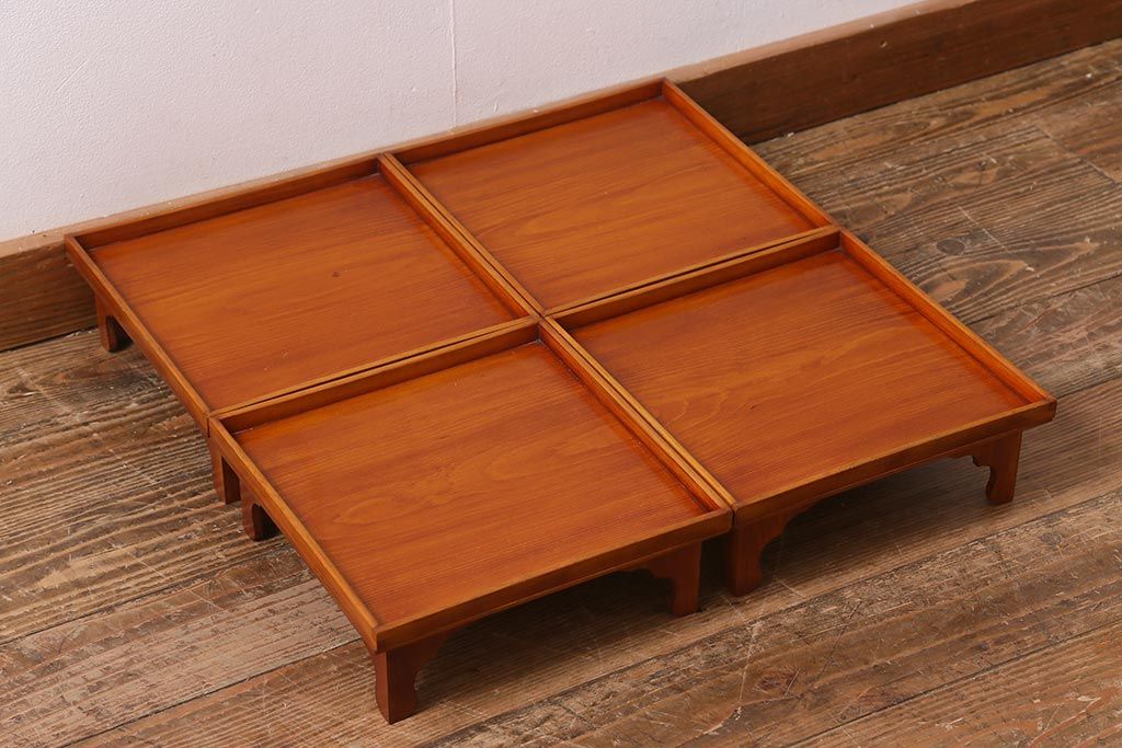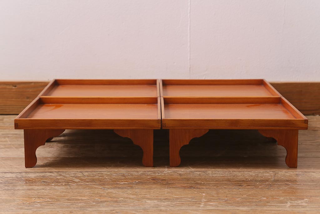 アンティーク雑貨 大正昭和初期 春慶塗 木製脚付膳4客セット・小(お膳、漆器)(R-040448)