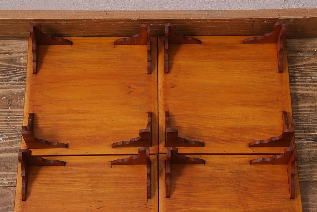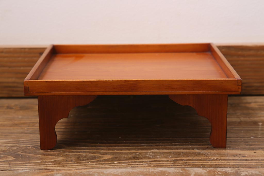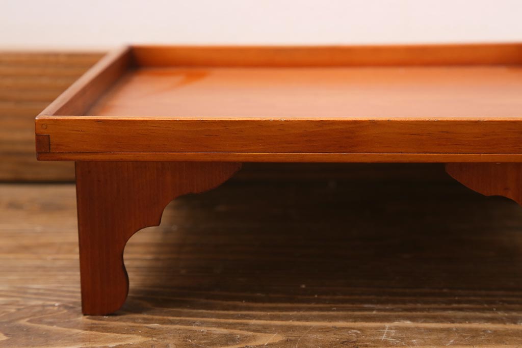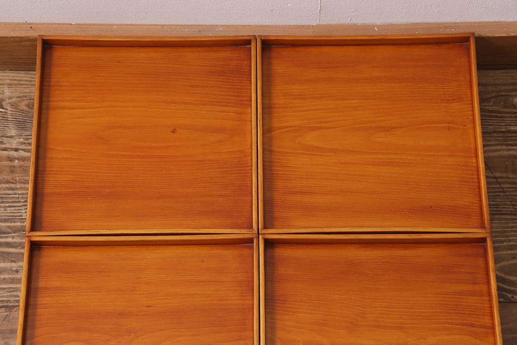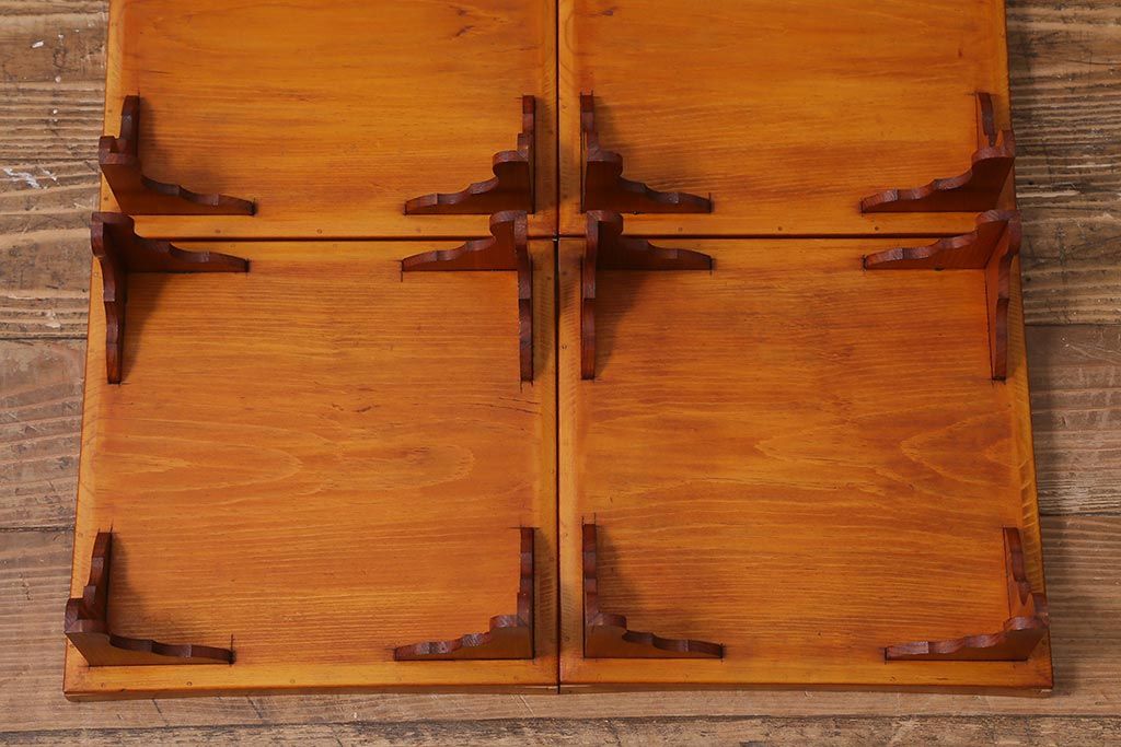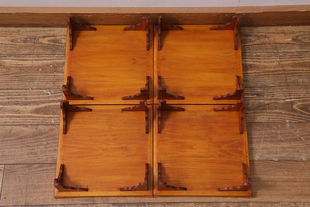 アンティーク雑貨 大正昭和初期 春慶塗 木製脚付膳4客セット・小(お膳、漆器)(R-040448)
