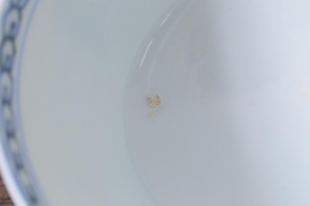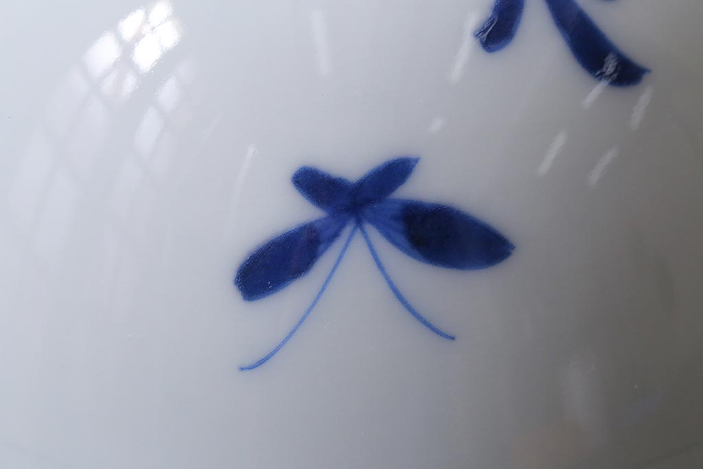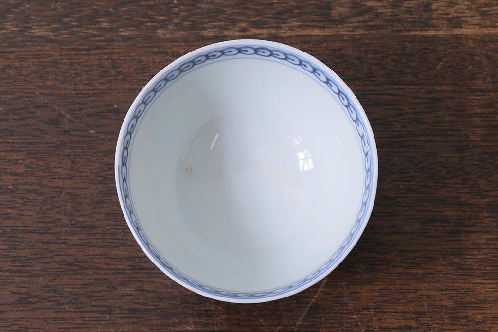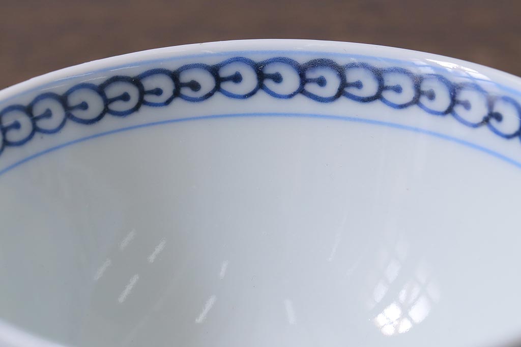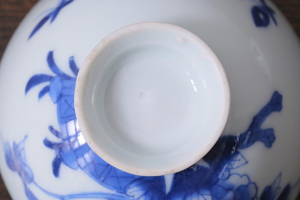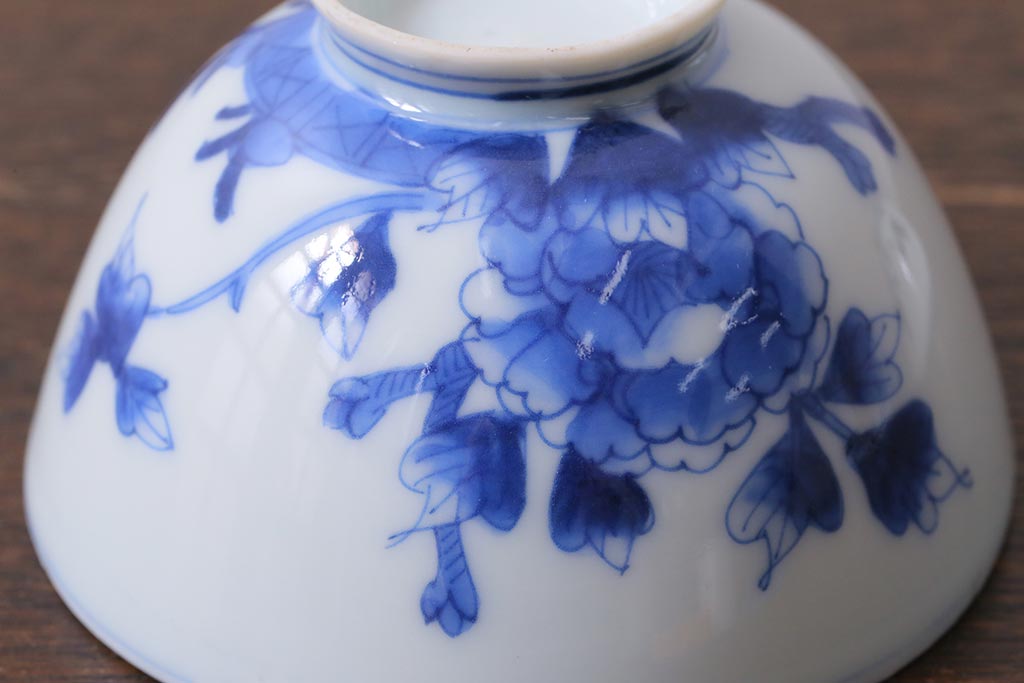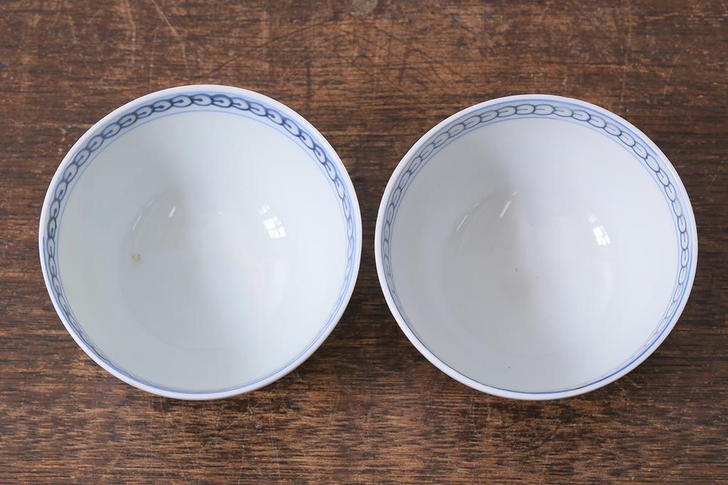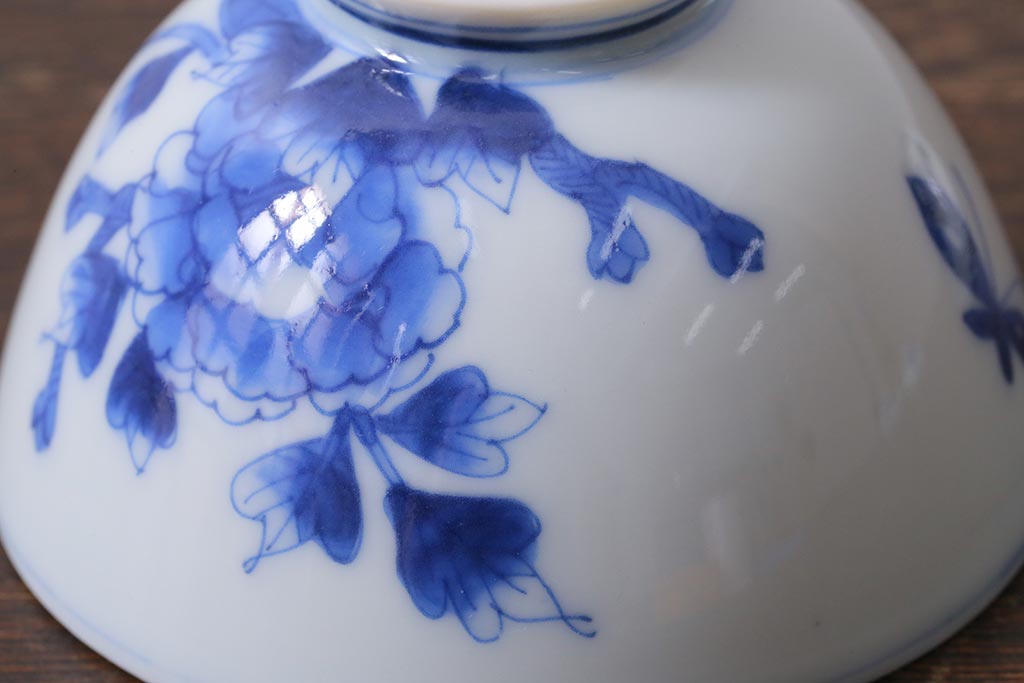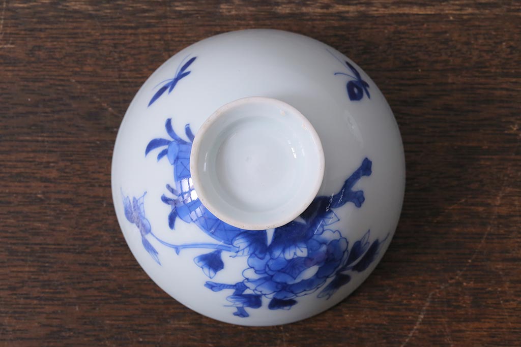 アンティーク雑貨 明治期 花蝶文染付蓋茶碗2客セット(蓋付茶碗、和食器)(R-040499)