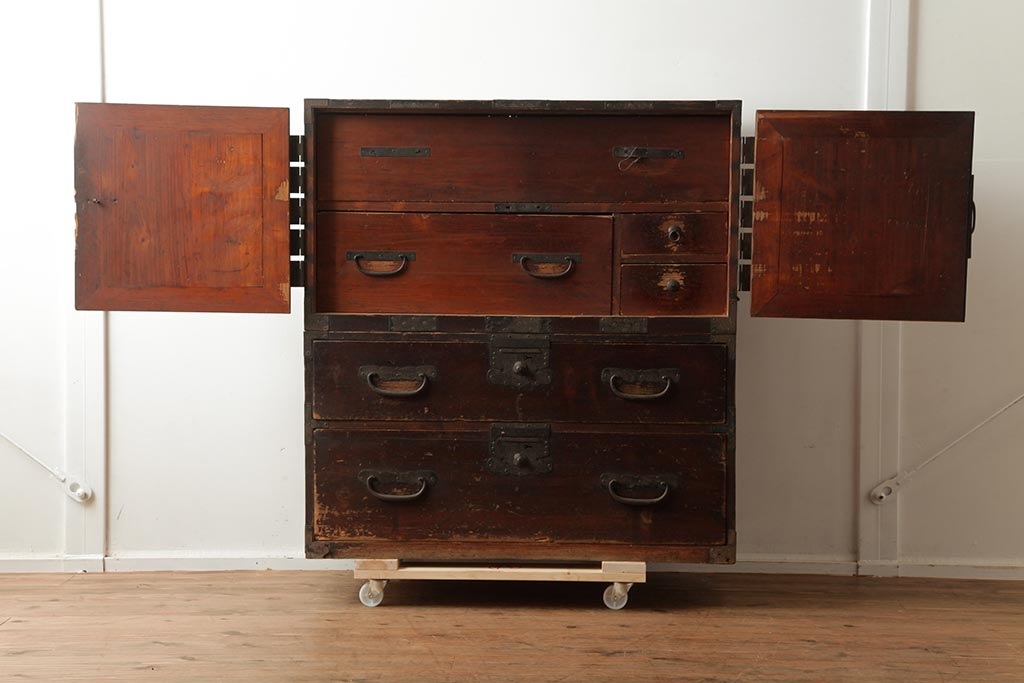 和箪笥> 衣装箪笥 > アンティーク家具 明治期 観音開き戸 和のインテリアに活躍する重ね箪笥(時代箪笥、和箪笥)(R-040468)