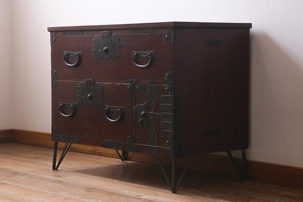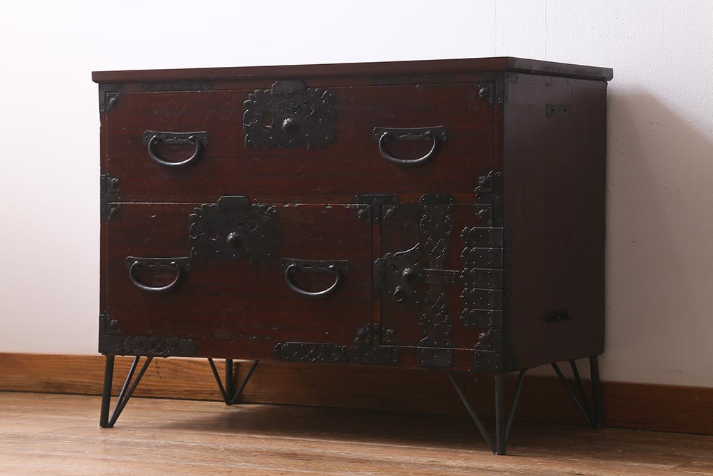 チェスト・引き出し> ローチェスト > アンティーク家具 明治期 鉄脚リメイク インダストリアルな雰囲気漂う時代箪笥ローボード(テレビ台、リビングボード、チェスト)(R-40608)