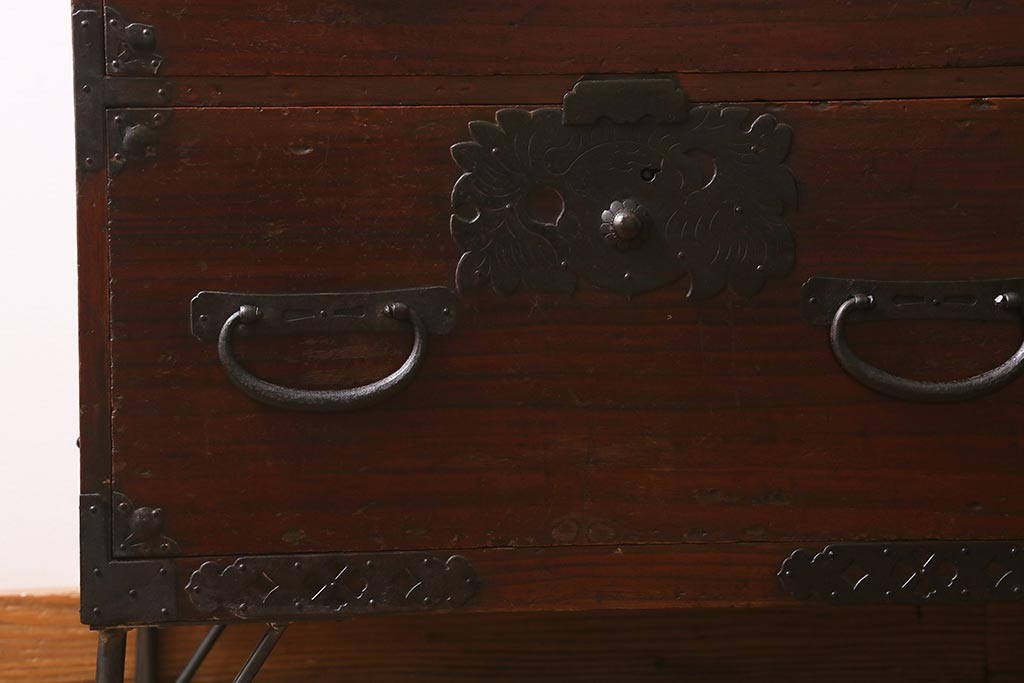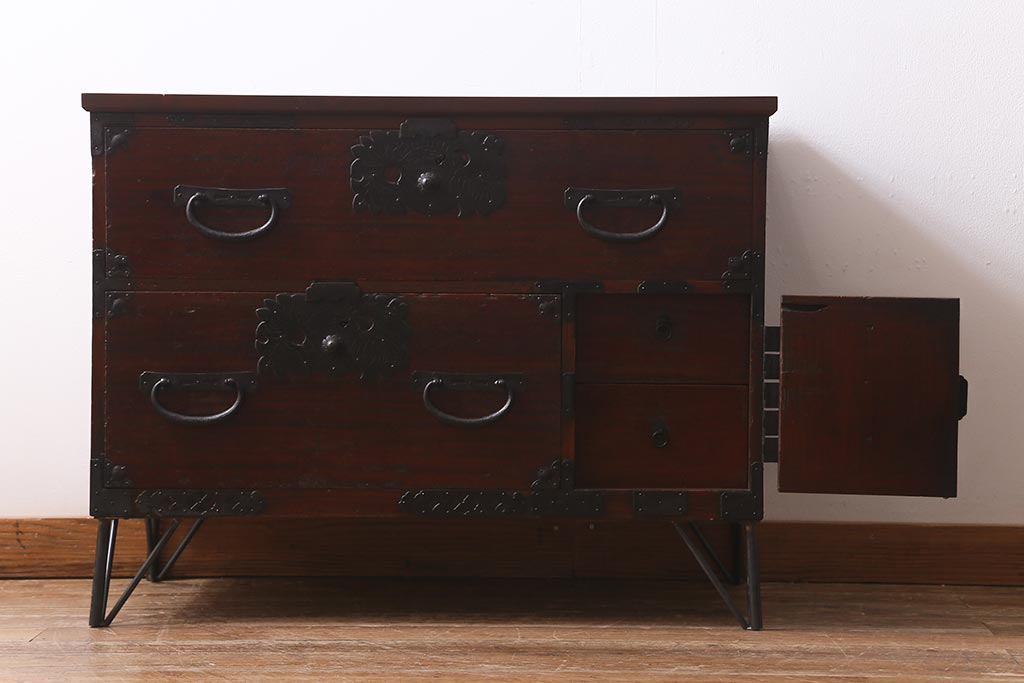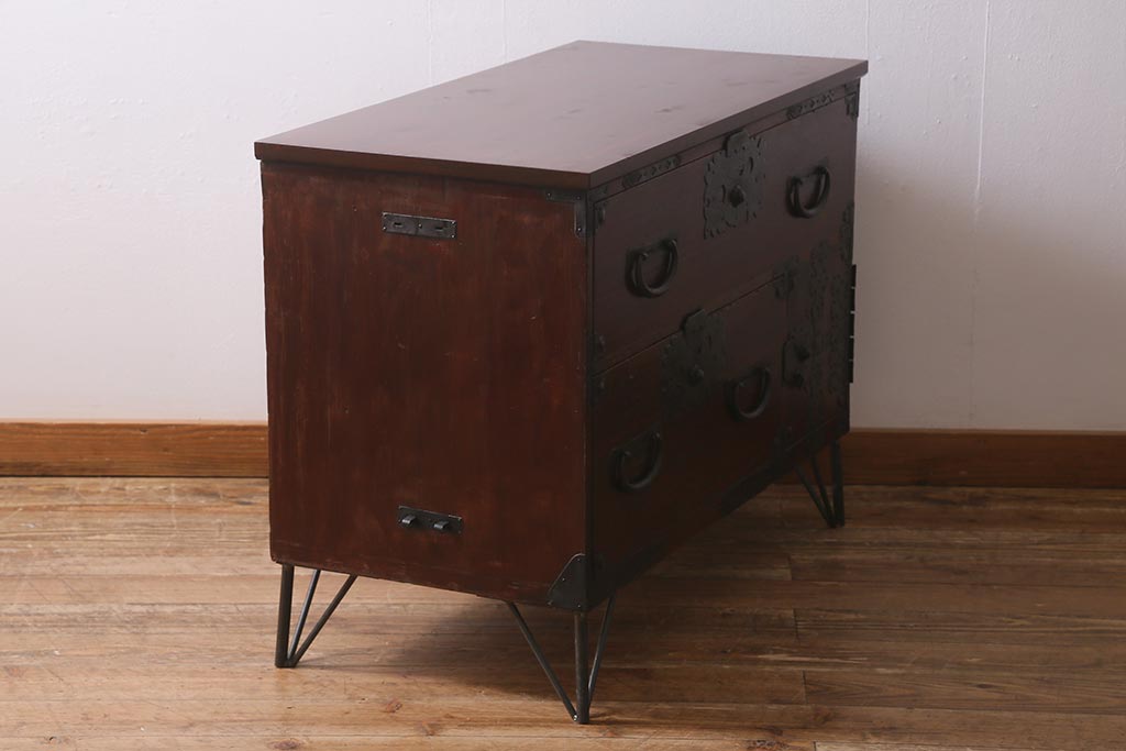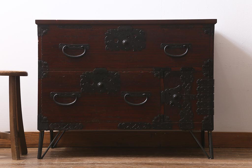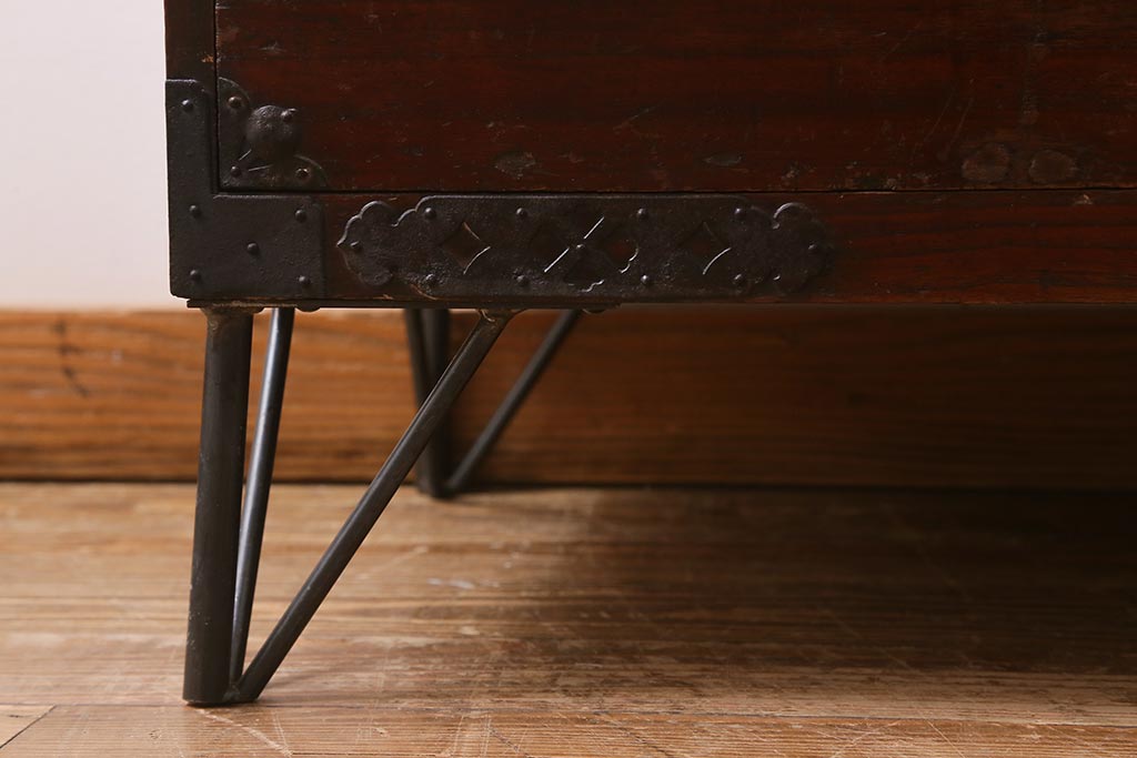 和箪笥 > アンティーク家具 明治期 鉄脚リメイク インダストリアルな雰囲気漂う時代箪笥ローボード(テレビ台、リビングボード、チェスト)(R-40608)