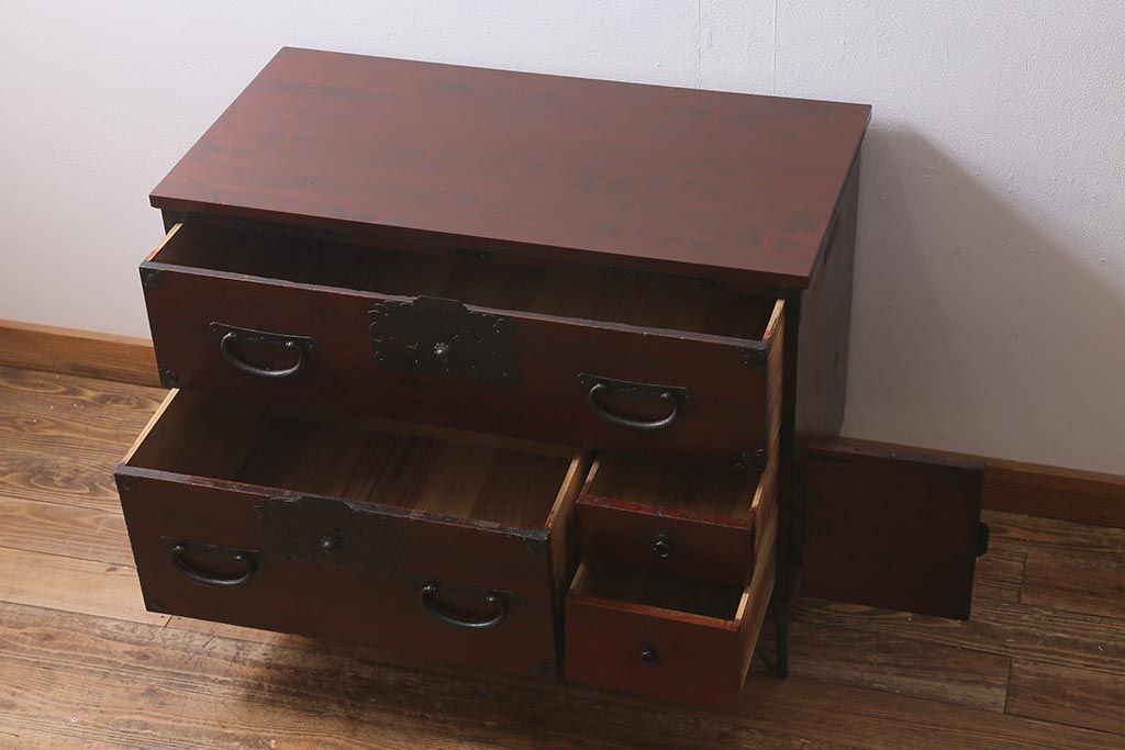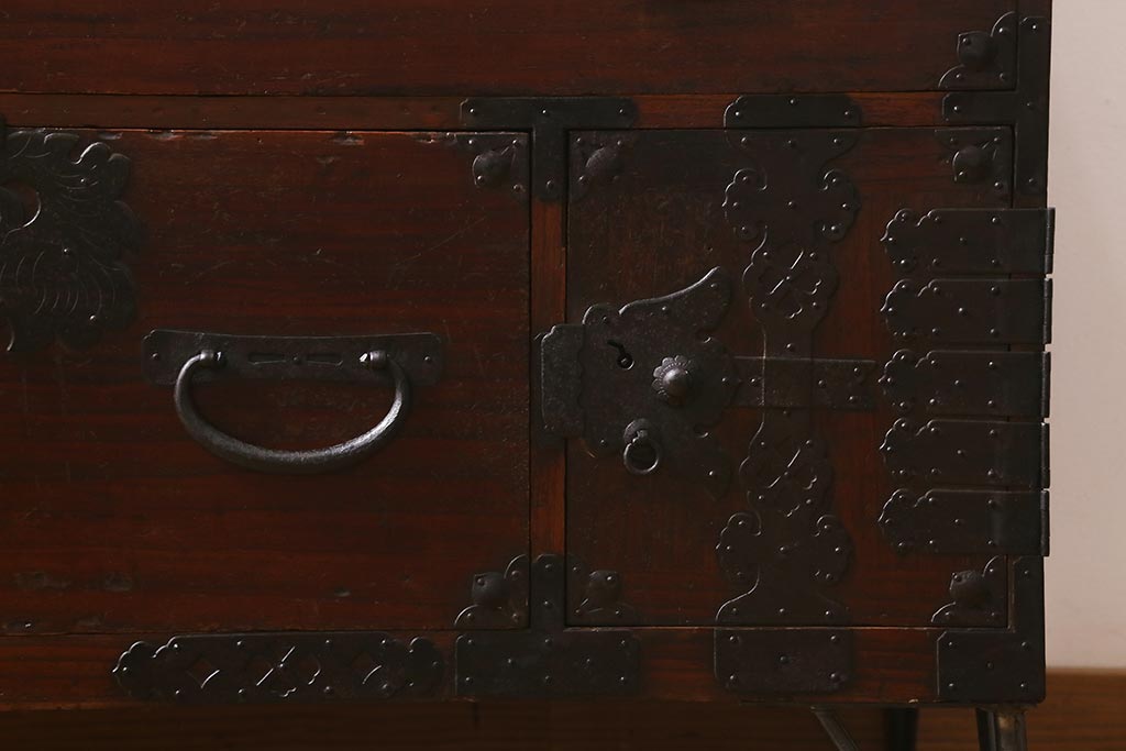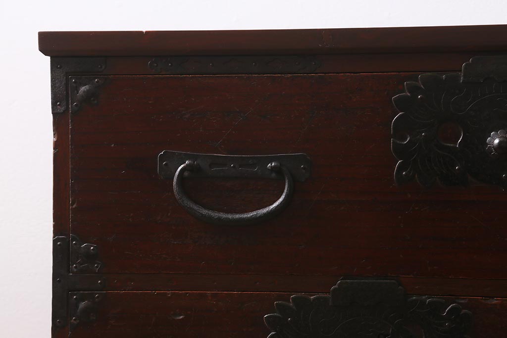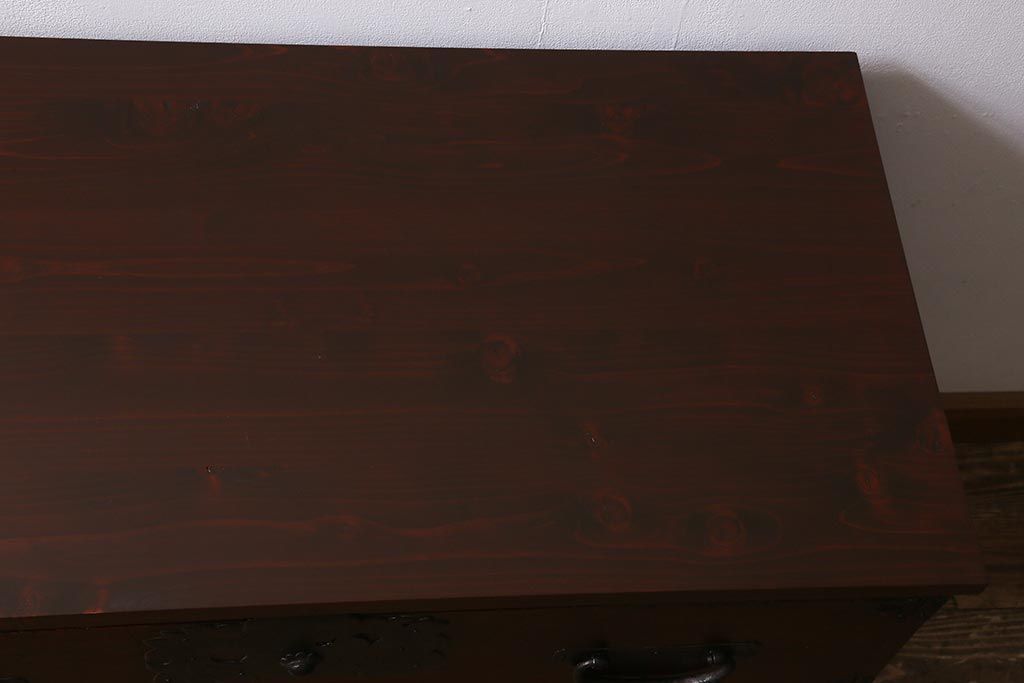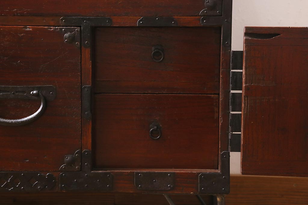 和箪笥 > アンティーク家具 明治期 鉄脚リメイク インダストリアルな雰囲気漂う時代箪笥ローボード(テレビ台、リビングボード、チェスト)(R-40608)