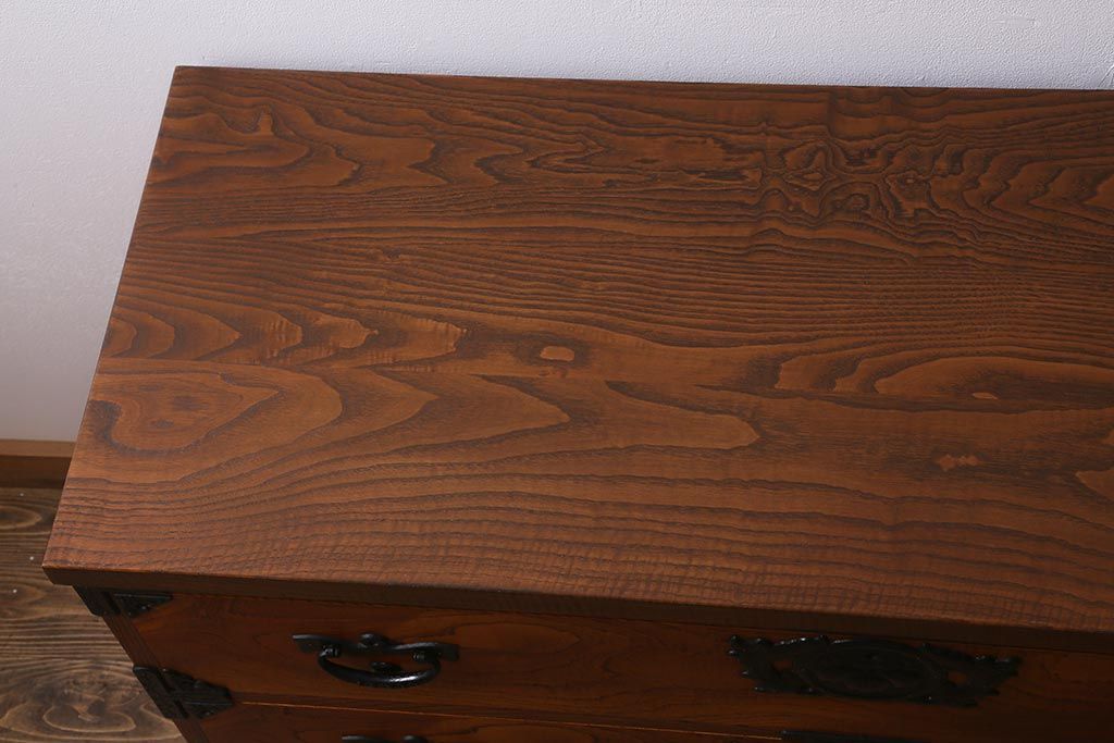 民芸家具 > 中古 岩谷堂箪笥 天板リメイク・栗無垢材 テレビ台としてもおすすめな和風ローチェスト(衣装箪笥、テレビボード、引き出し、ローボード)(R-040609)