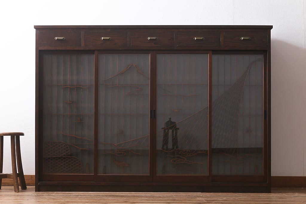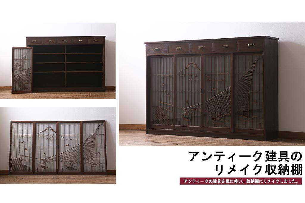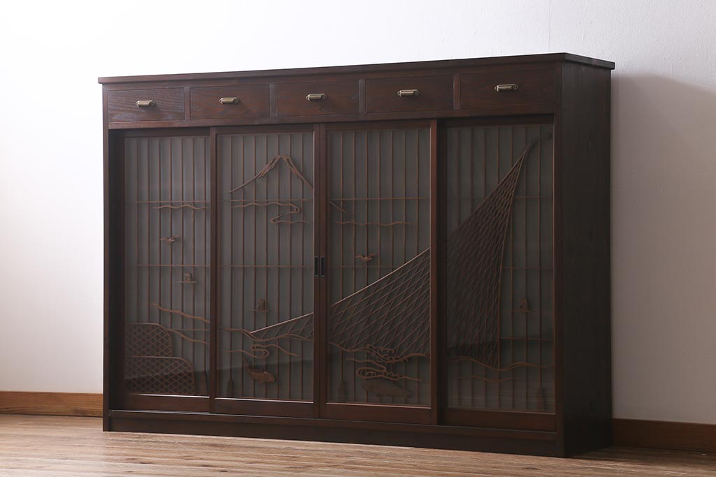 ラフジュ工房オリジナル 書院戸リメイク 富士・投網の図柄 和の風情あふれる組子サイドボード(曳き網、下駄箱、収納棚、キャビネット)(R-040571)です。