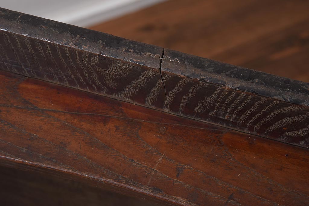 画像にありますように天板と幕板にヒビがあります。補強はしておりますが、ご理解の上お願いします。
