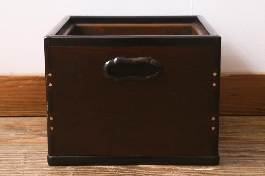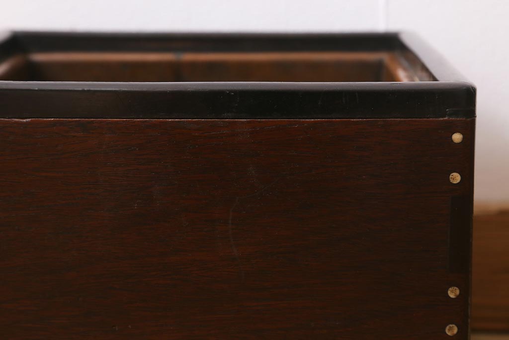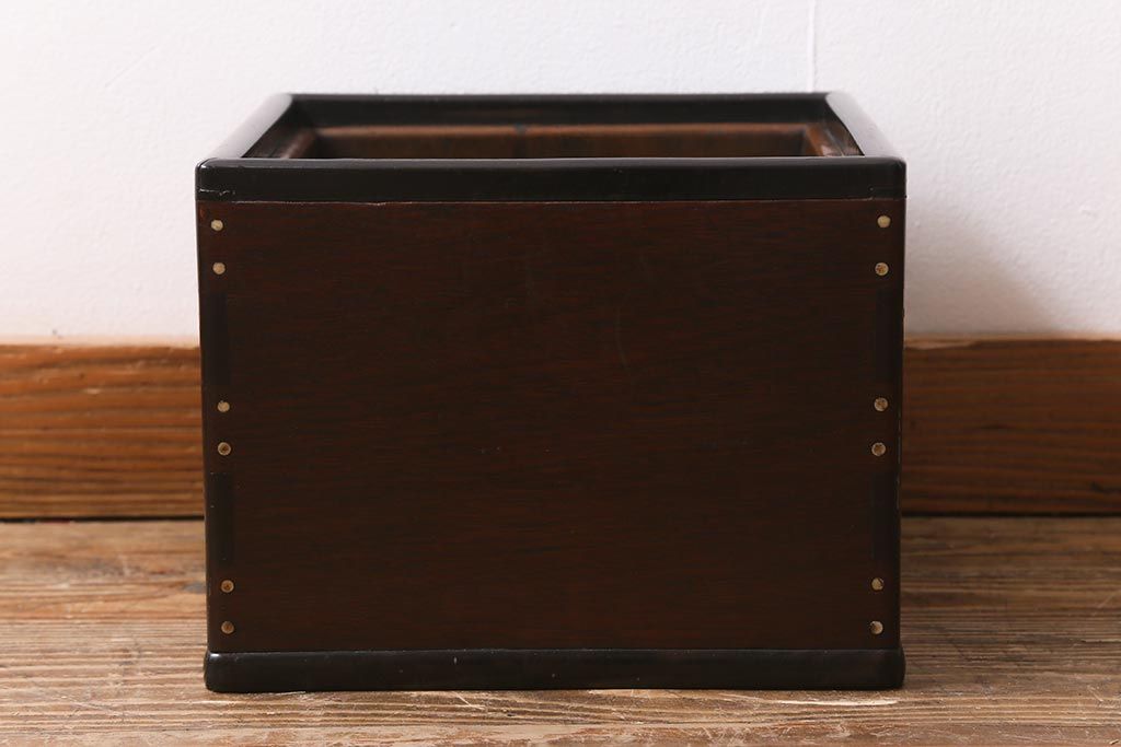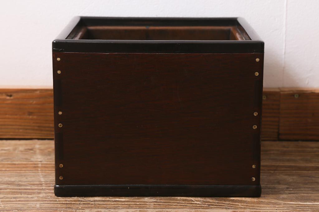 火鉢> 木製火鉢 > アンティーク雑貨 明治大正期 指物家具 紫檀(シタン)材 品のある佇まいが魅力的な角火鉢(木製火鉢、箱火鉢)(R-040396)