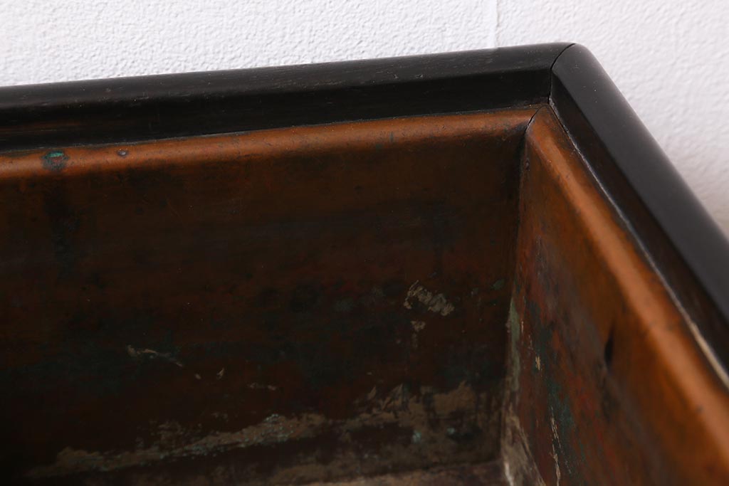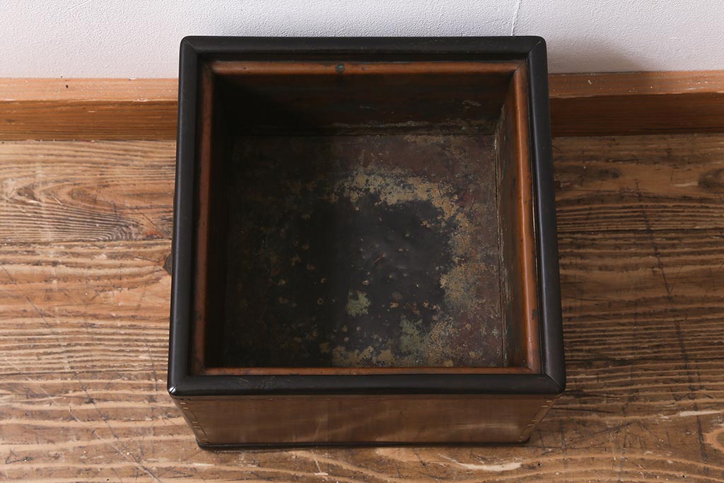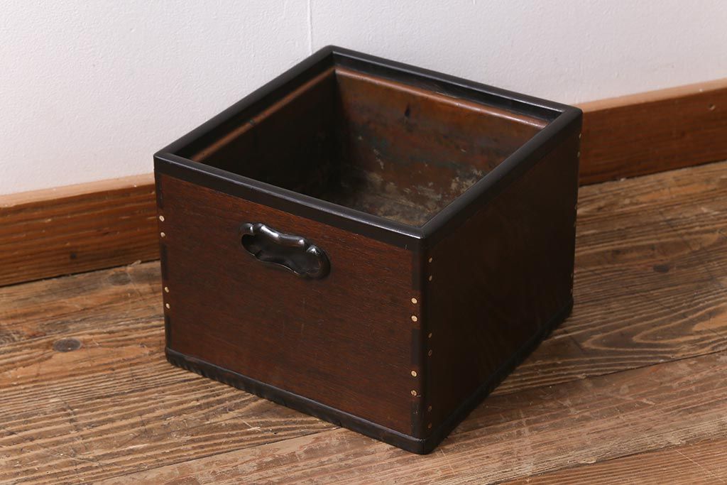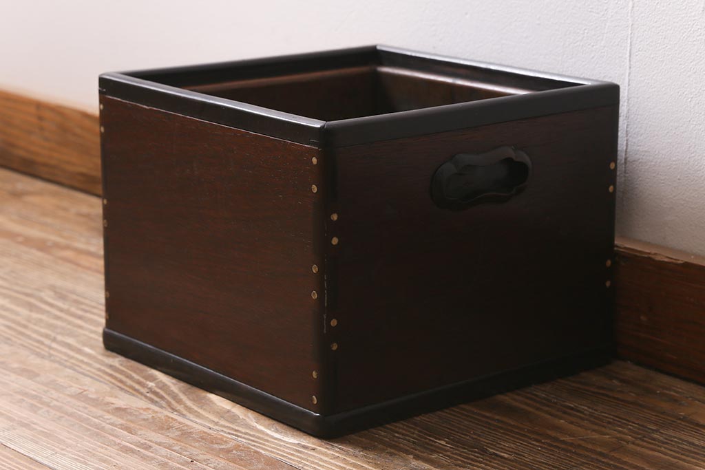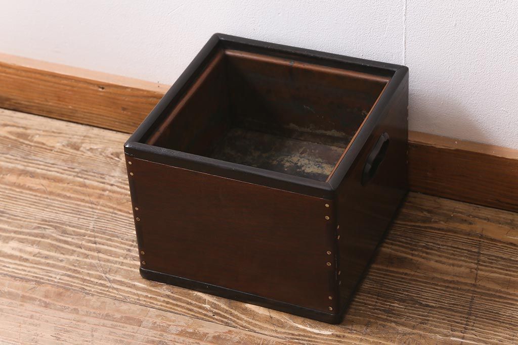火鉢> 木製火鉢 > アンティーク雑貨 明治大正期 指物家具 紫檀(シタン)材 品のある佇まいが魅力的な角火鉢(木製火鉢、箱火鉢)(R-040396)