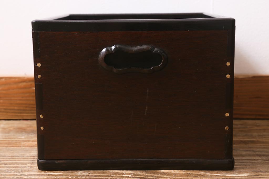民芸家具 > アンティーク雑貨 明治大正期 指物家具 紫檀(シタン)材 品のある佇まいが魅力的な角火鉢(木製火鉢、箱火鉢)(R-040396)